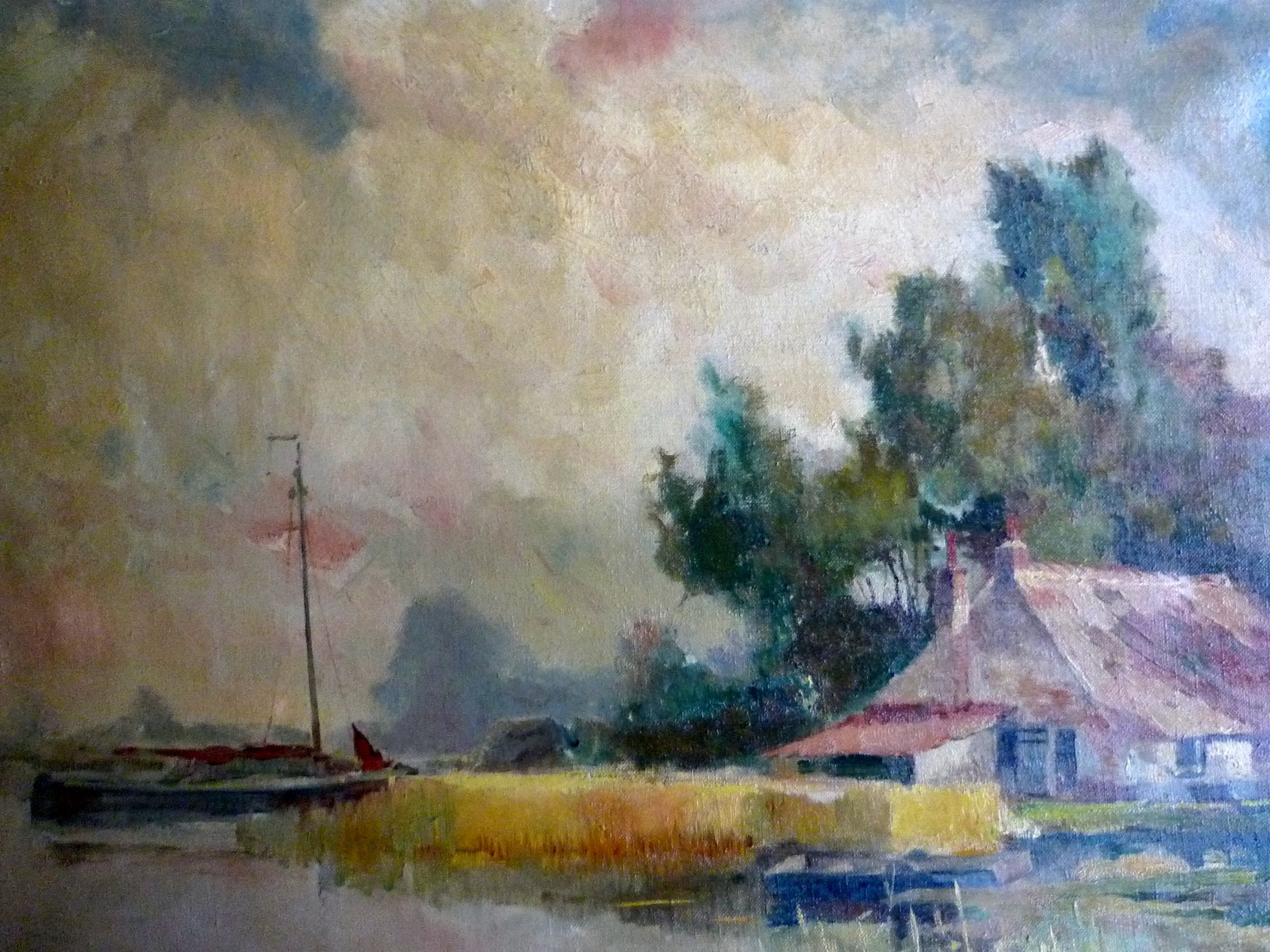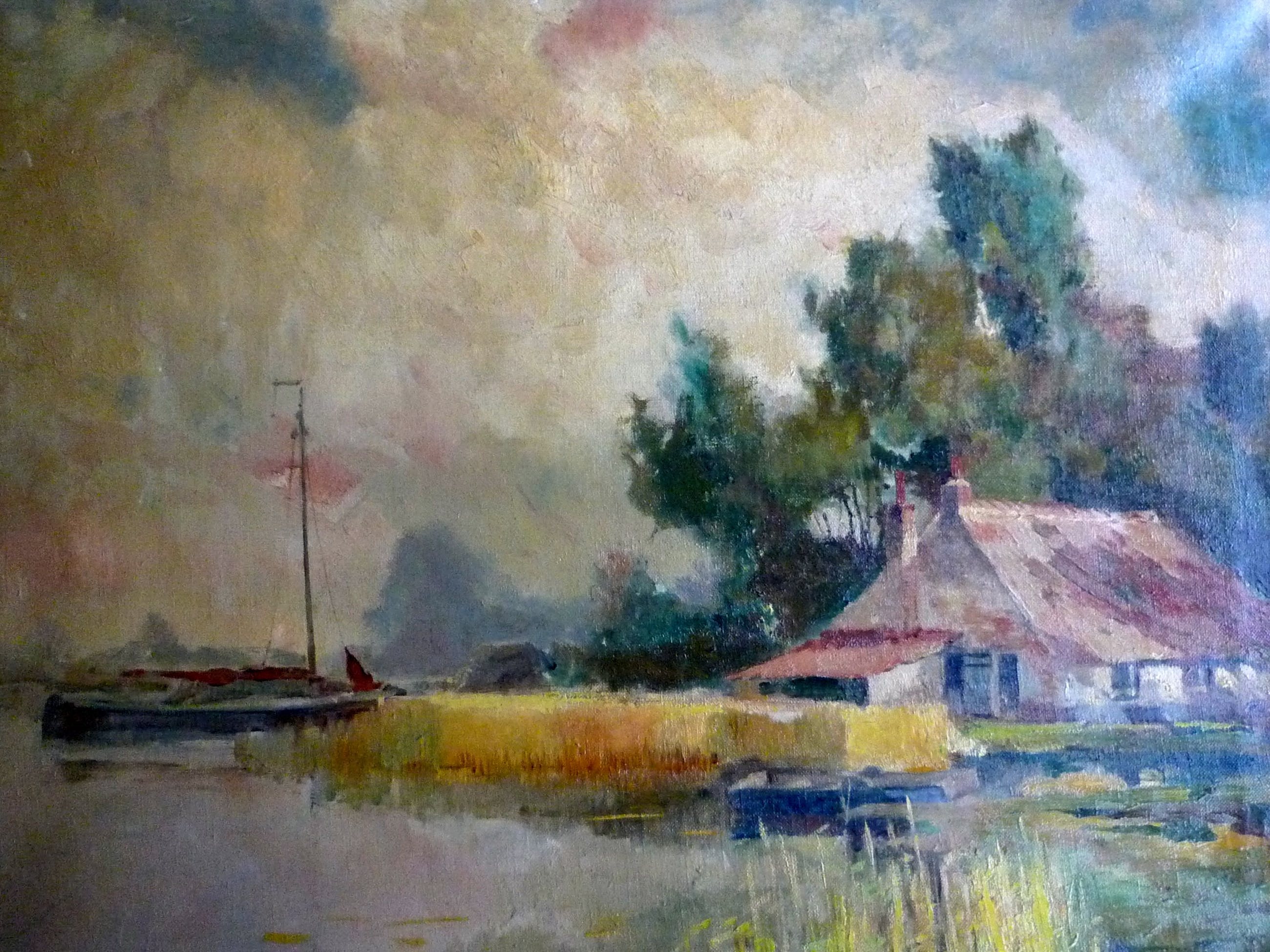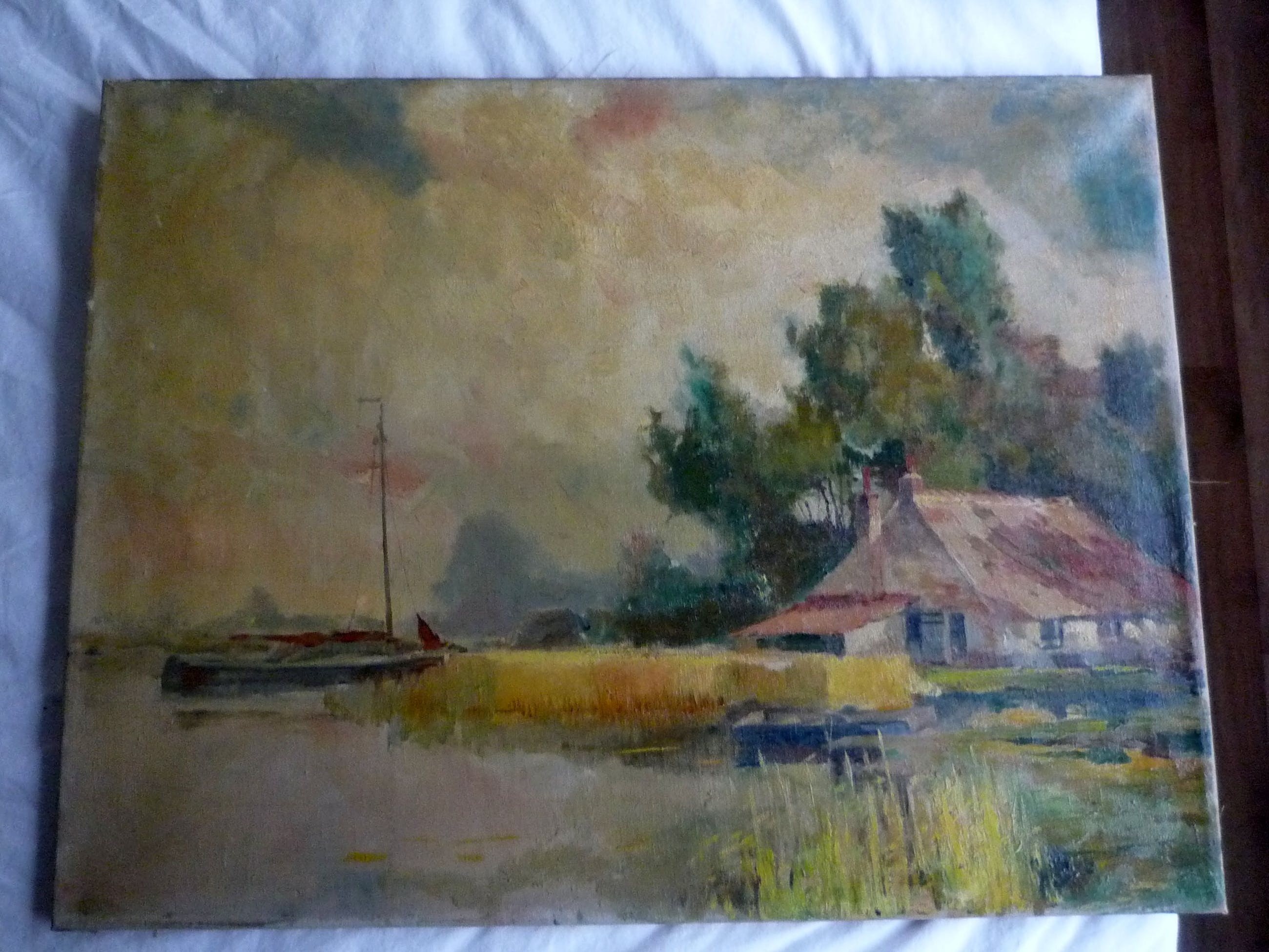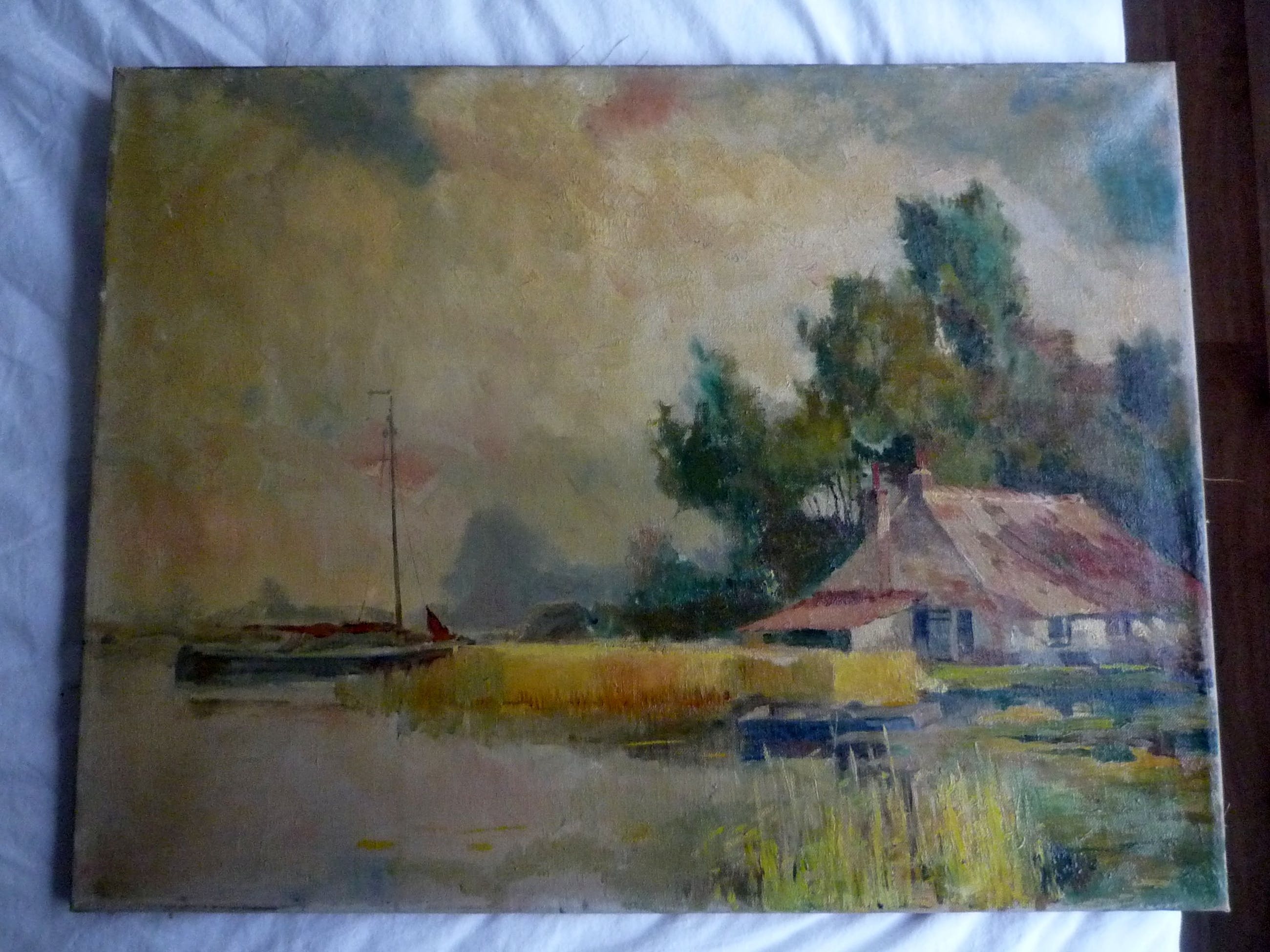 Boerderij aan het water. Het werk is maximaal 70 jaar oud en minimaal 40 jaar oud