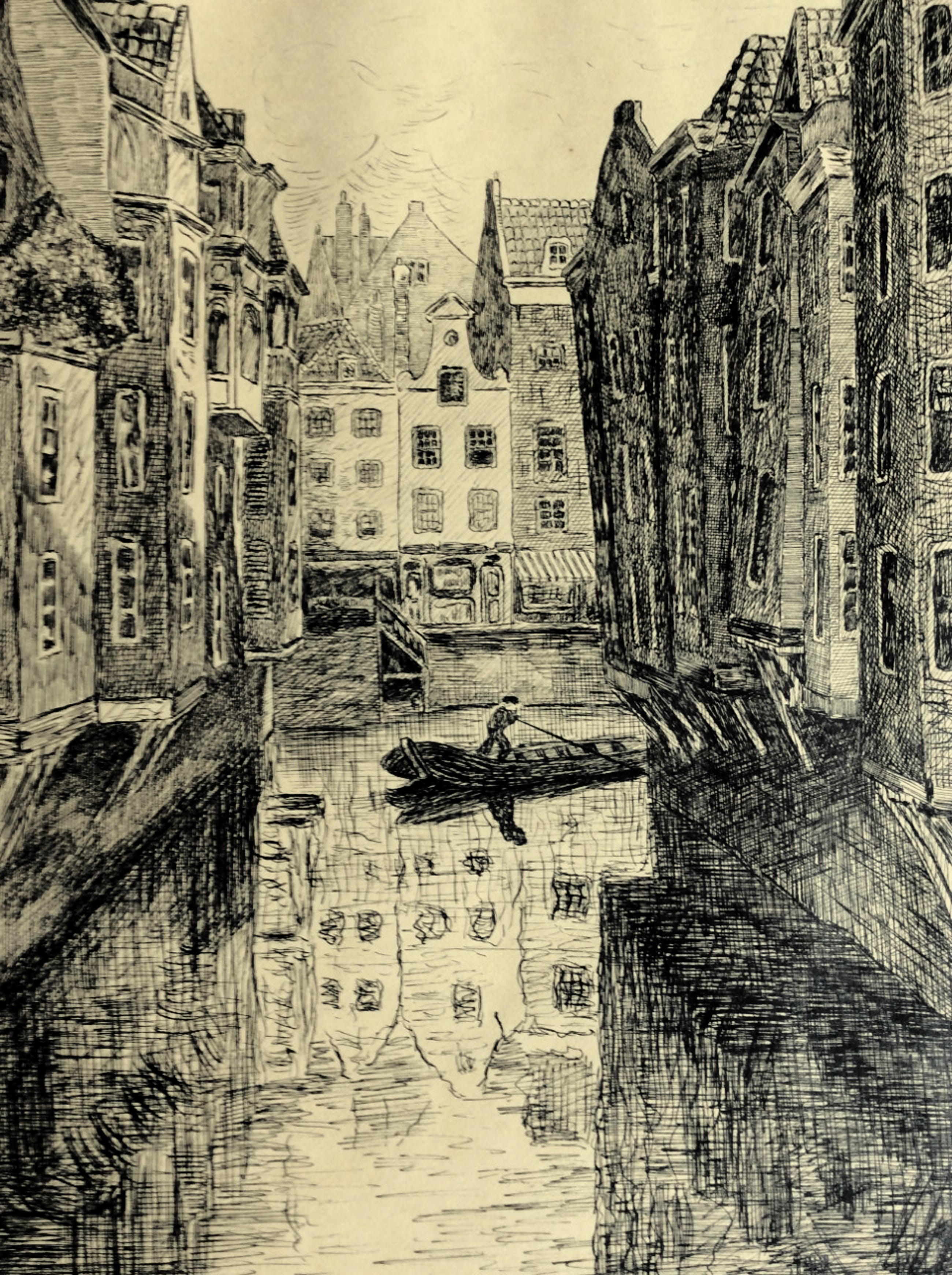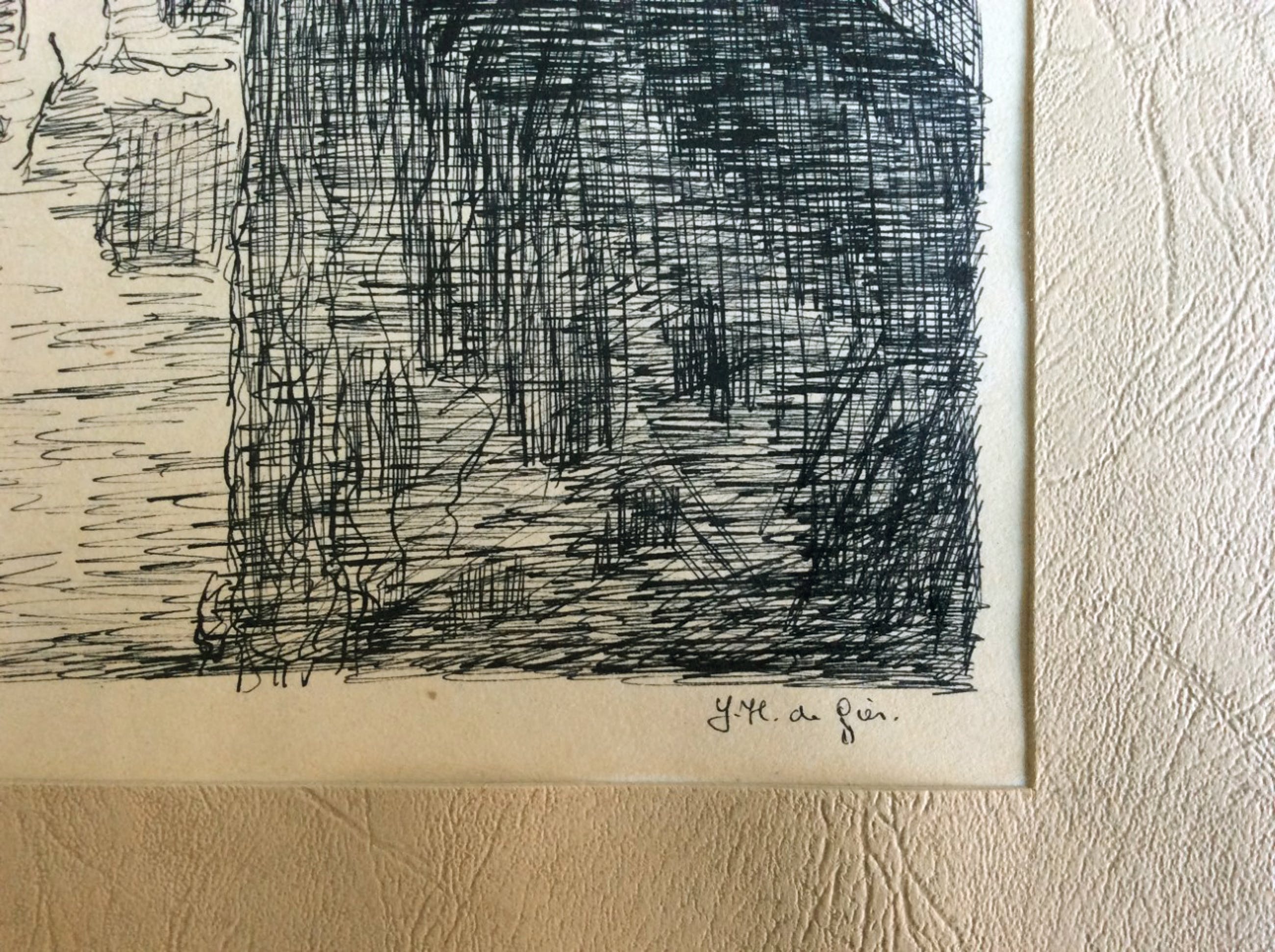 Pentekening van onbekende kunstenaar: Toestijger te RotterdamFormaat incl. passepartout 46 x 33 cm, tekening 33 x 21 cm.Eerste helft 20e eeuw.