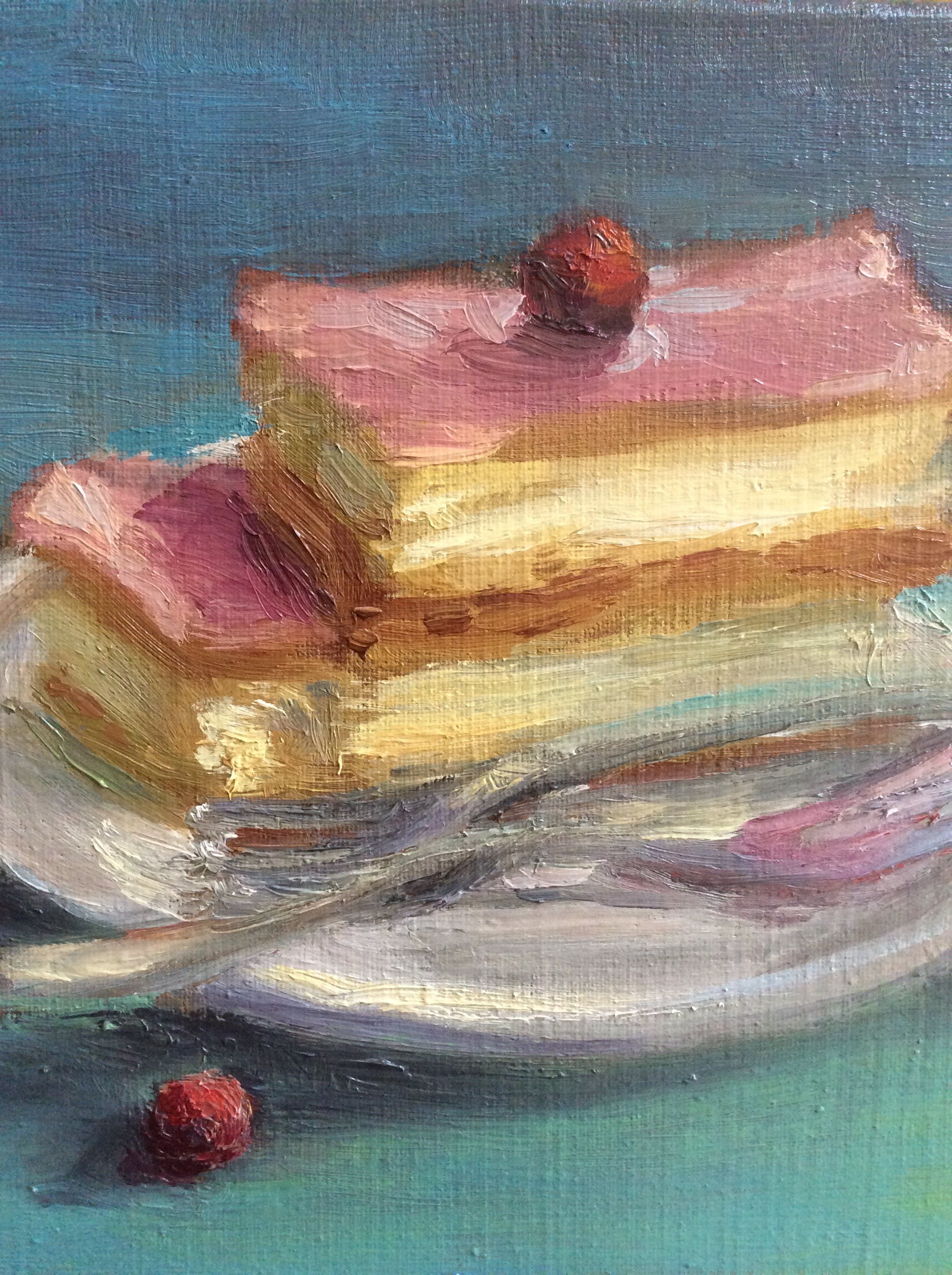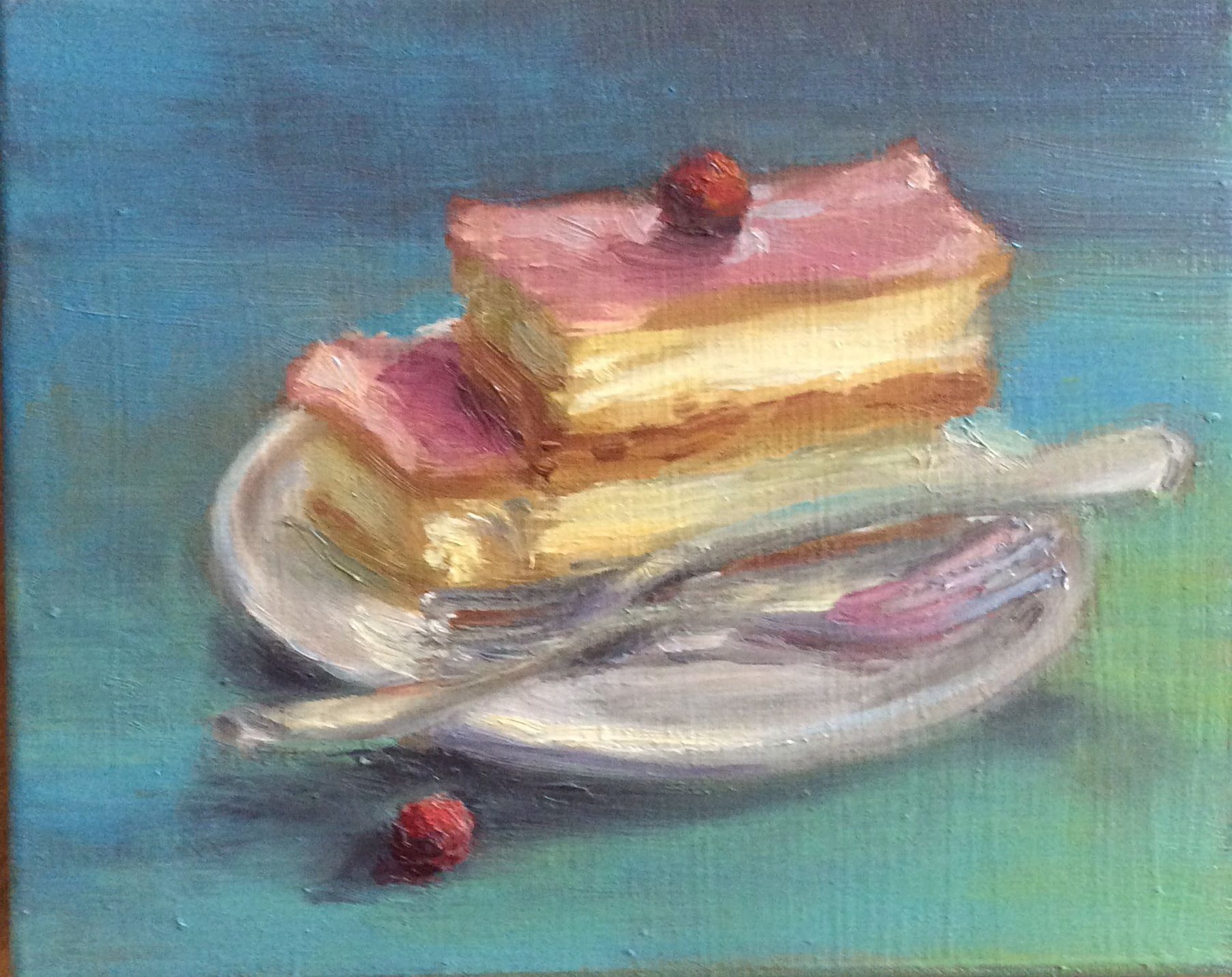Dit Klein schilderij als nat - over- droog  geschilderd, her bedekt met een vernislaag