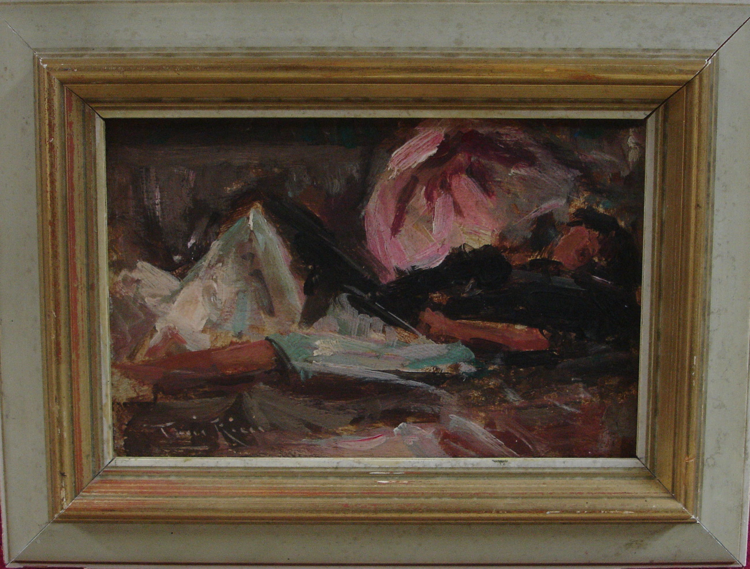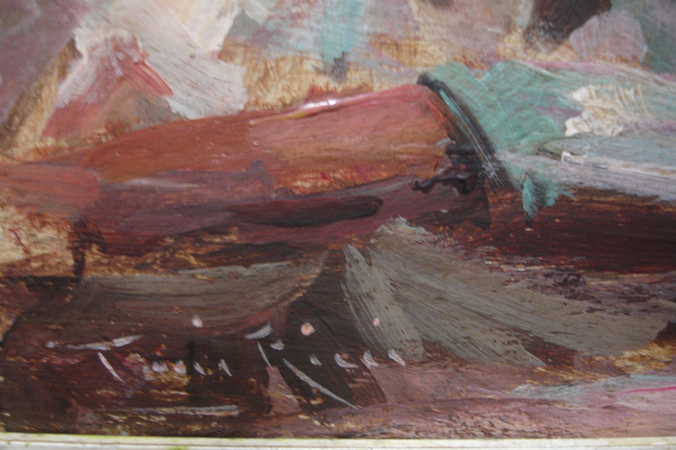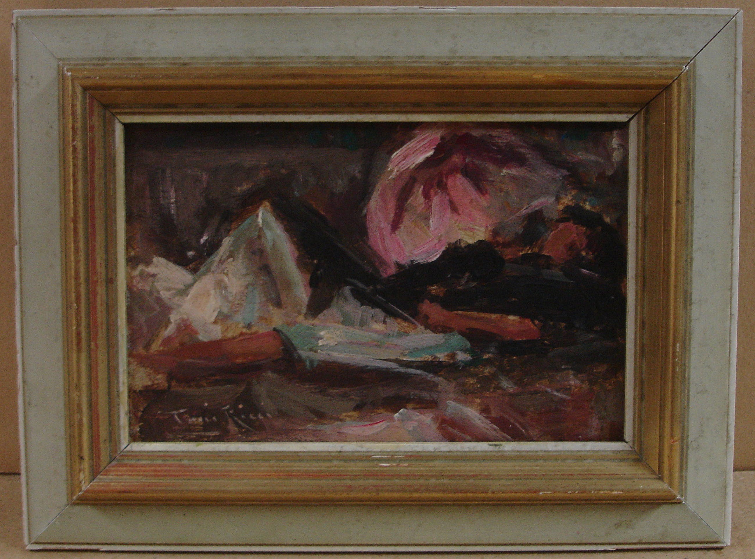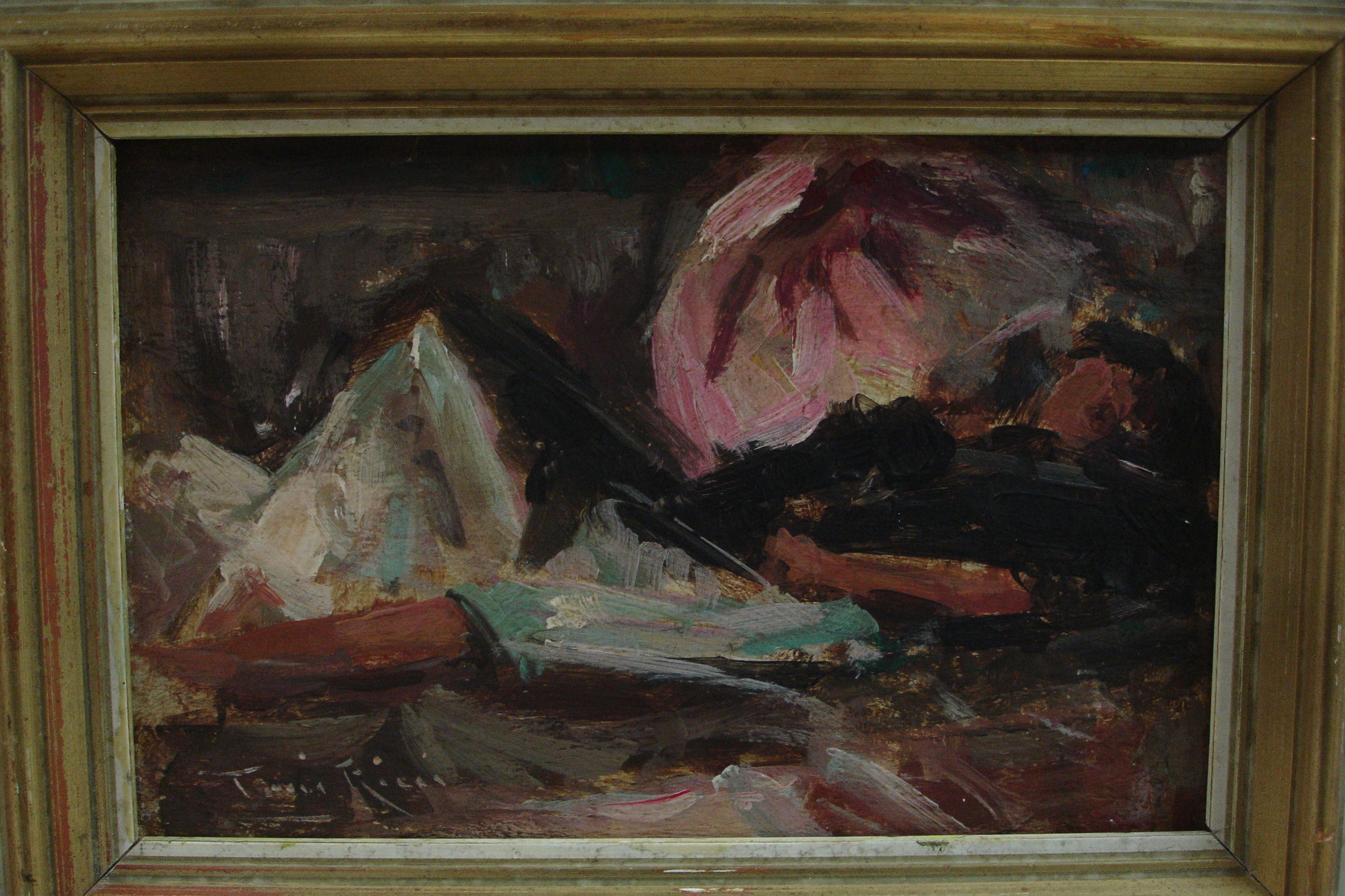 Een mooi impressionistisch werkje van een liggende dame. Het is ingelijst maar de lijst heeft sporen van slijtage,dus u bied op het schilderij de lijst word er gratis bijgeleverd. Het werkje is in goede staar.