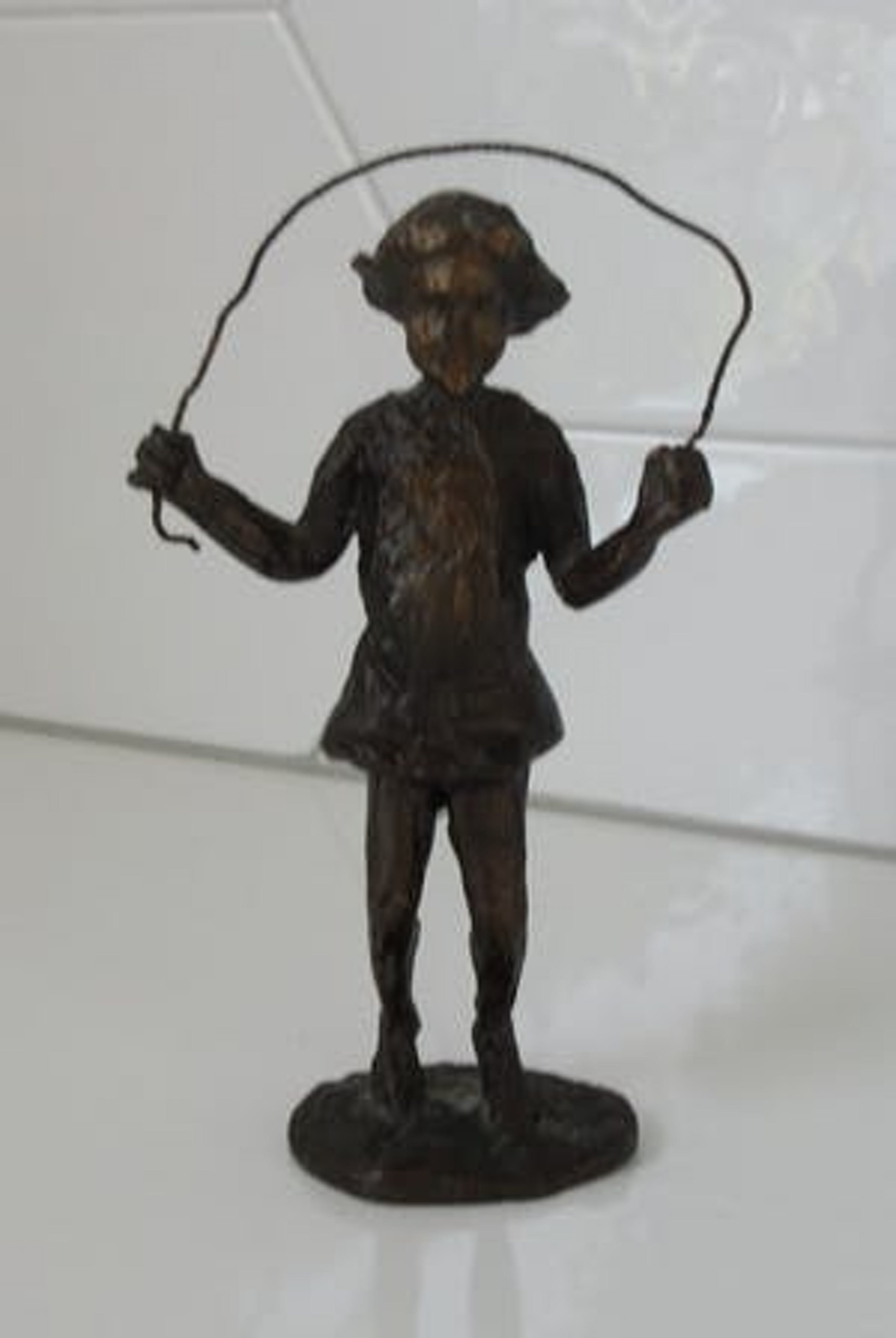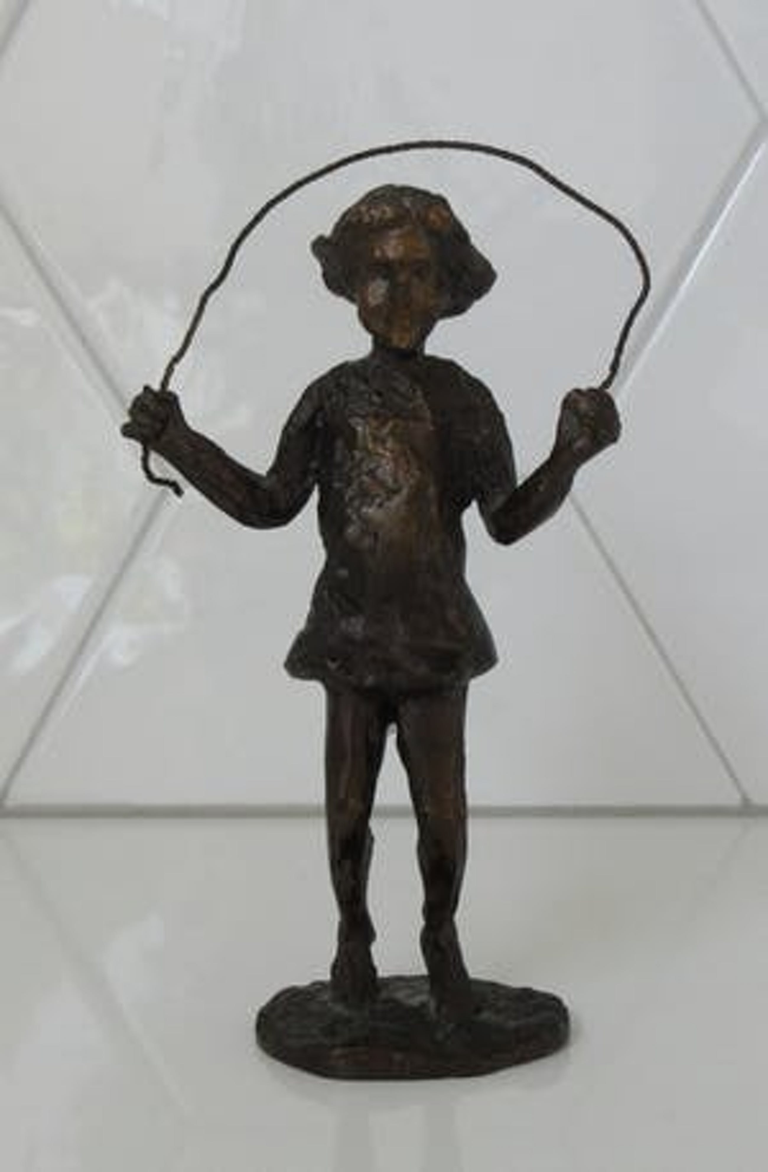 Bronzen beeldje meisje met Springtouw. Mooi beeldje in prima onbeschadigde conditie. Niet gemerkt dus kunstenaar onbekend.