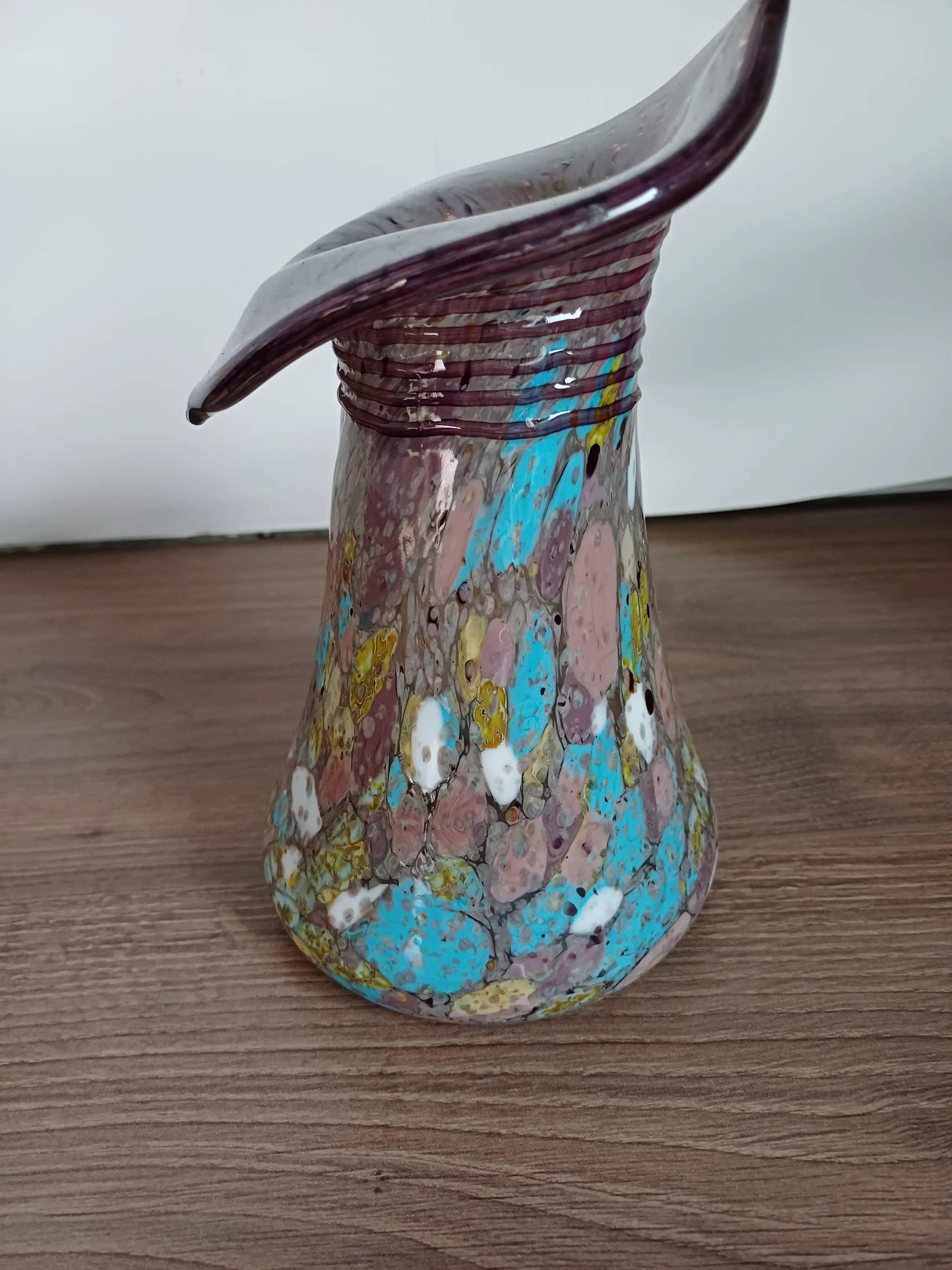 Zeer mooi decoratief vaasje. Halverwege de eeuw moderne Tsjechische Jack in the pulpet splatter studio art glazen vaasje. Splatter glass. Hoogte 18.5 cm. Breedte en diepte ongeveer 11 cm. Gewicht is 700 gram. Handgeblazen ,zie onderkant. Kleur schakeringen: wit/lila/blauw/beige/geel. Past zowel in modern als als rustieke woonstijl. Het vaasje is in perfecte staat,geen chips af of breuken/scheuren. bieden maar, Dank.