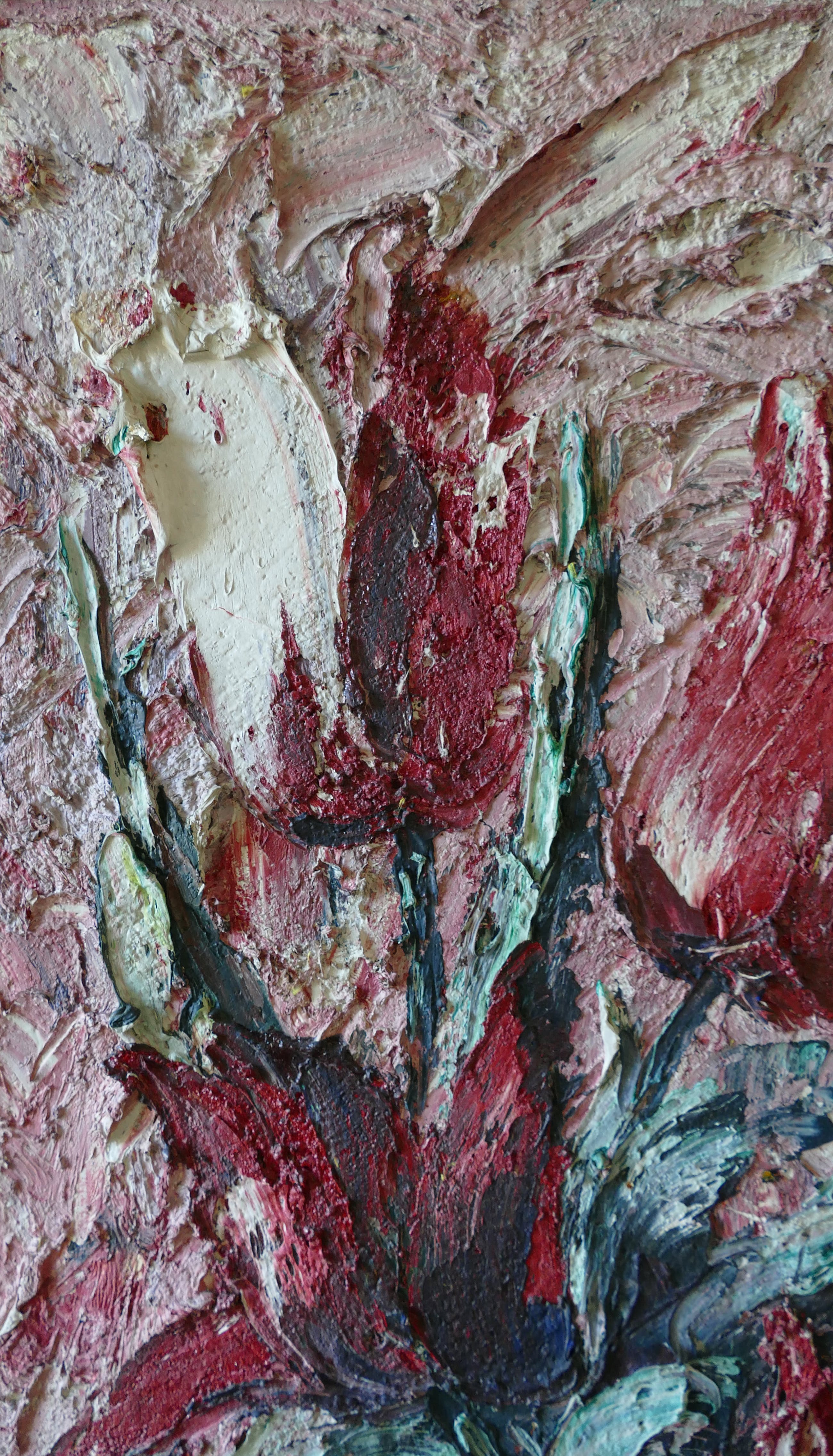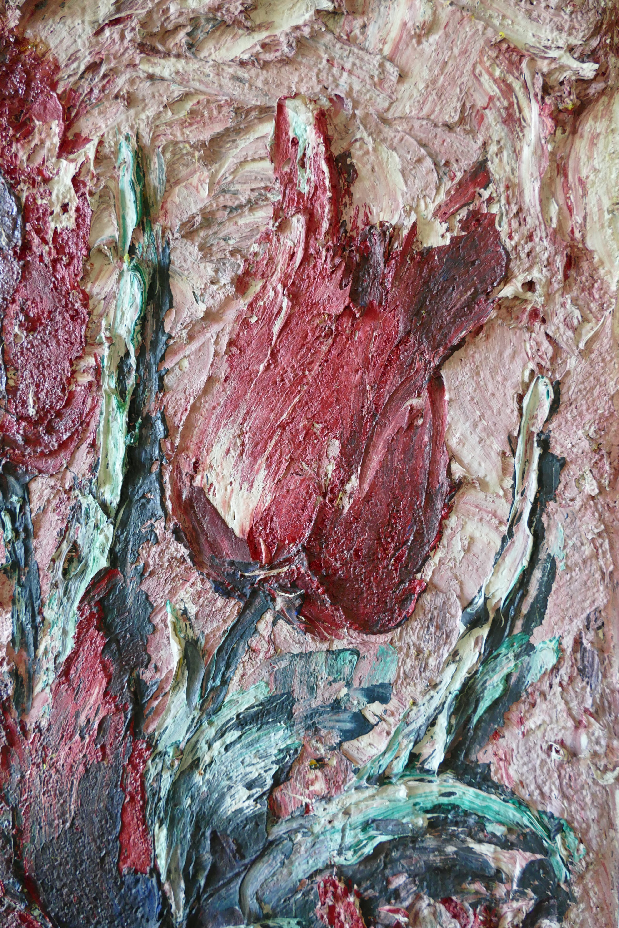 Buitengewoon knap geschilderd stilleven wat rechtsonder onduidelijk gesigneerd is. Waarschijnlijk periode 1940-1960