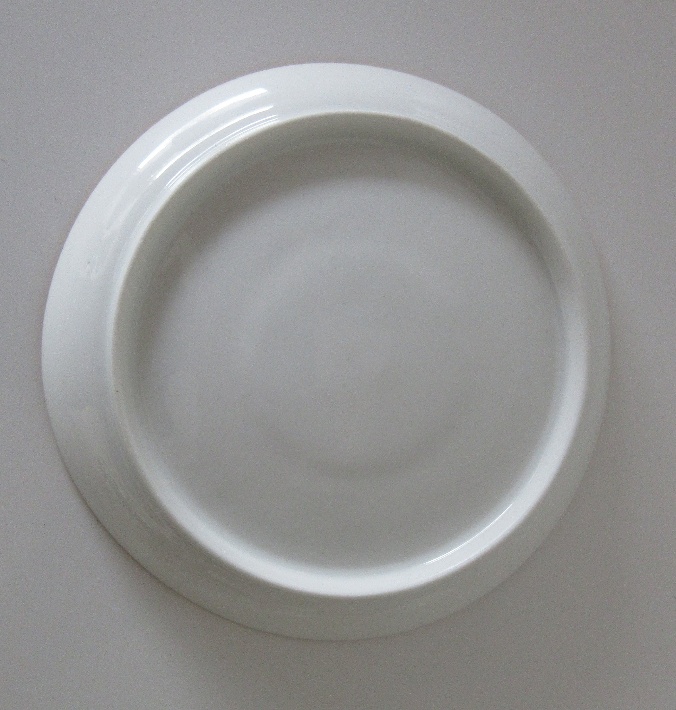 Afmetingen schotel enkele vergulde rand; 2 cm hoog en 12,2 cm in diameter