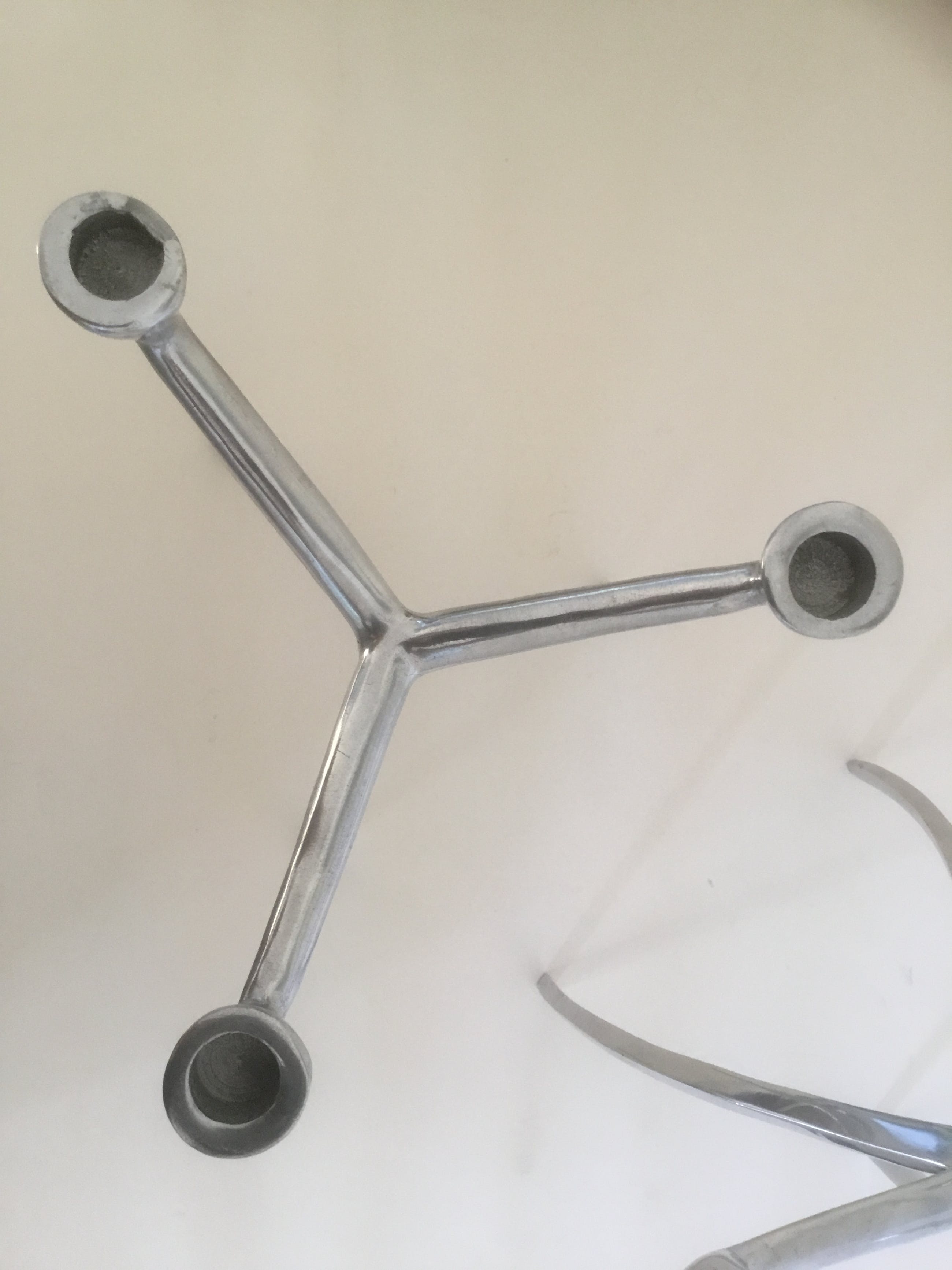 Twee driepuntige design kandelaars, De kandelaars zijn licht van gewicht en werden verkocht via “de Bijenkorf “