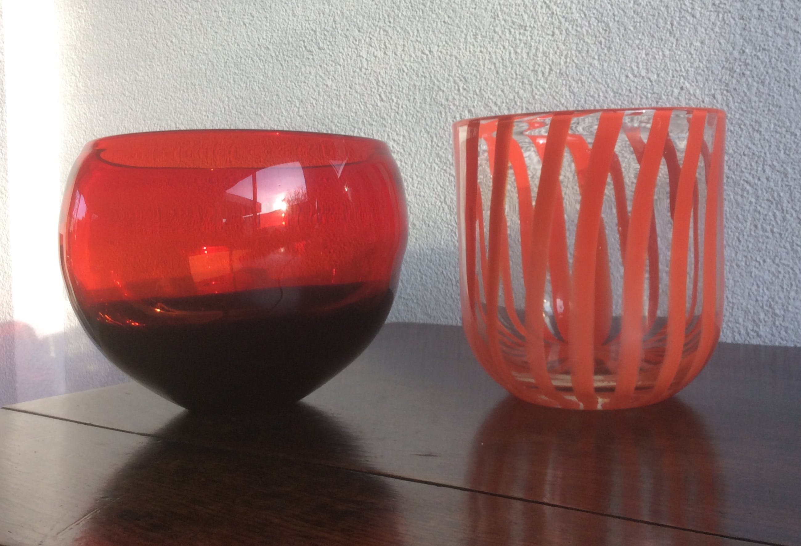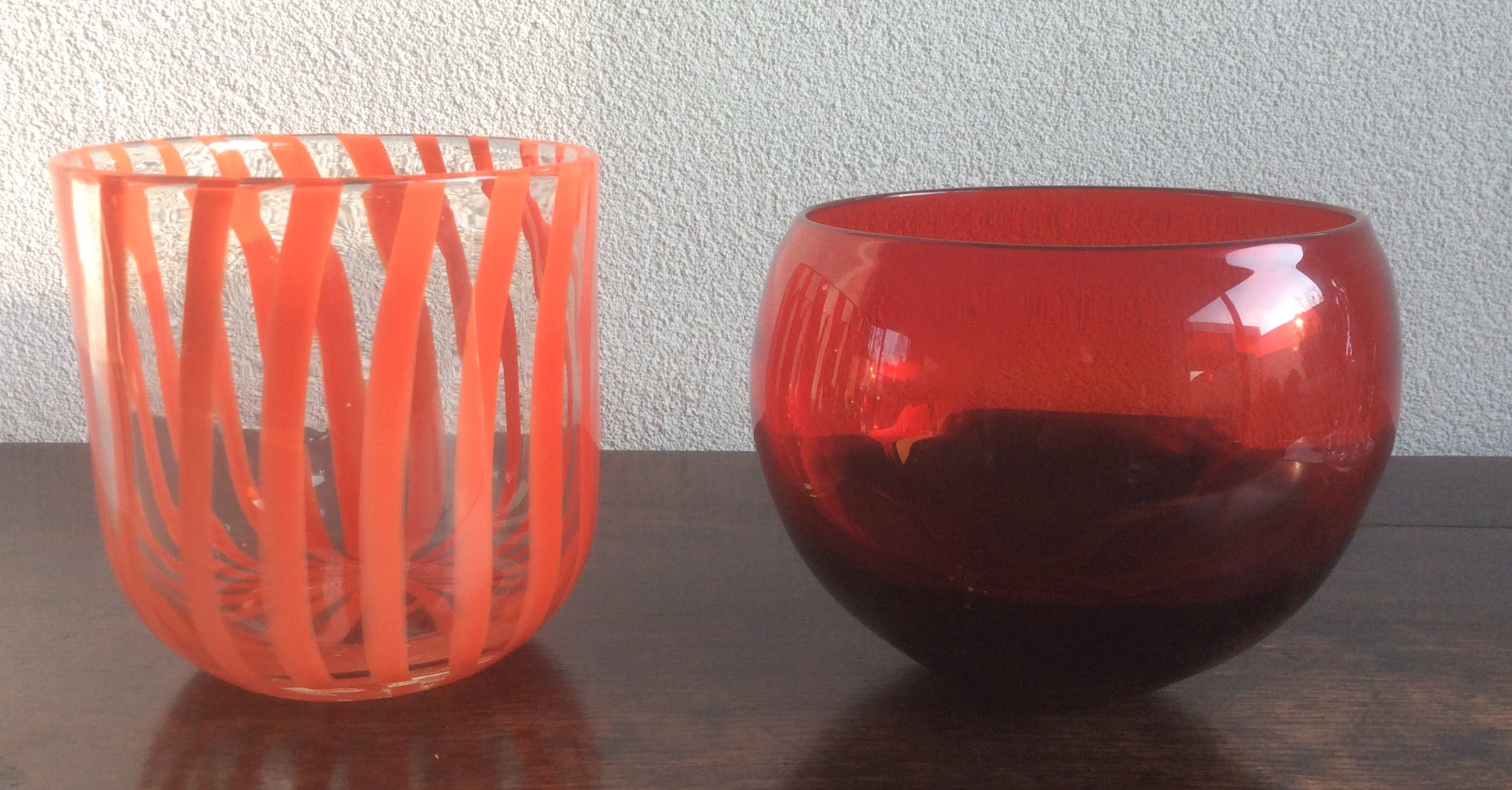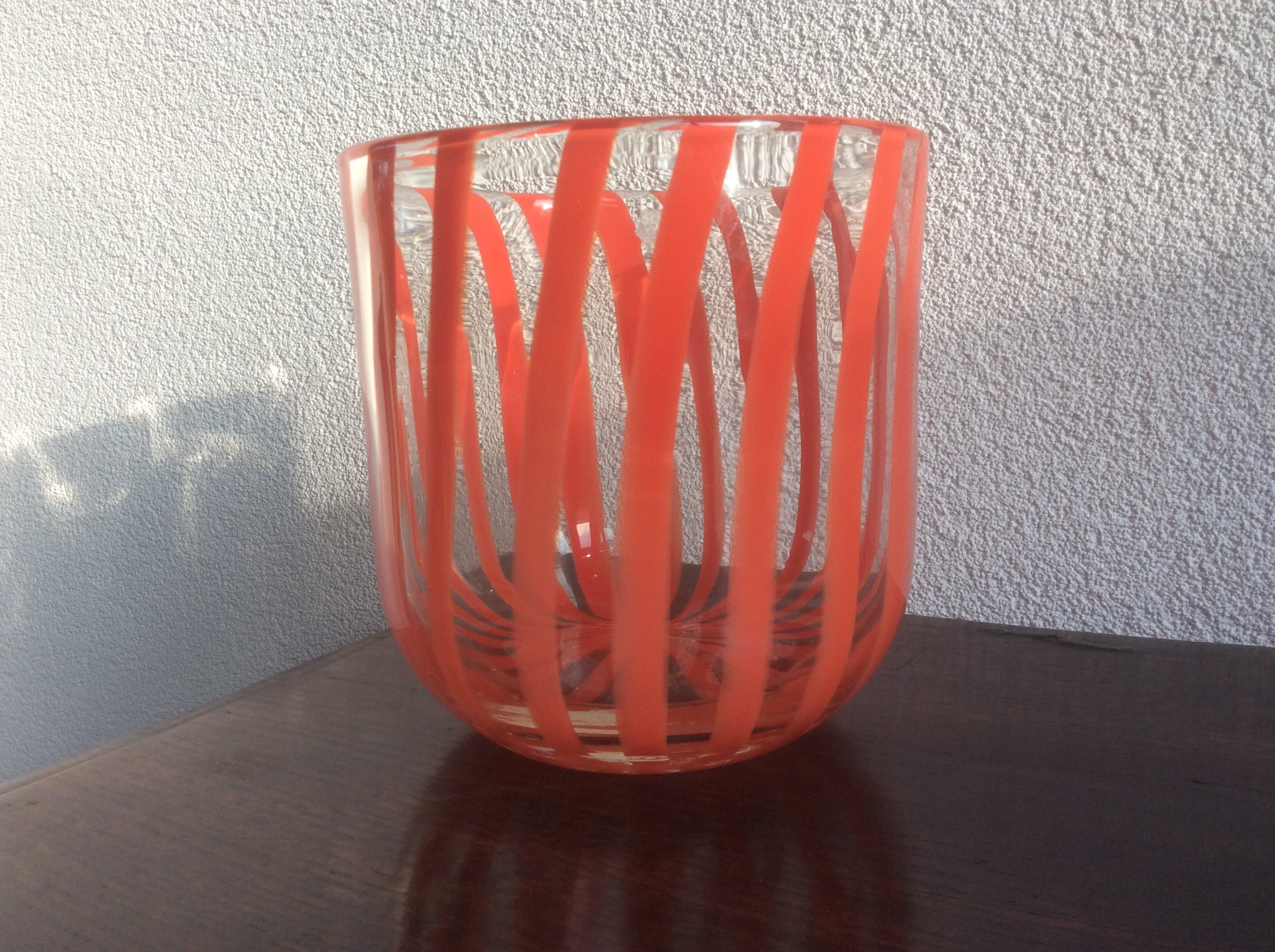 De pot met tomaatrode strepen heeft een hoogte van 17 cm en een doorsnede van 16,5 cm. Gewicht1511 gram.