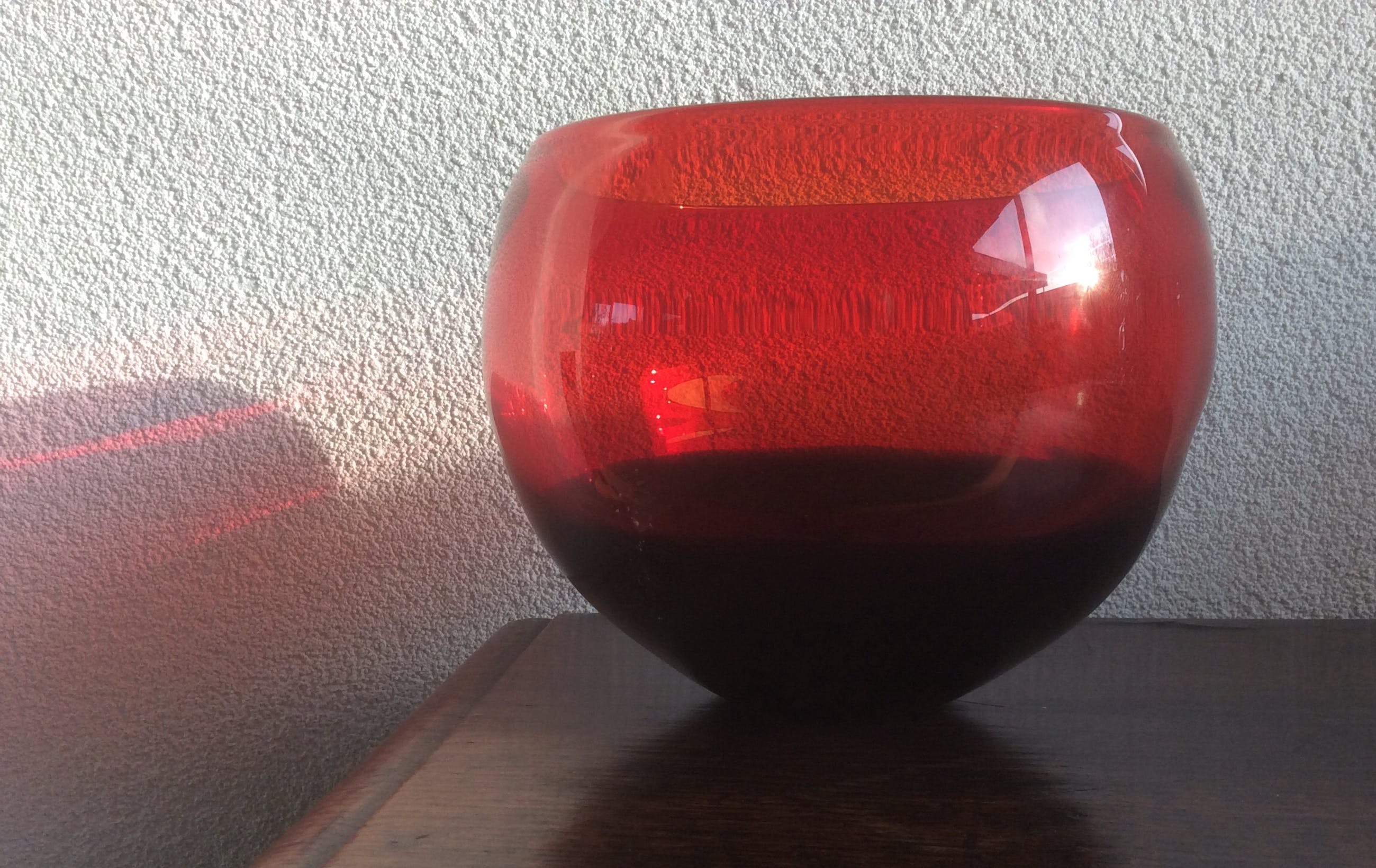 De rood/zwarte design glazen pot heeft een hoogte van 16 cm en een doorsnede van 17 cm. Gewicht 1446 gram
