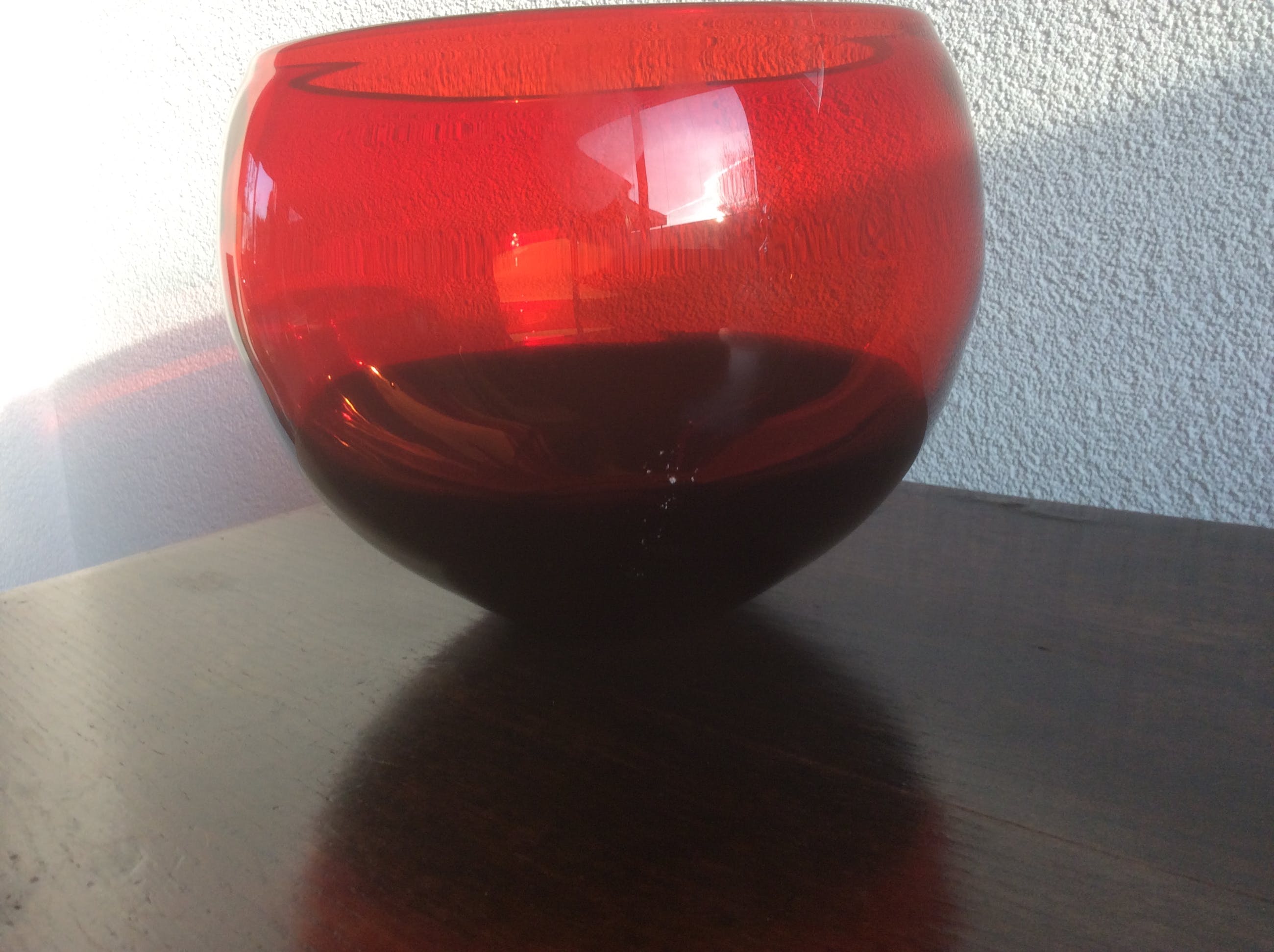 De rood/zwarte sierpot heeft op het glas een klein beschadigd plekje, weinig opvallend in de vorm van een paar speldenprikje op de grens van zwart en rood. (Zie foto)