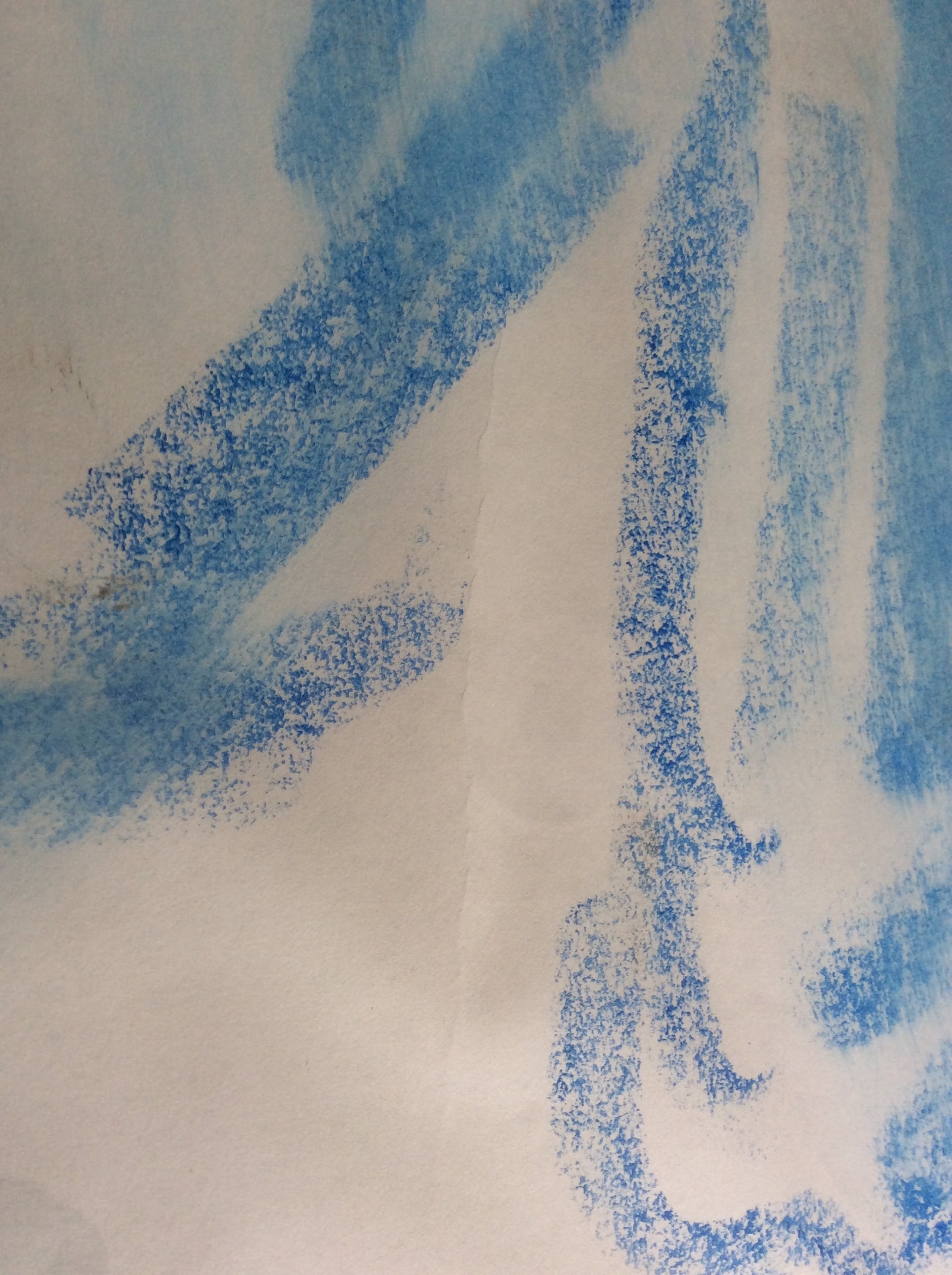 Grote wasco/ Krijt tekening waterkring in onderzijde en wat kreukjes in het papier