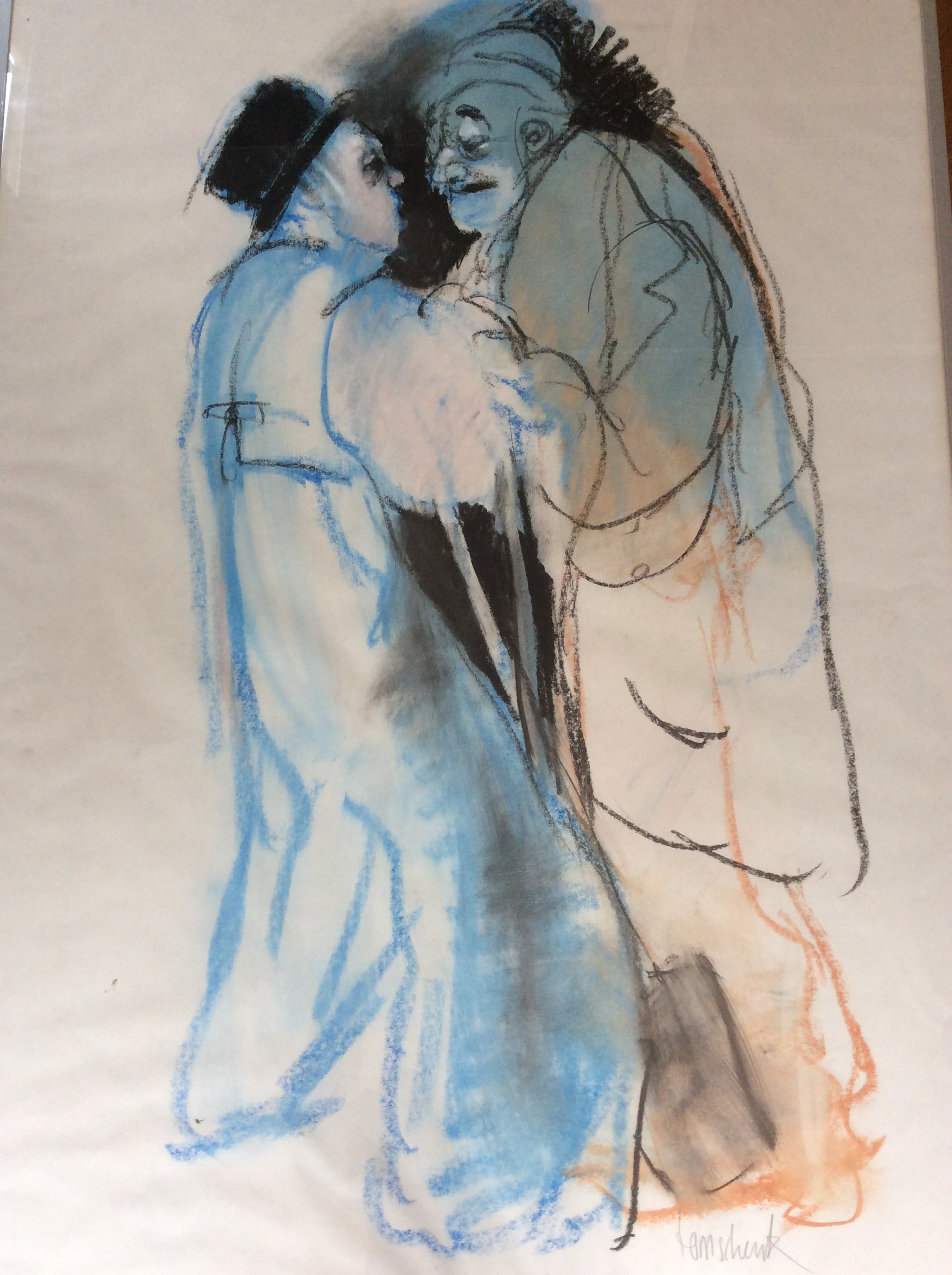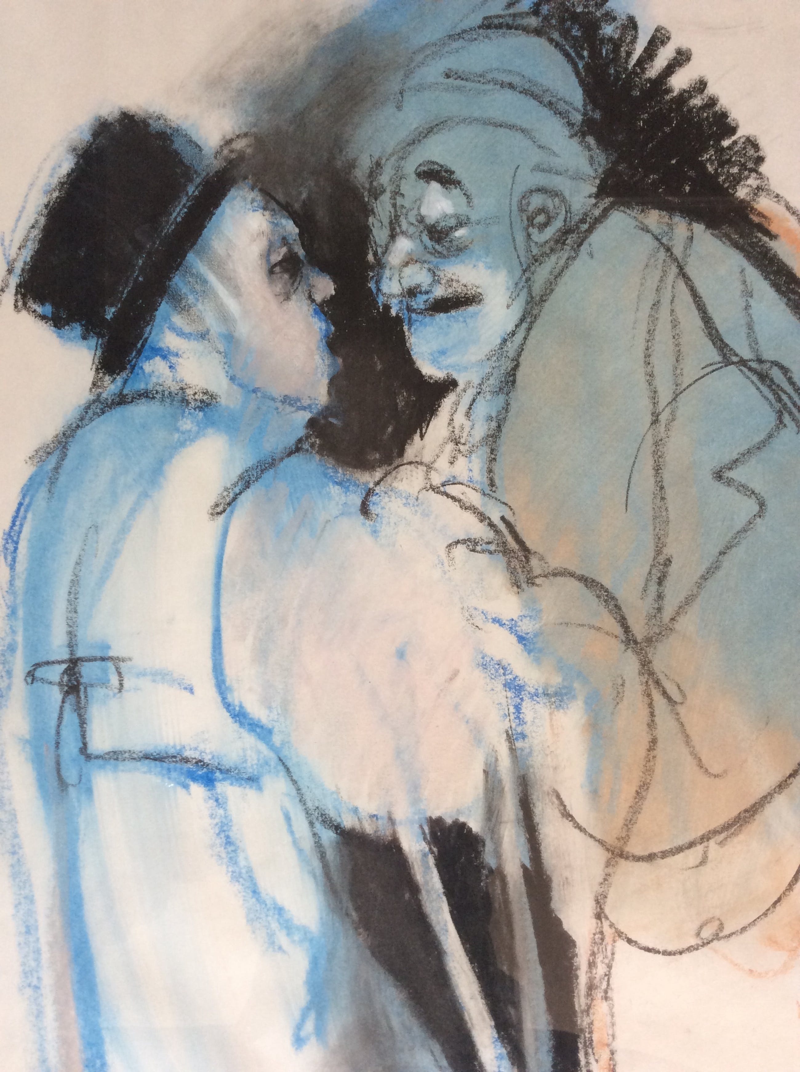 Mooi werk twee clowns of zwervers, wasco/ krijt op papierOnduidelijke sign. Er zit een watervlek aan de onderzijde maar als je opnieuw inlijst vervalt dat.