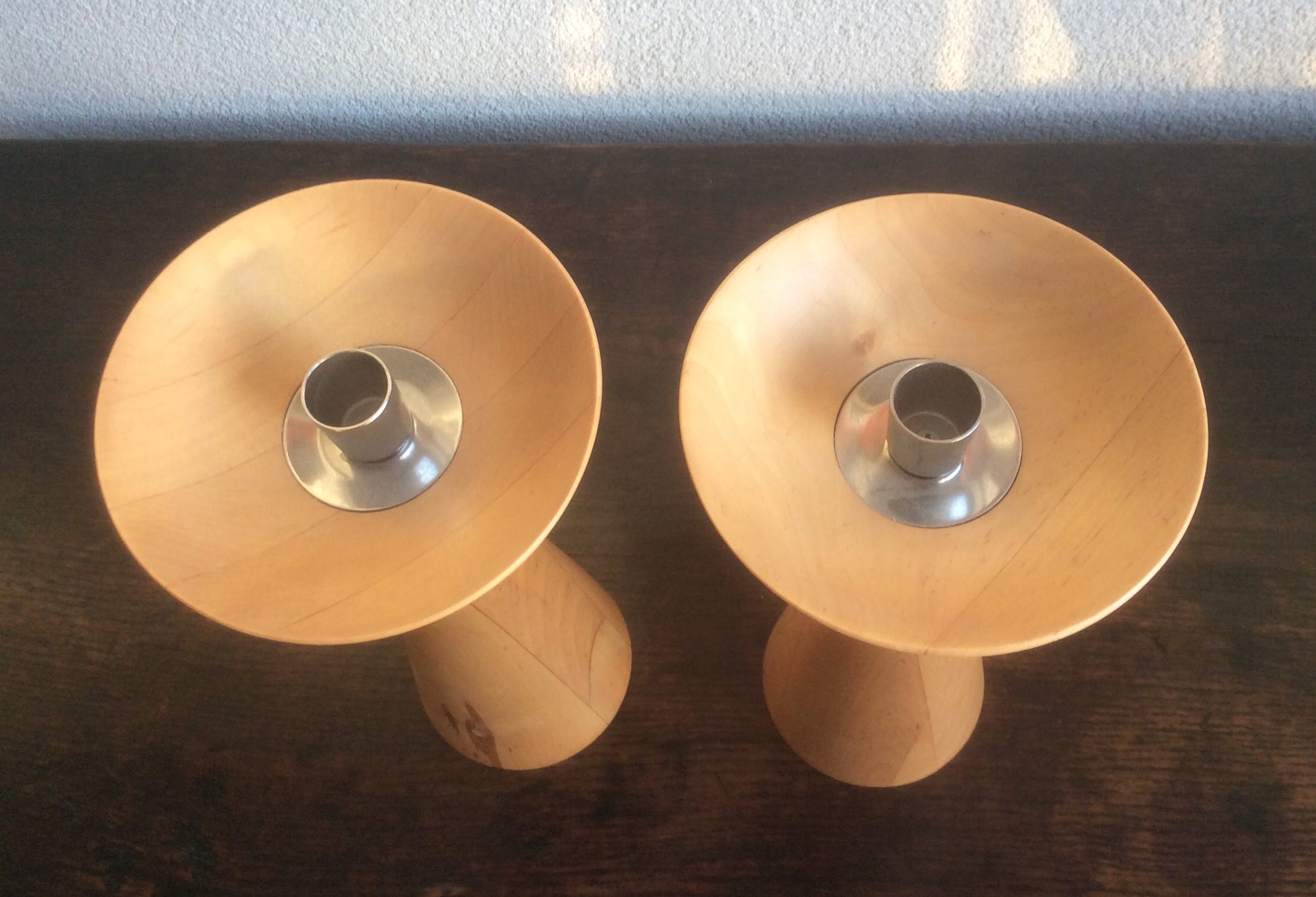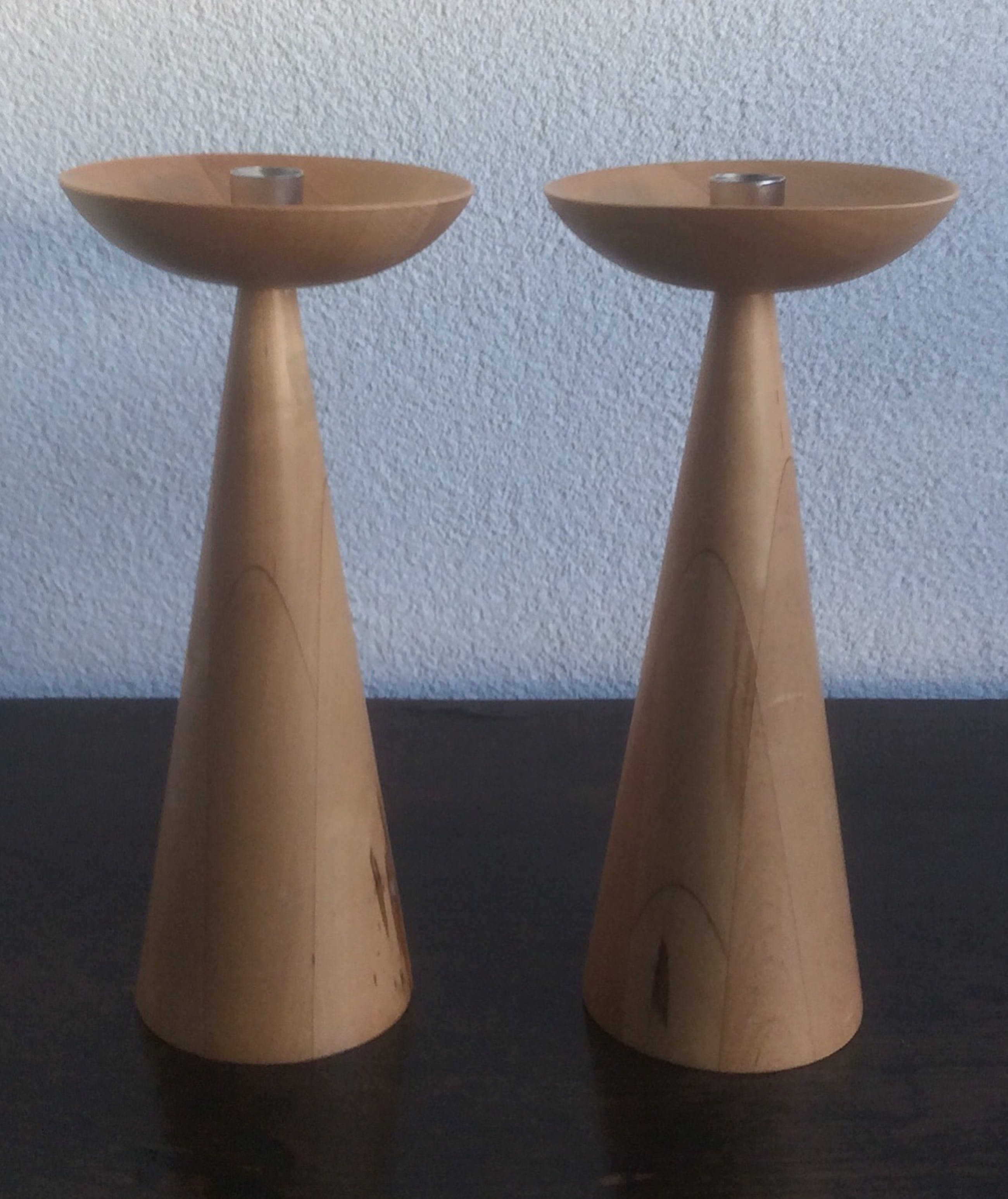 De kaarsendragers zijn van massief beukenhout en staan zeer stabiel. Per stuk 28 cm hoog en 13 cm breed. De aluminium houdertjes hebben een opening van 21 mm.