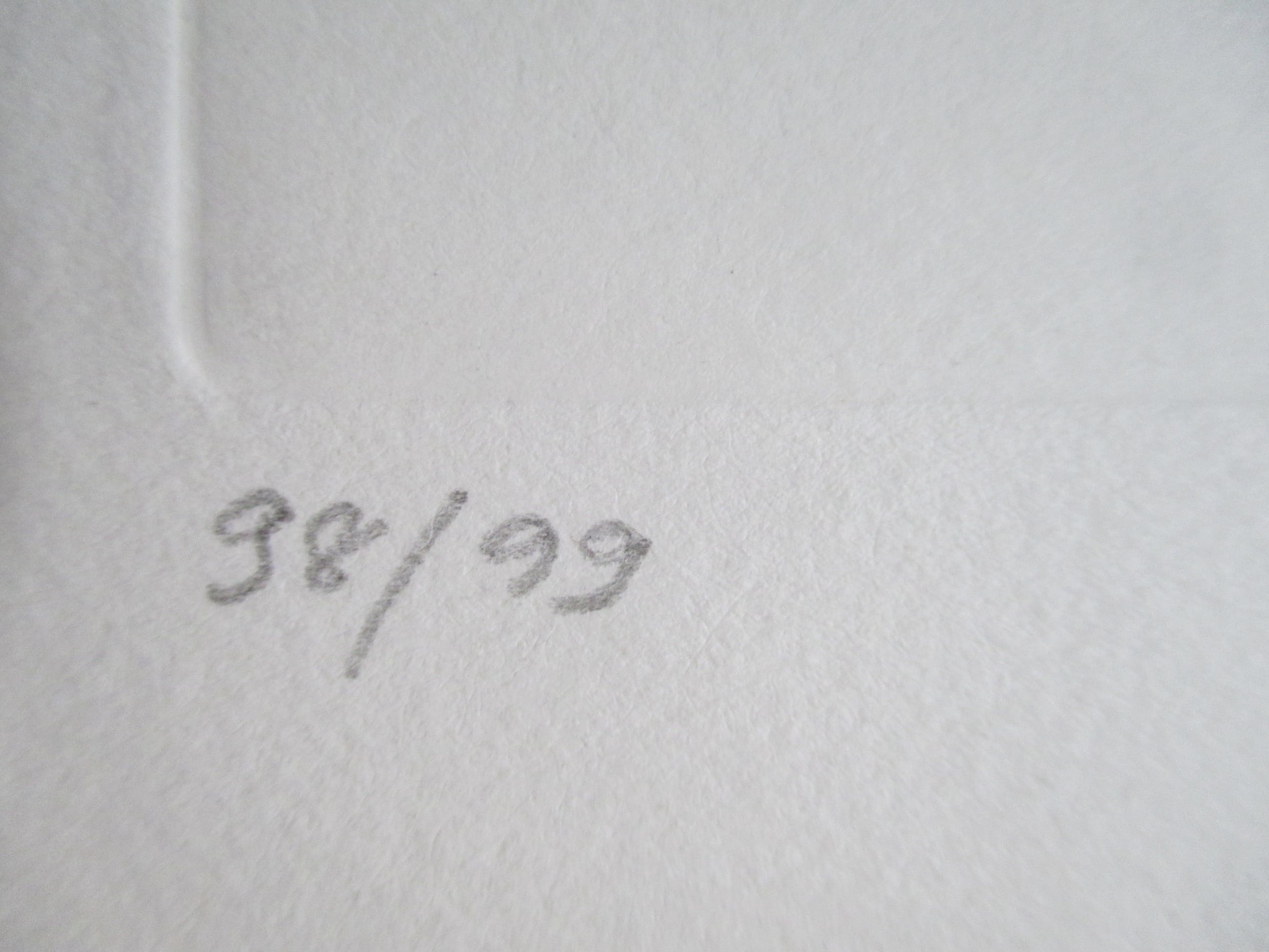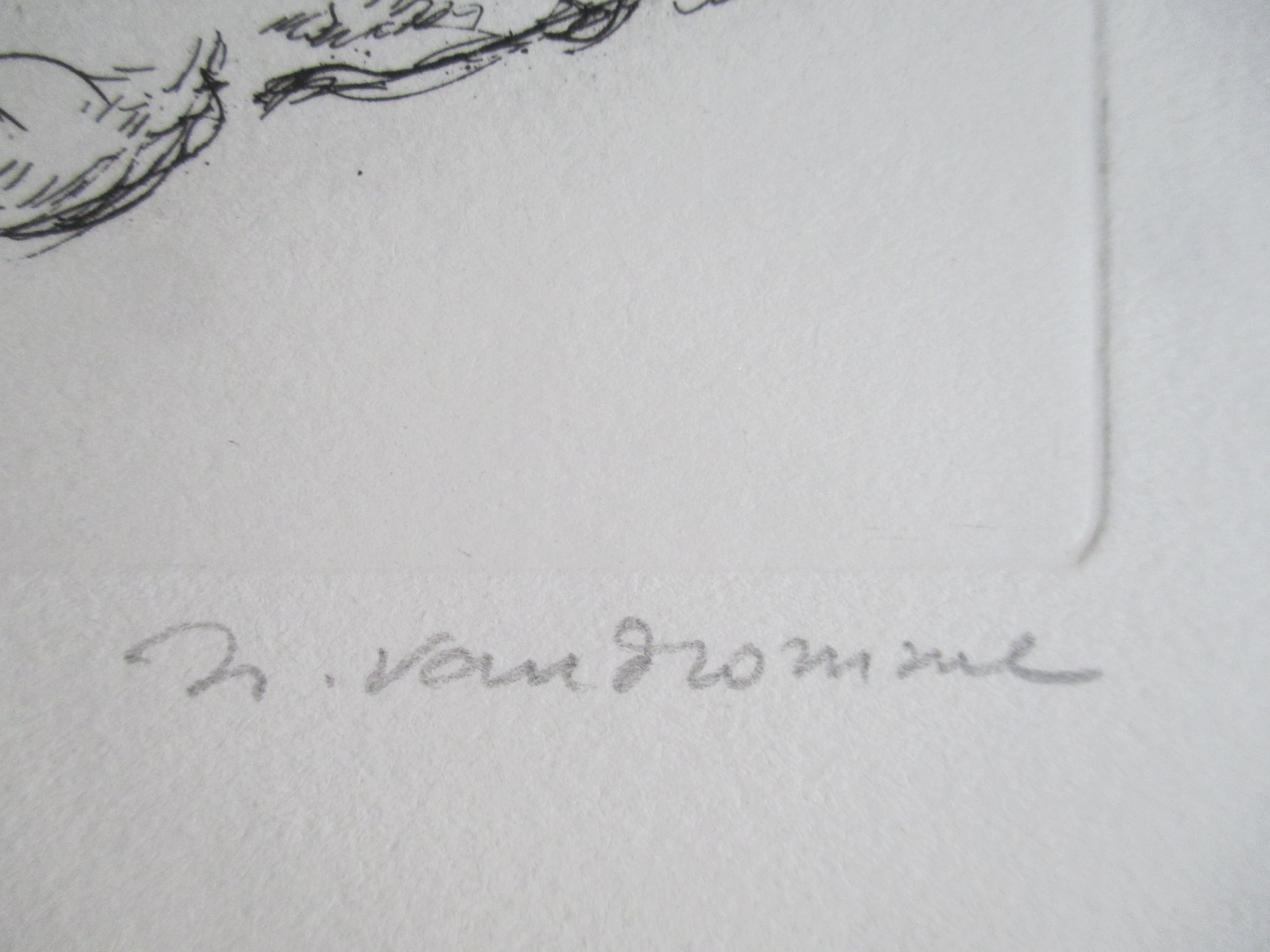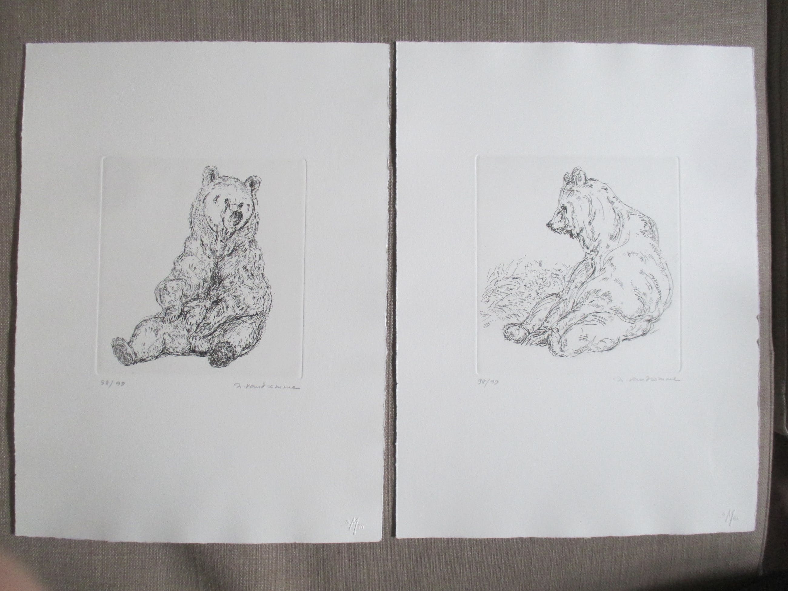 Twee etsen, beide gesigneerd en genummerd in potlood. Verzending tussen twee platen, 8,25, aangetekend 10,20