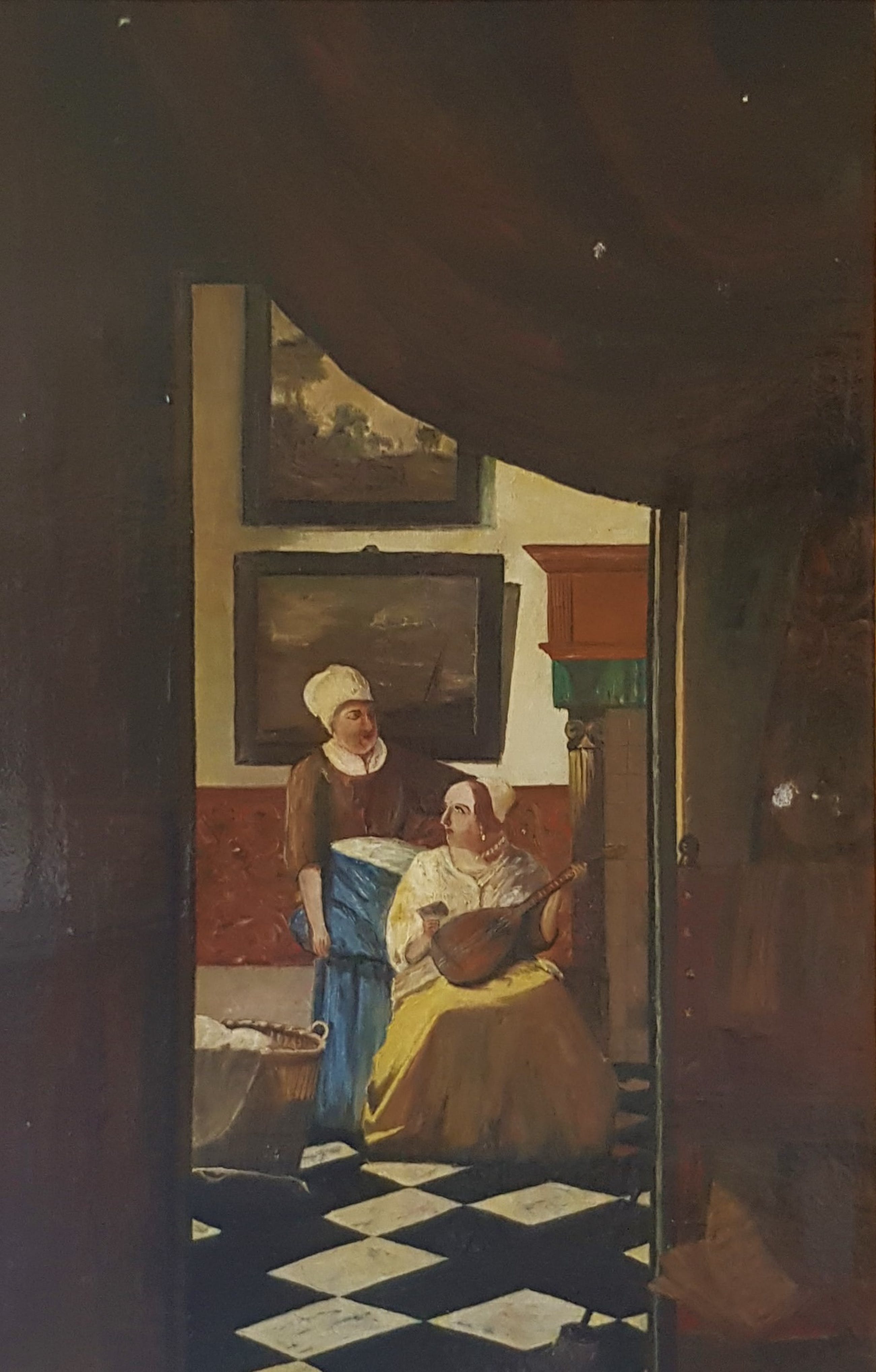 Schilderij : twee figuren olieverf of doek Afmeting: h 60 x b 40 cm - lijst 67x47 cm In gebruikt staat - kijk foto's