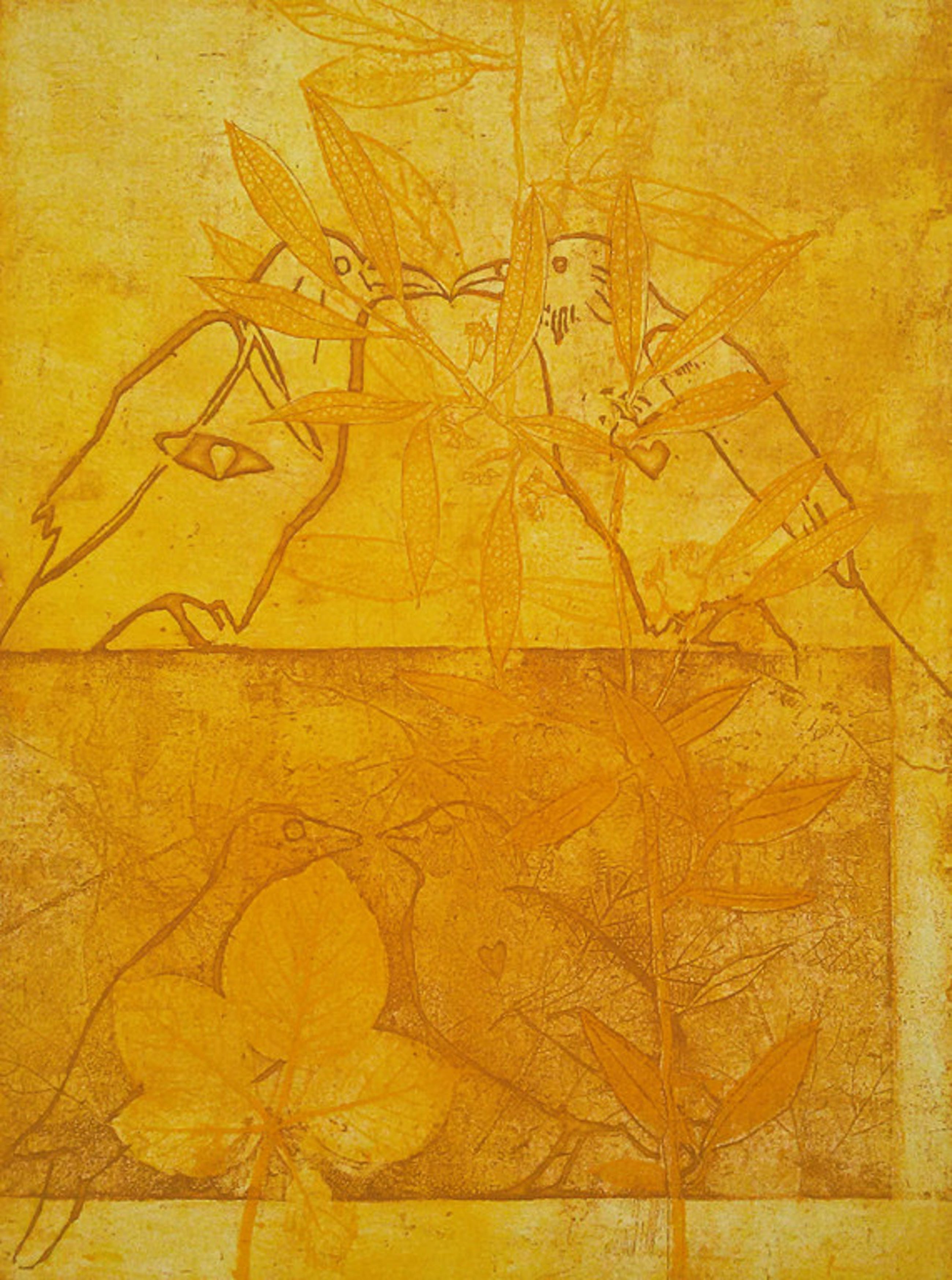 Sprankelend gele ets van een onbekende kunstenaar (Hans Duinma?). Met potlood gesigneerd, gedateerd (1983), getiteld en genummerd (15/40). In zeer goede staat.