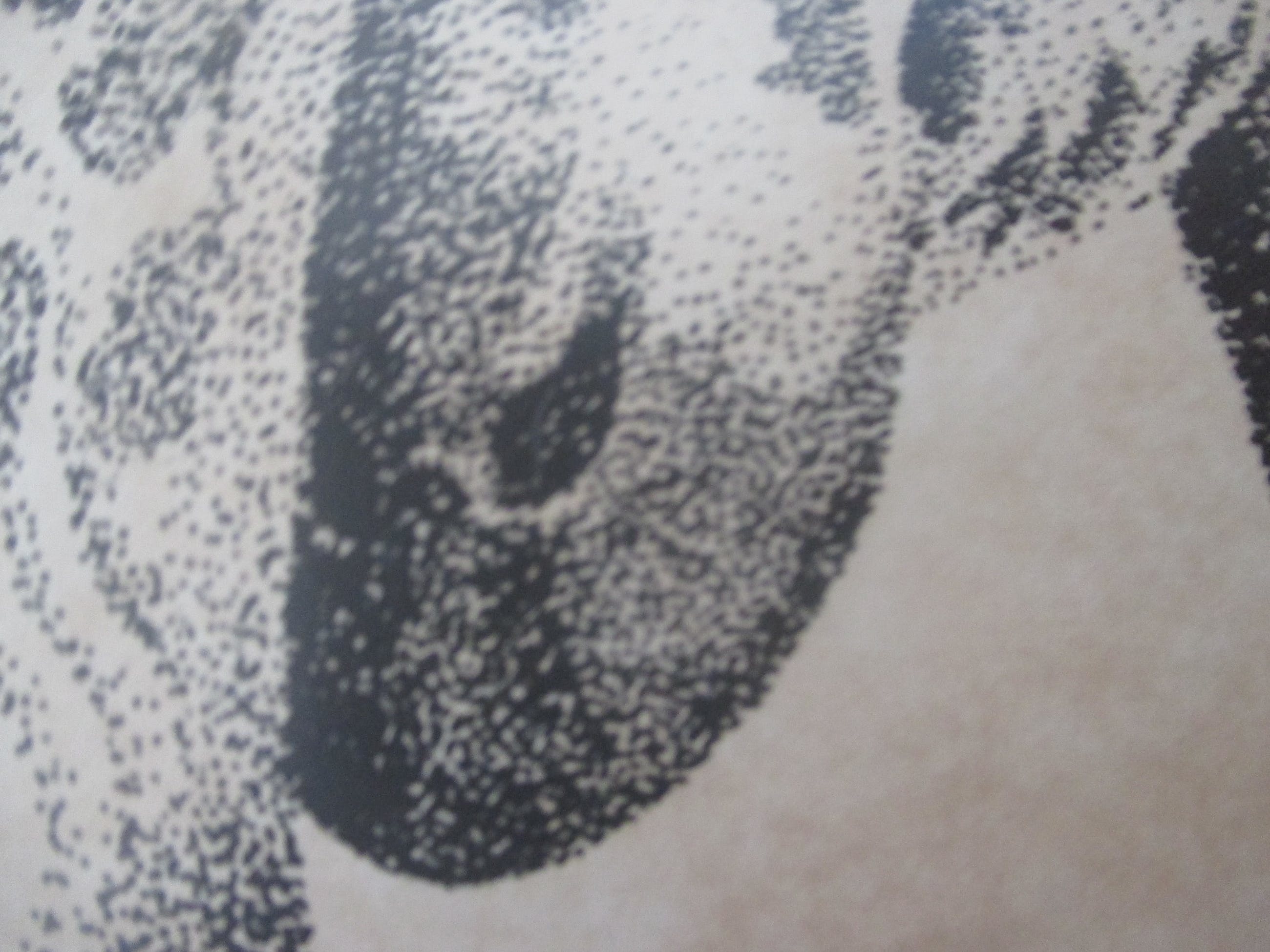 Een litho (21/ 100) van twee knuffelende giraffen.Met de hand gesigneerd door Kay Rhijmer Pearce.Is aan de buitenkanten licht verkleurd.