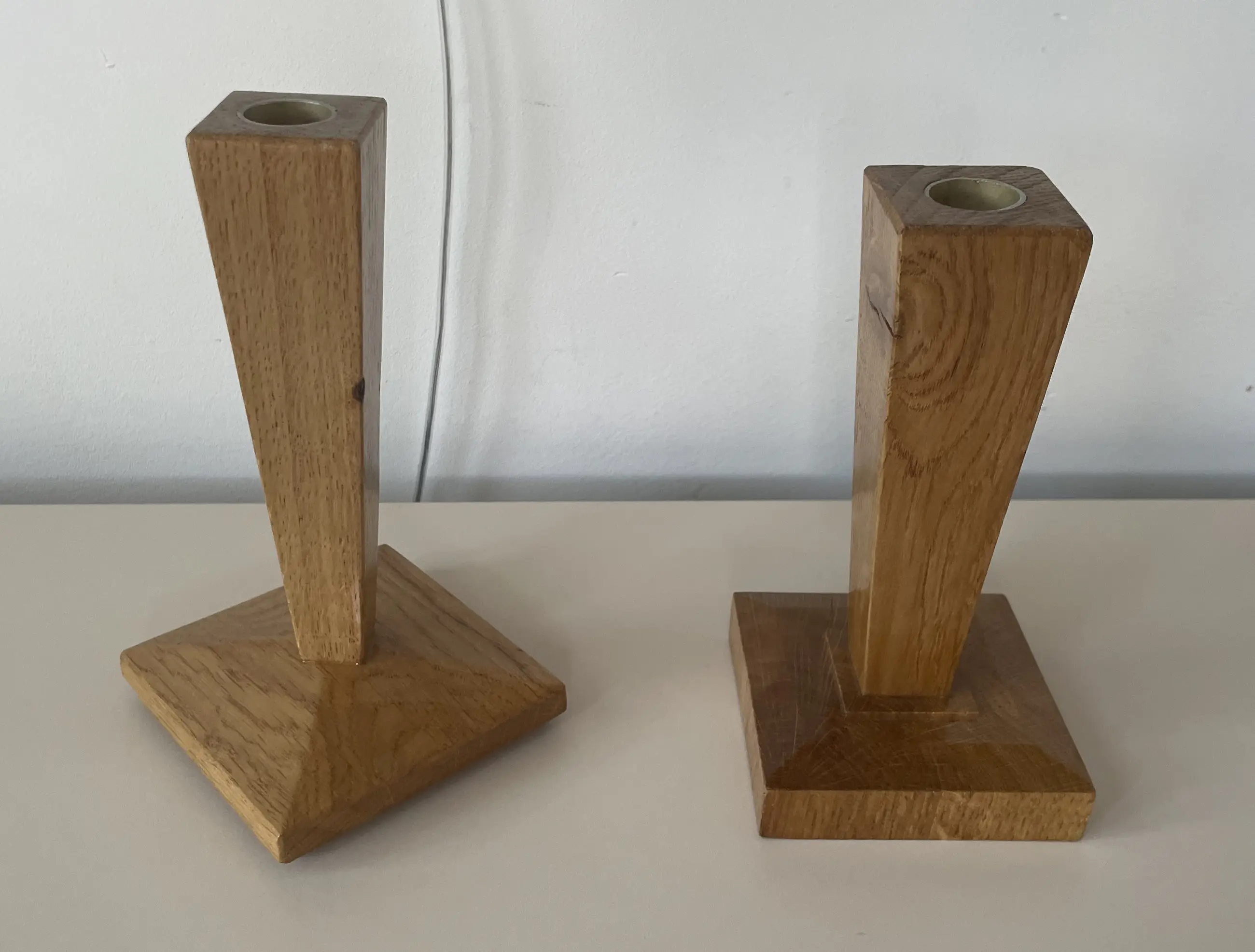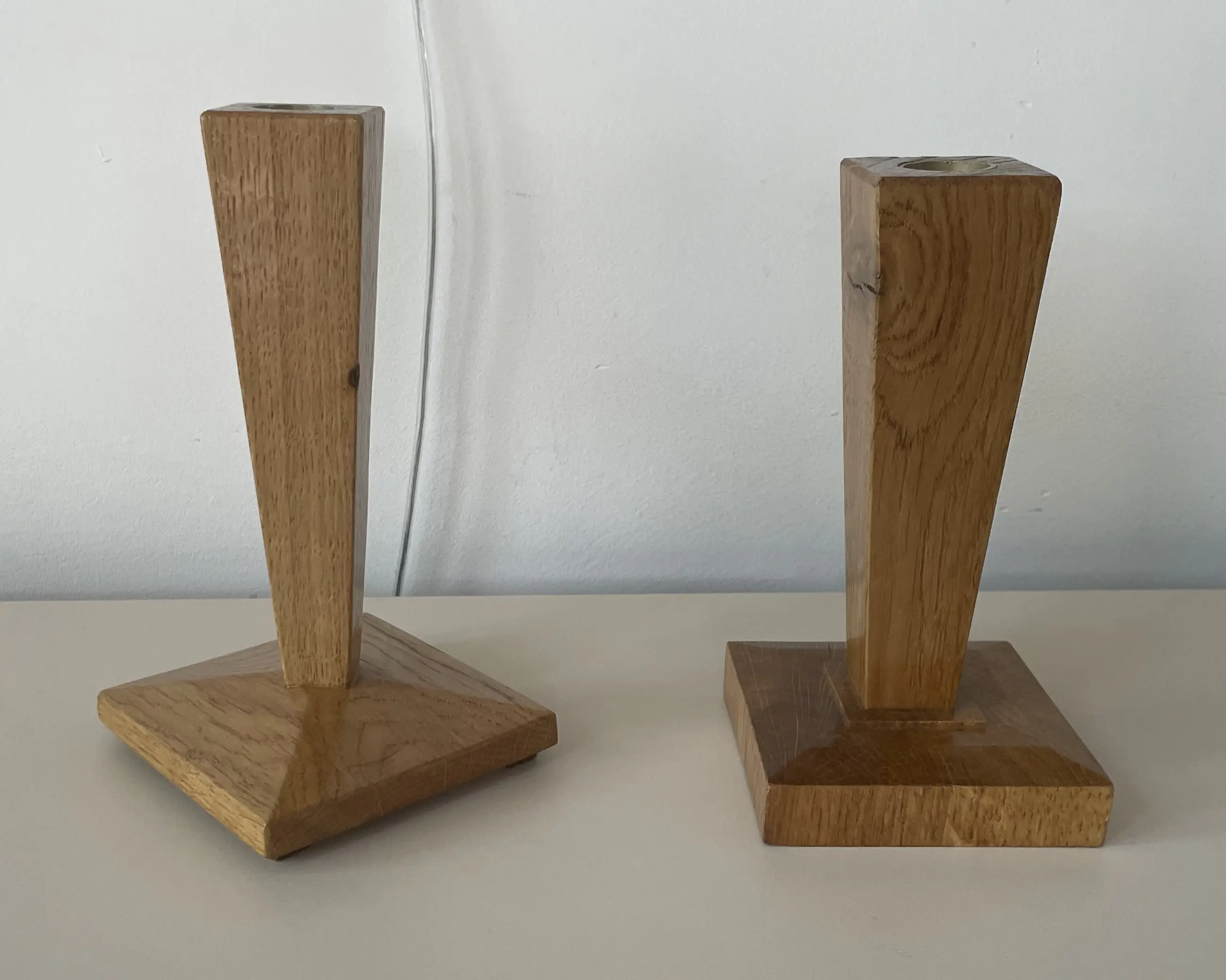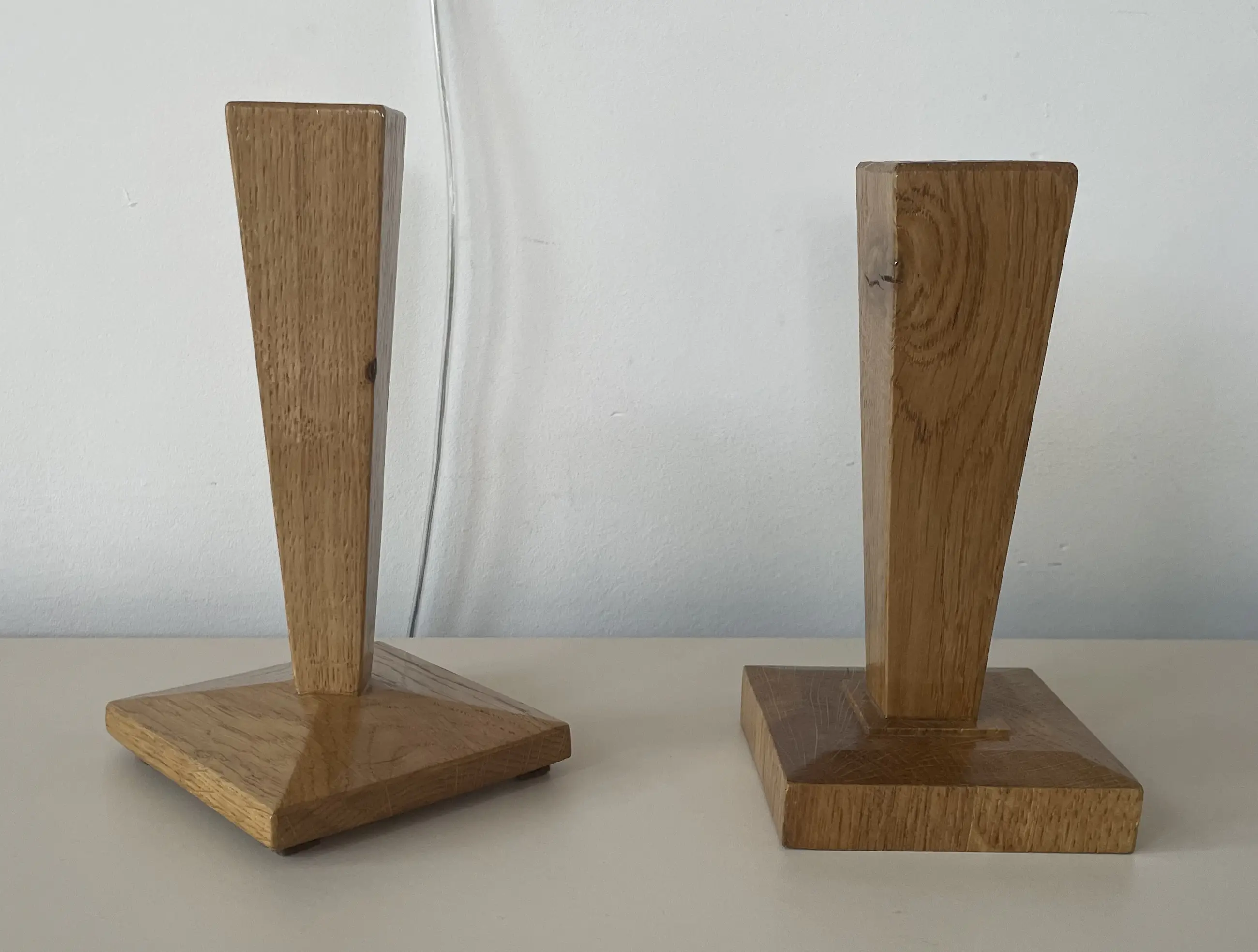 Twee gelakte houten handgemaakte art deco kandelaren. Niet gemerkt. In prima conditie.