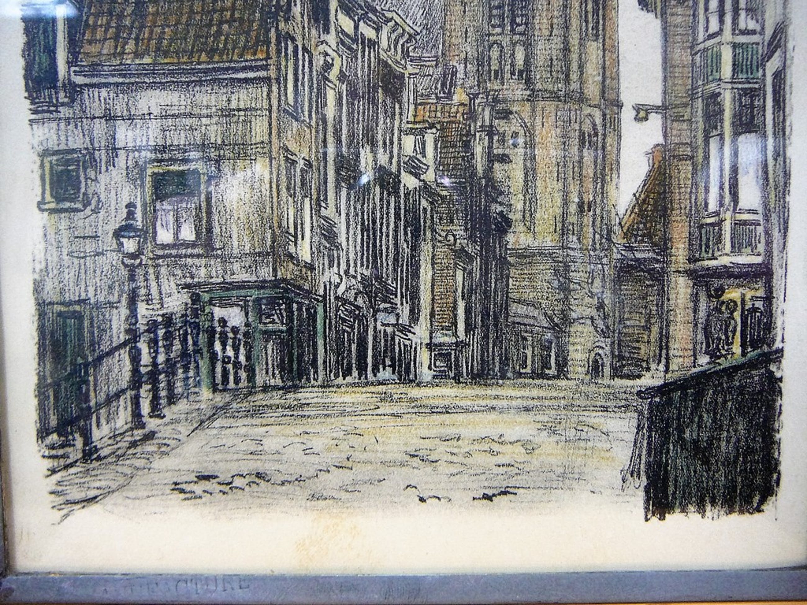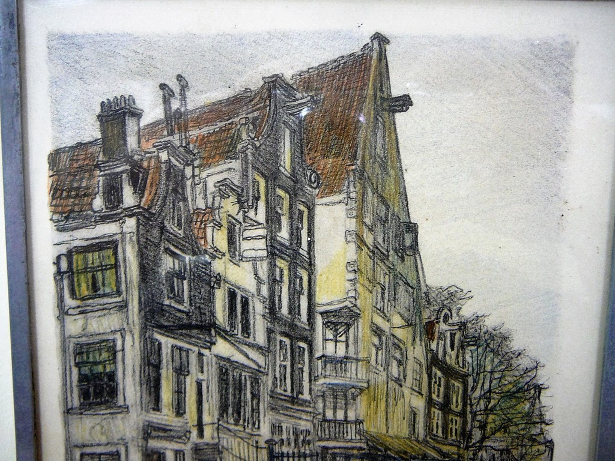 2 Zeer mooie krijttekeningen van amsterdam in zinken lijstjes