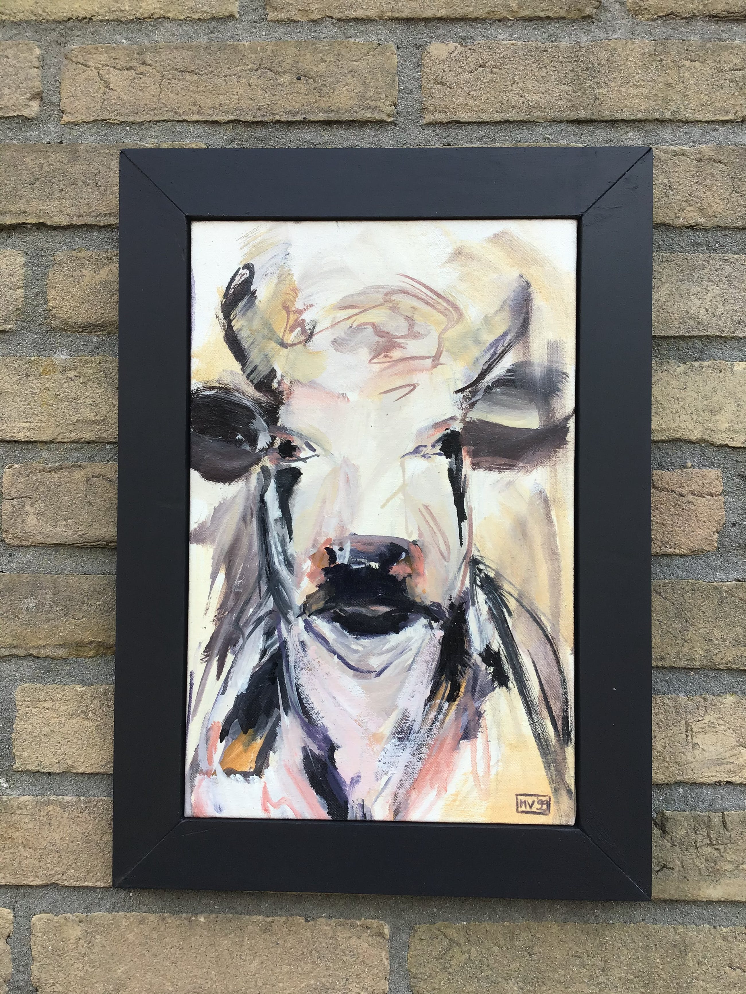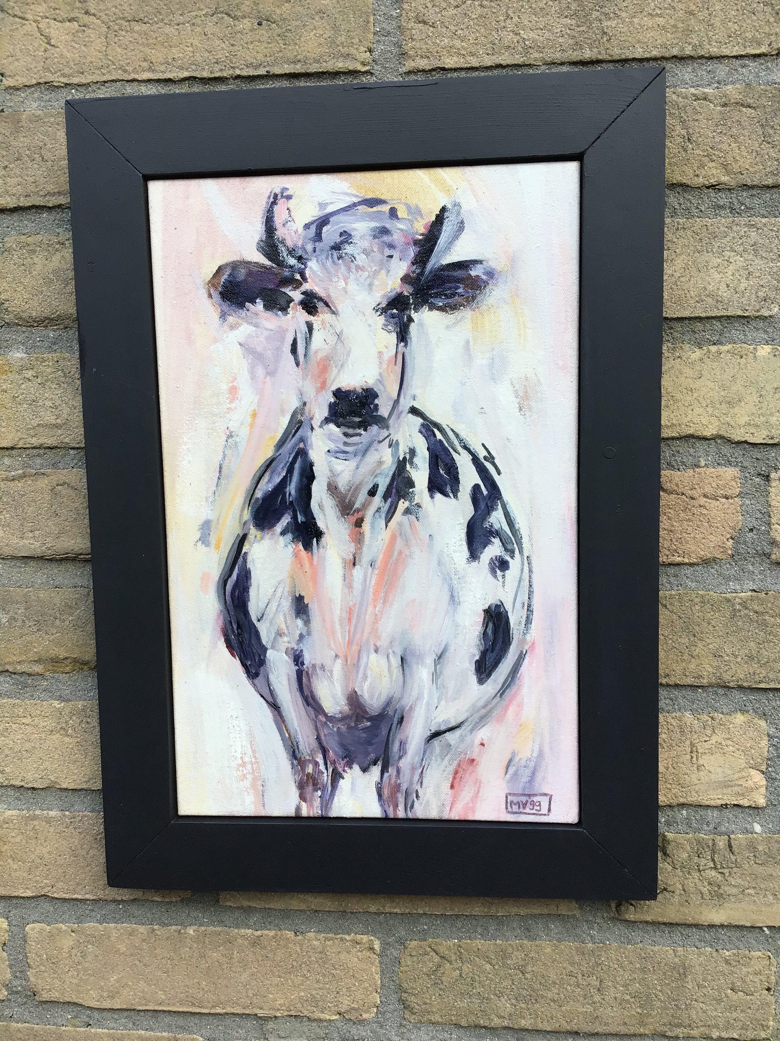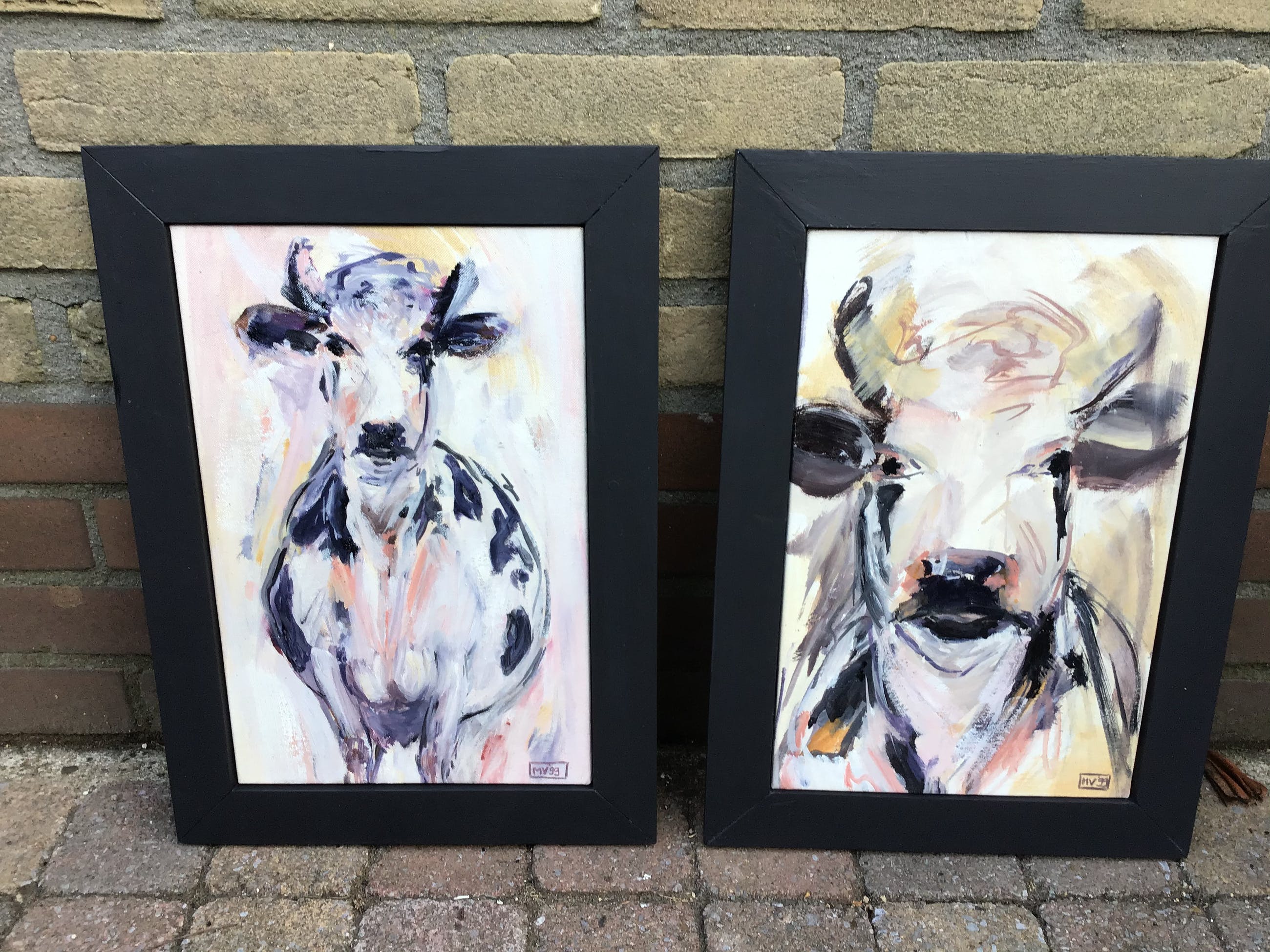 Dezelfde koe twee keer geschilderd. Bijna in zwartwit.