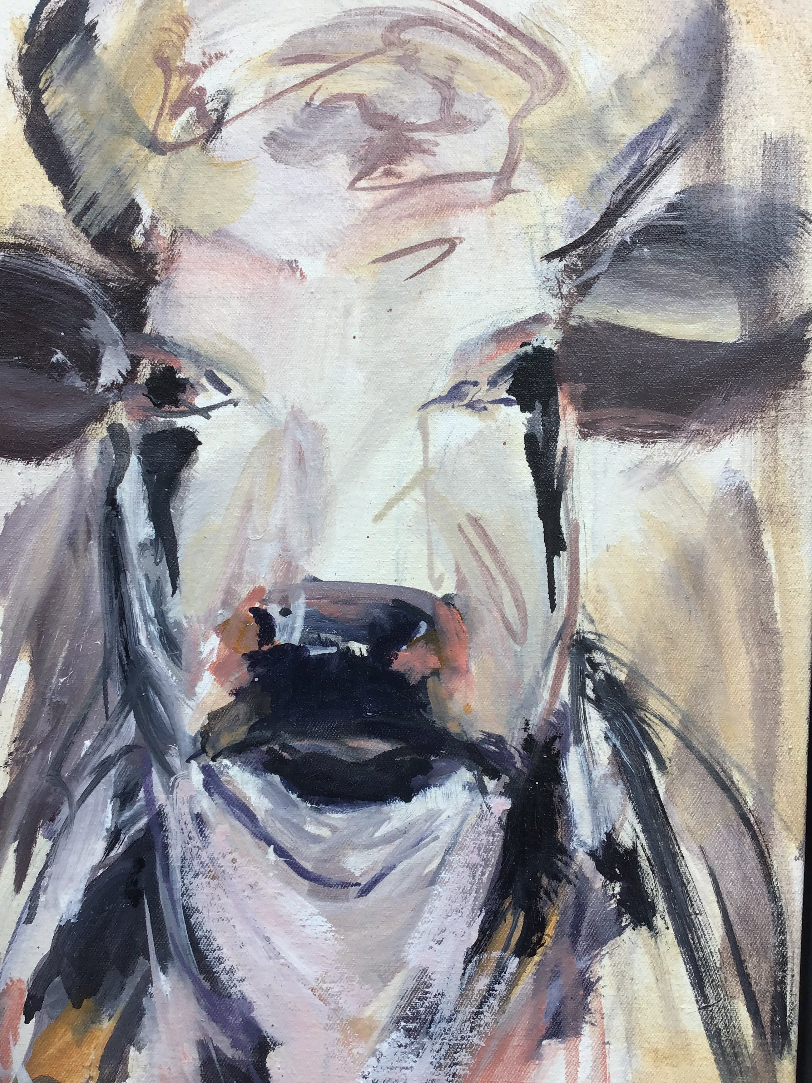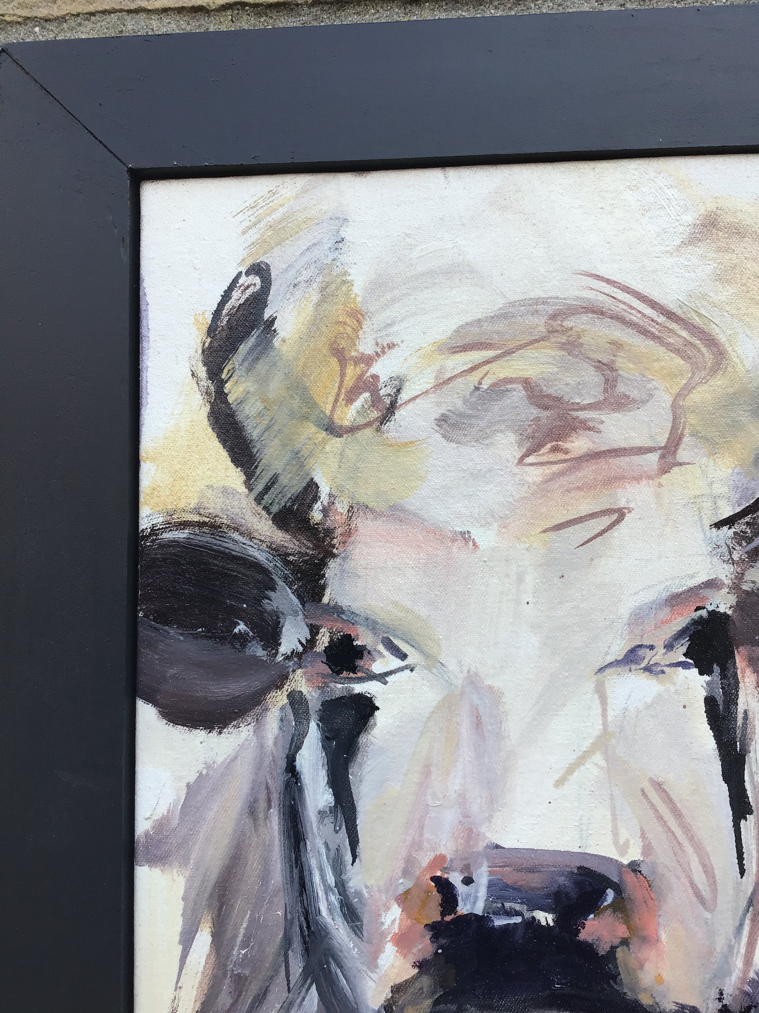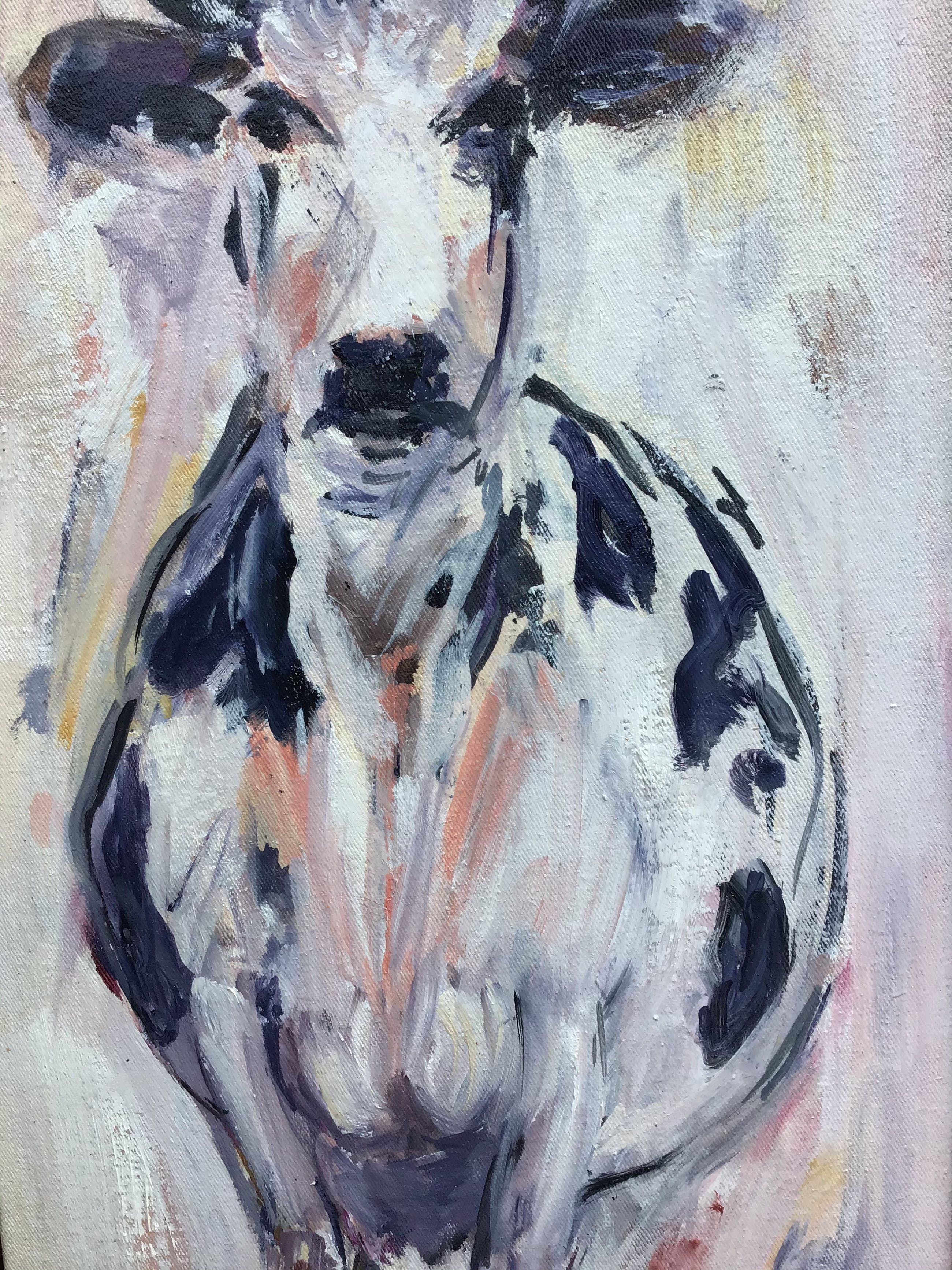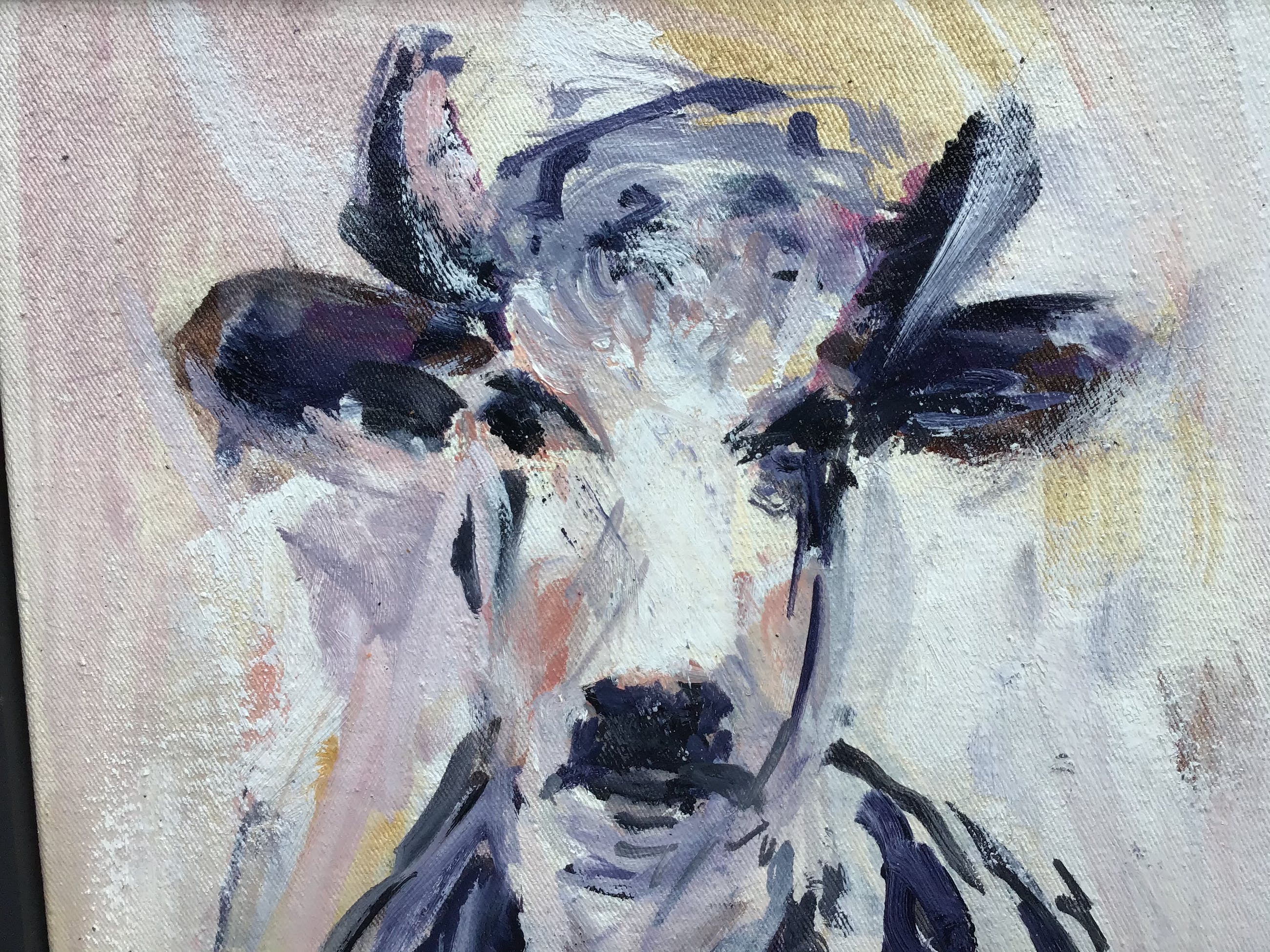 Dezelfde koe twee keer geschilderd. Bijna in zwartwit.