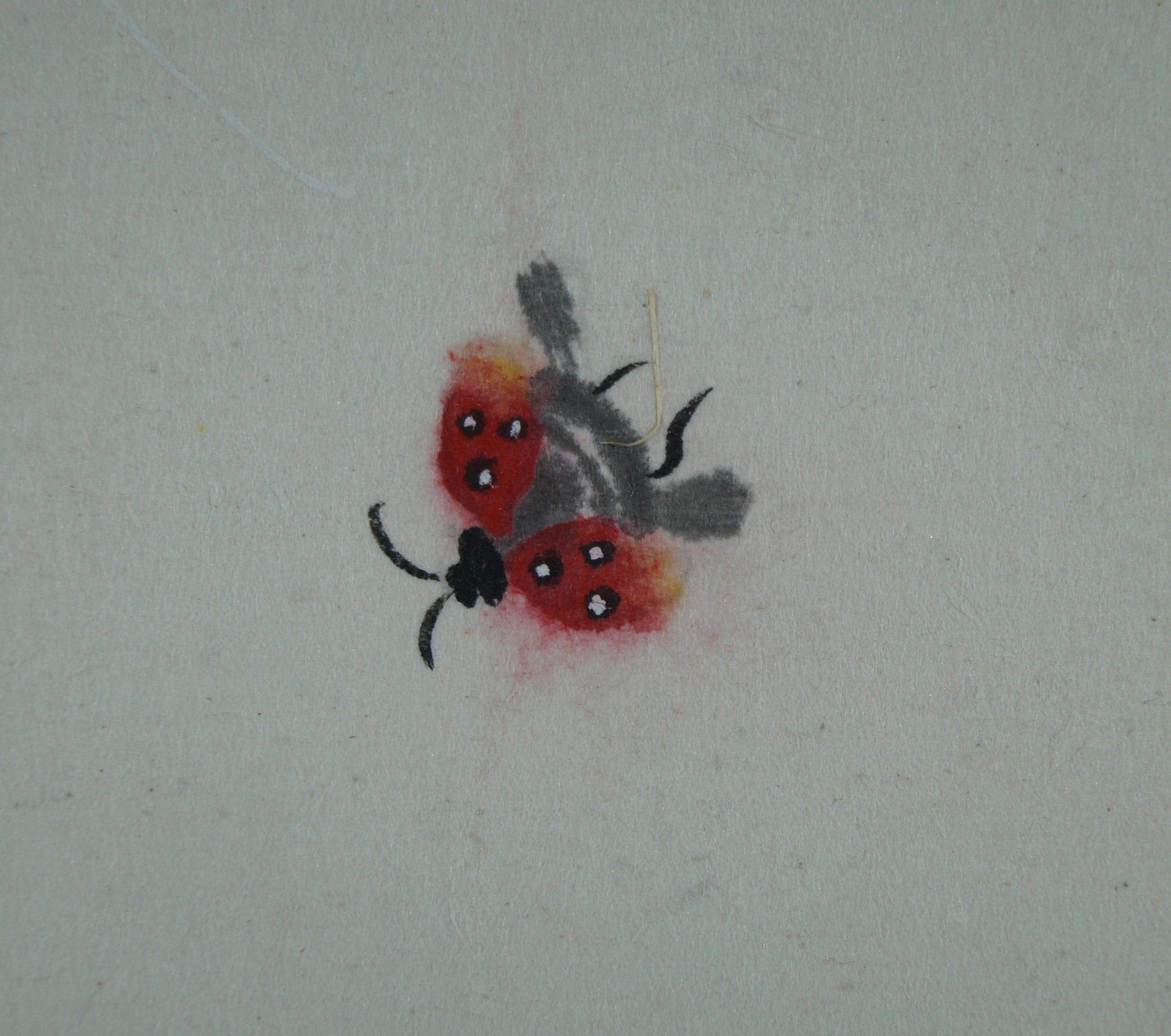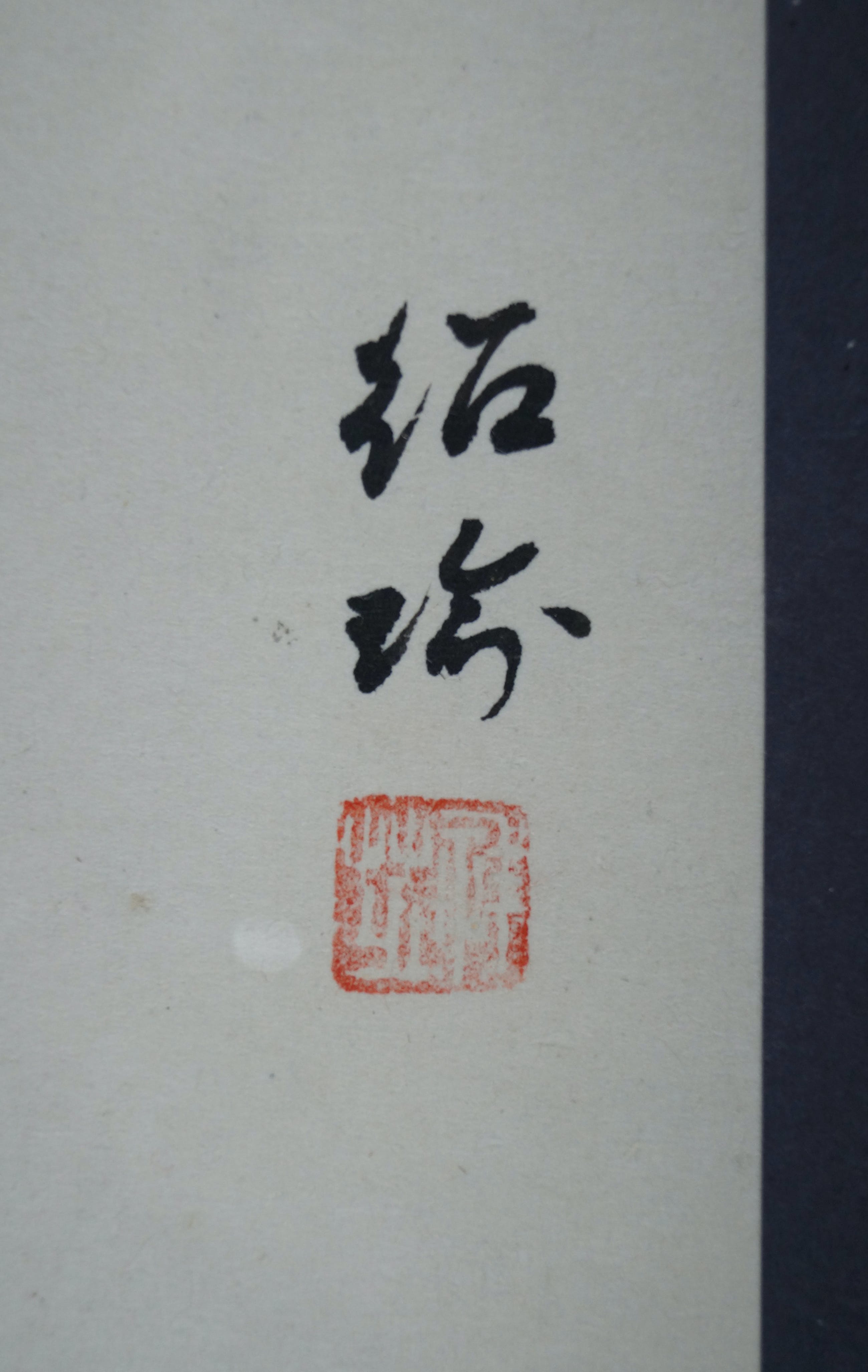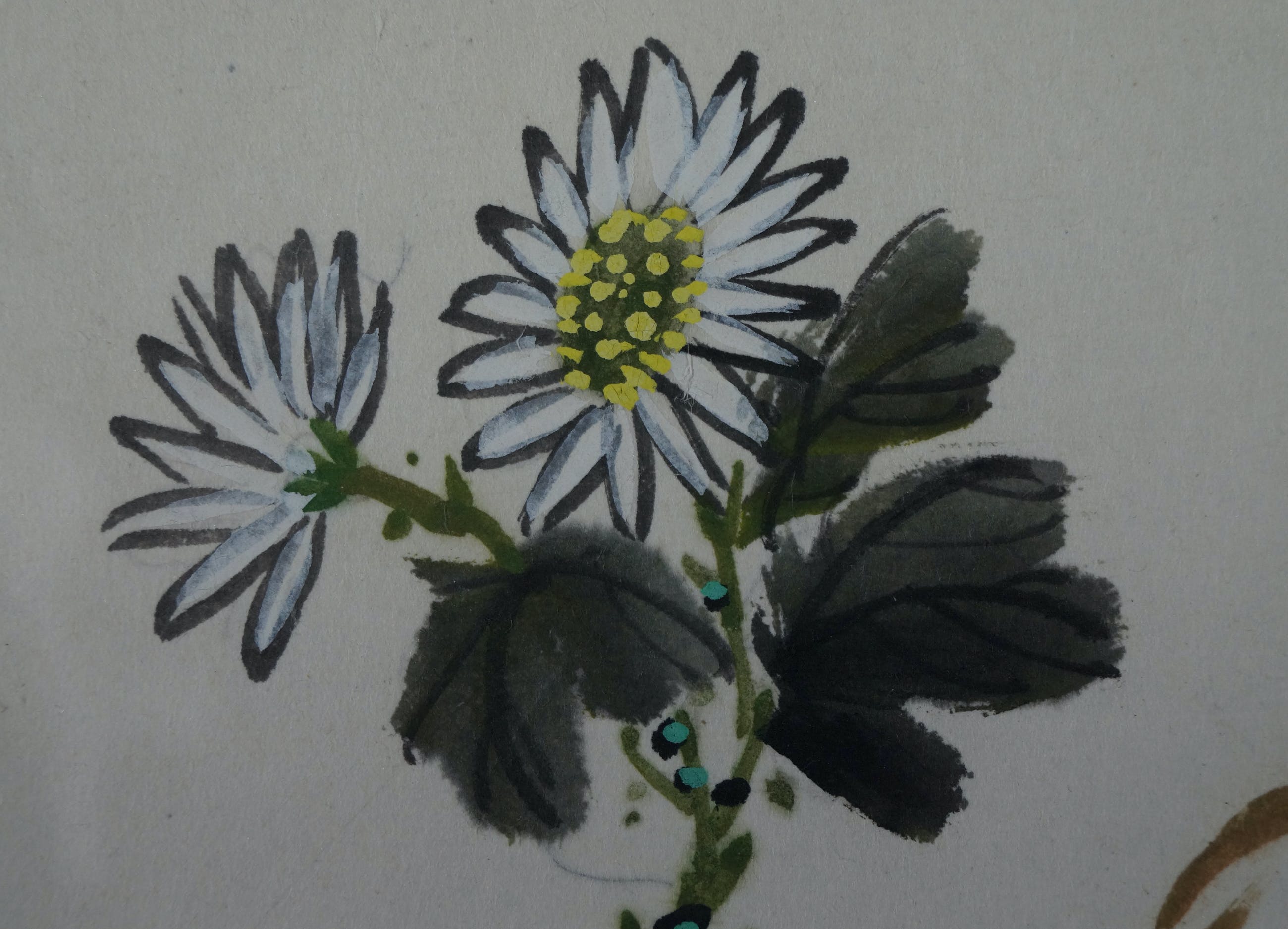 mooie aquarel van twee konijntjes gesigneerd en gestempeld in sierlijke Japanse karakters, die helaas voor Europeanen niet te ontcijferen zijn.