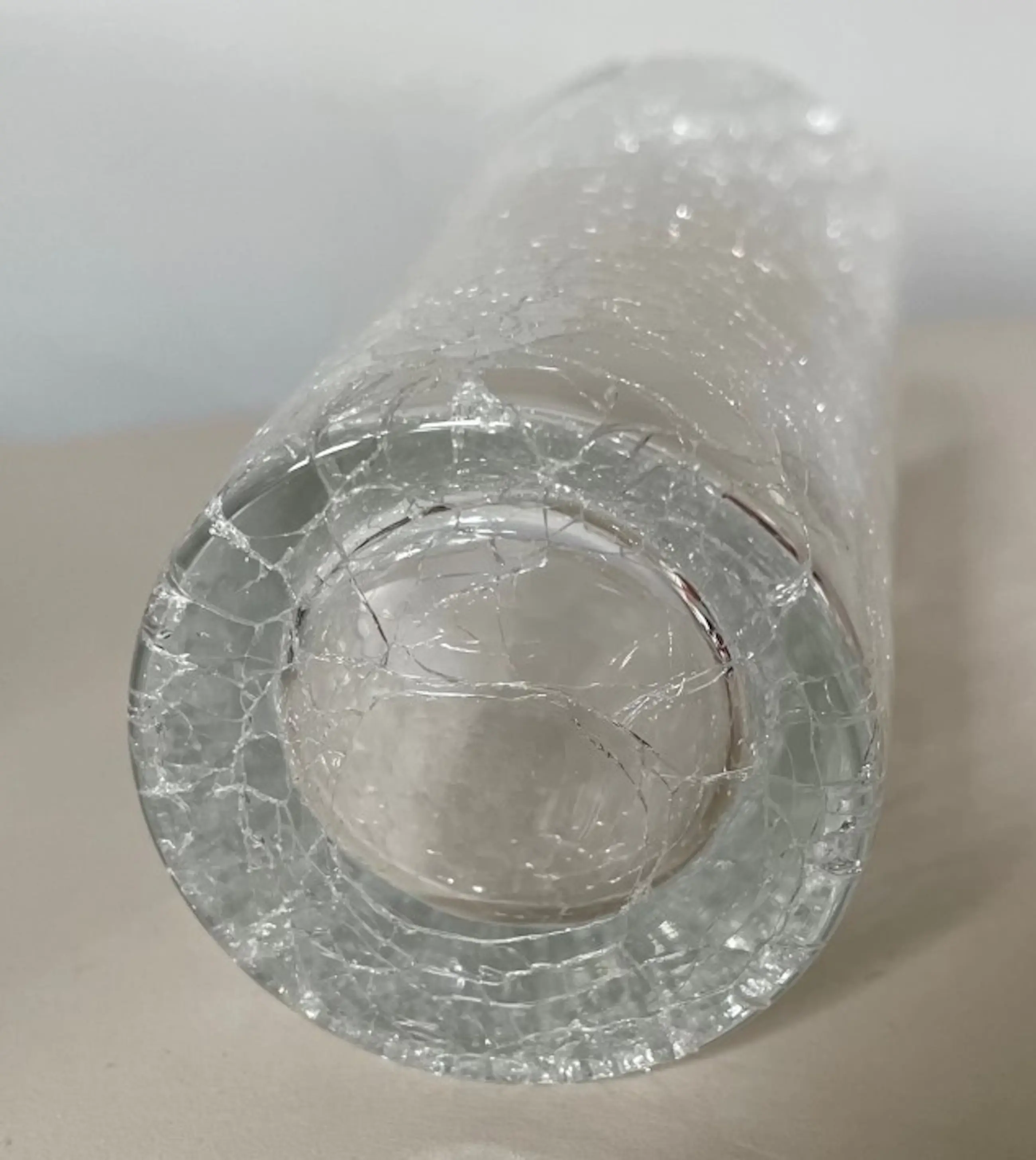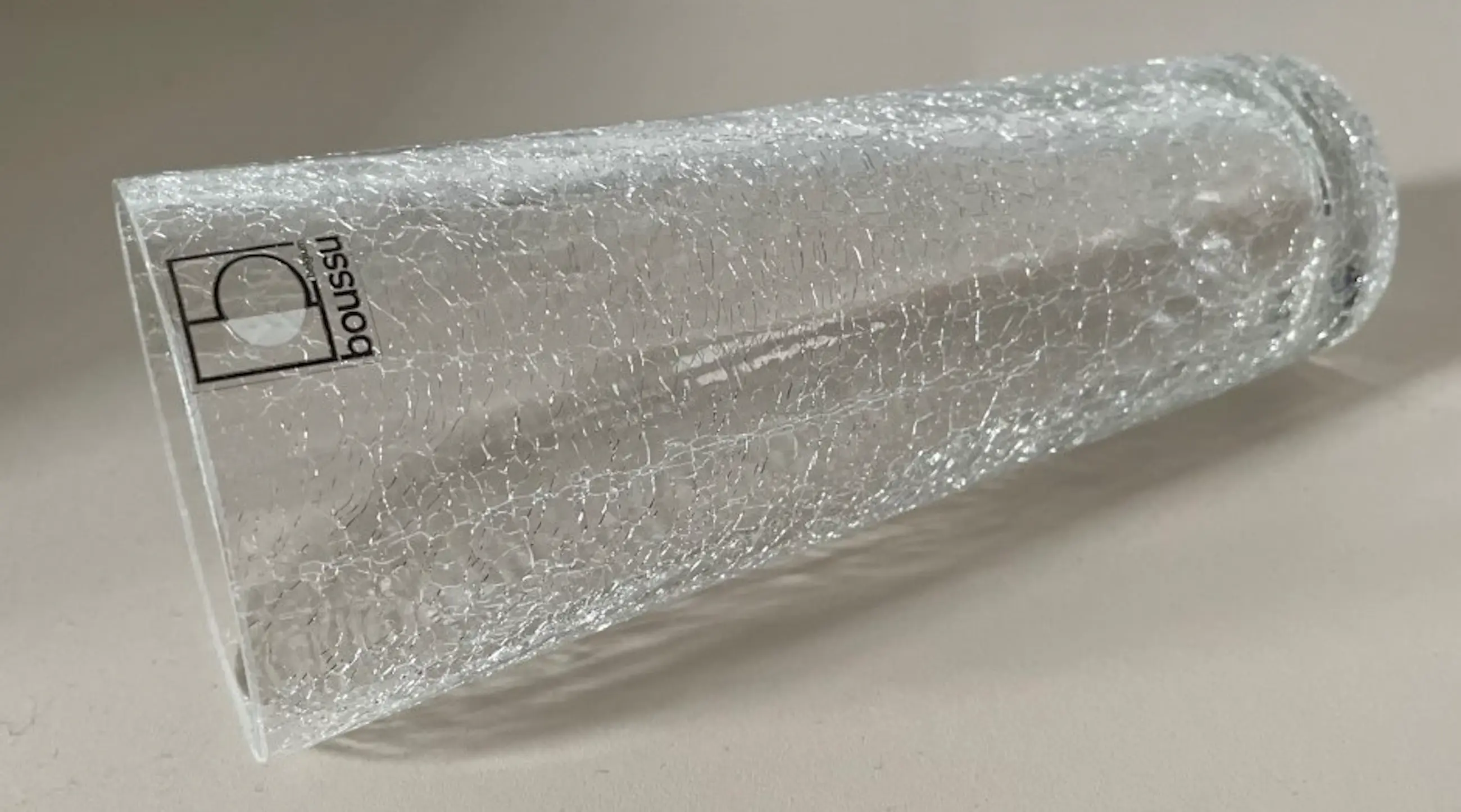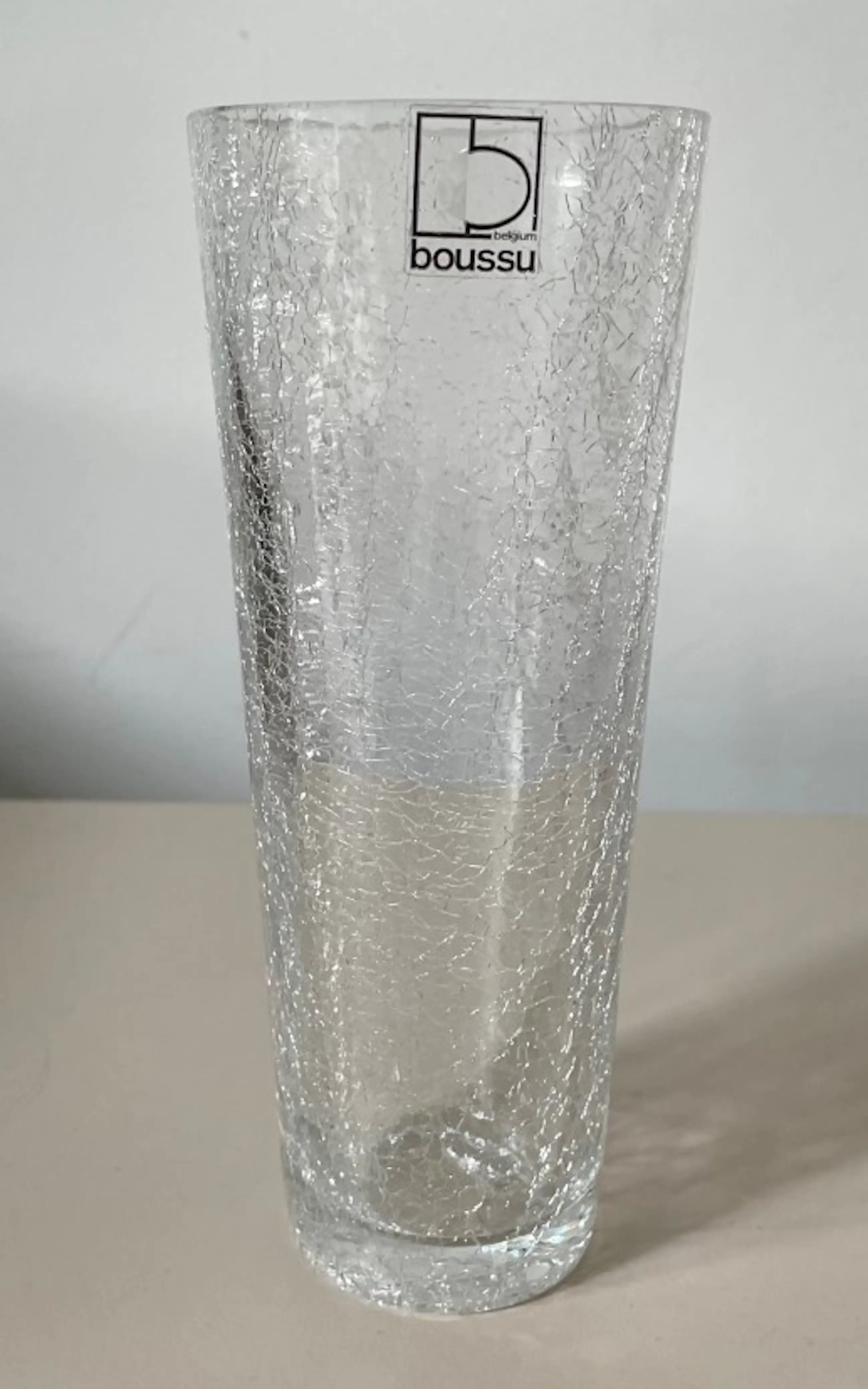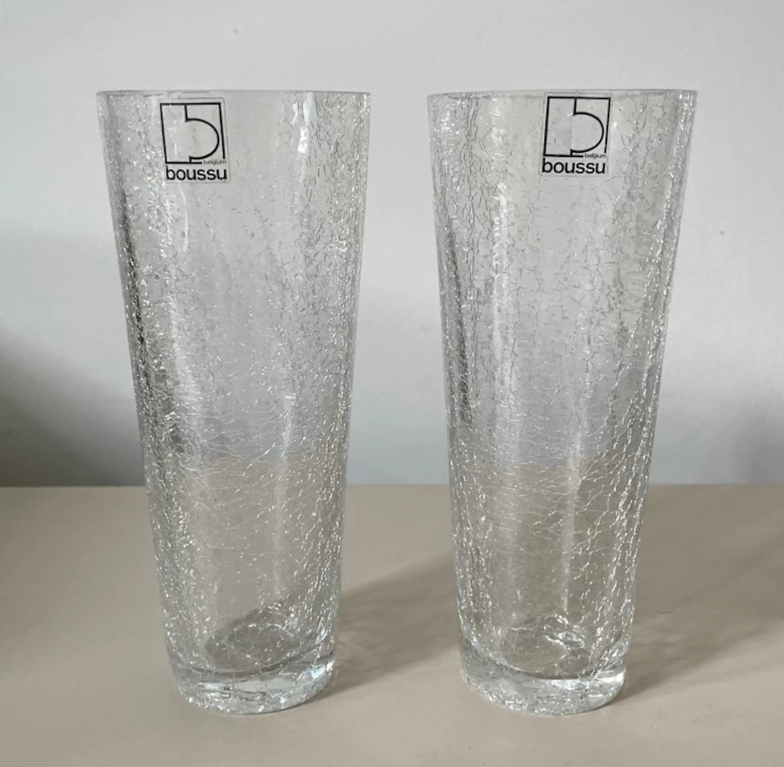Twee kristallen craquele vazen hand gemaakt bij Boussu Cristal. In onbeschadigde conditie en beiden voorzien van een merksticker.