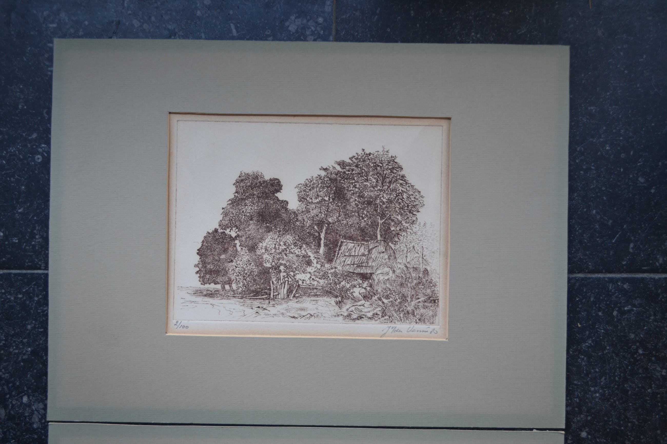 Twee zeer fijne etsen, gemaakt in 1980. Beiden r.o. in potlood gesigneerd (J vd Venne?) en l.o. genummerd. Beeldmaat: 15x20Passe-partout: 29x38 Worden goed verpakt en aangetekend verstuurd.