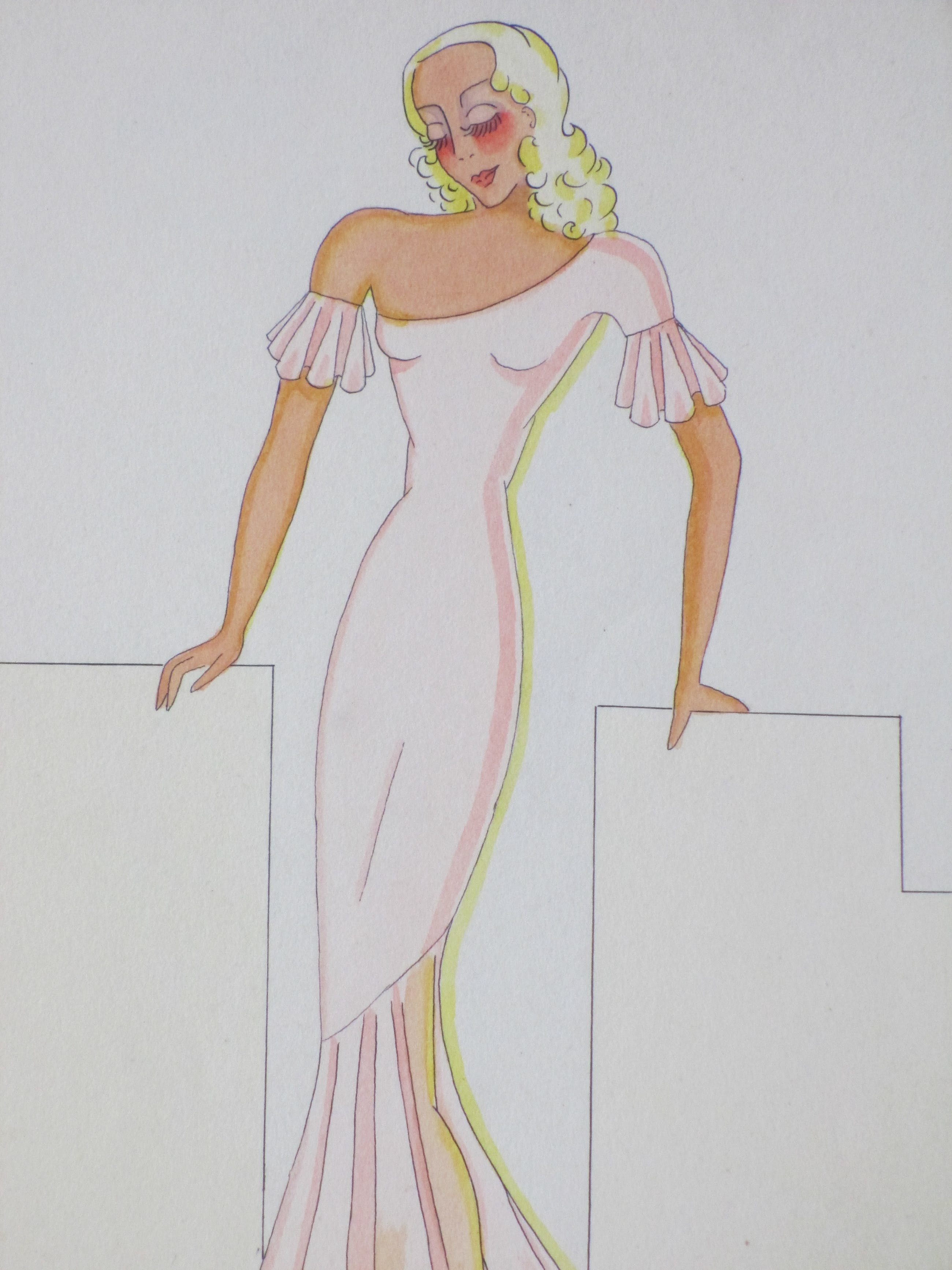 Twee gemengde technieken in de stijl van de Franse Art Deco. Stijlvolle voorstellingen van twee modellen. Losbladig, beeldmaat 23x20 Rechterwerk onduidelijk gesigneerd in potlood, linkerwerk gemonogrammeerd Authenticiteit volledig gegarandeerd