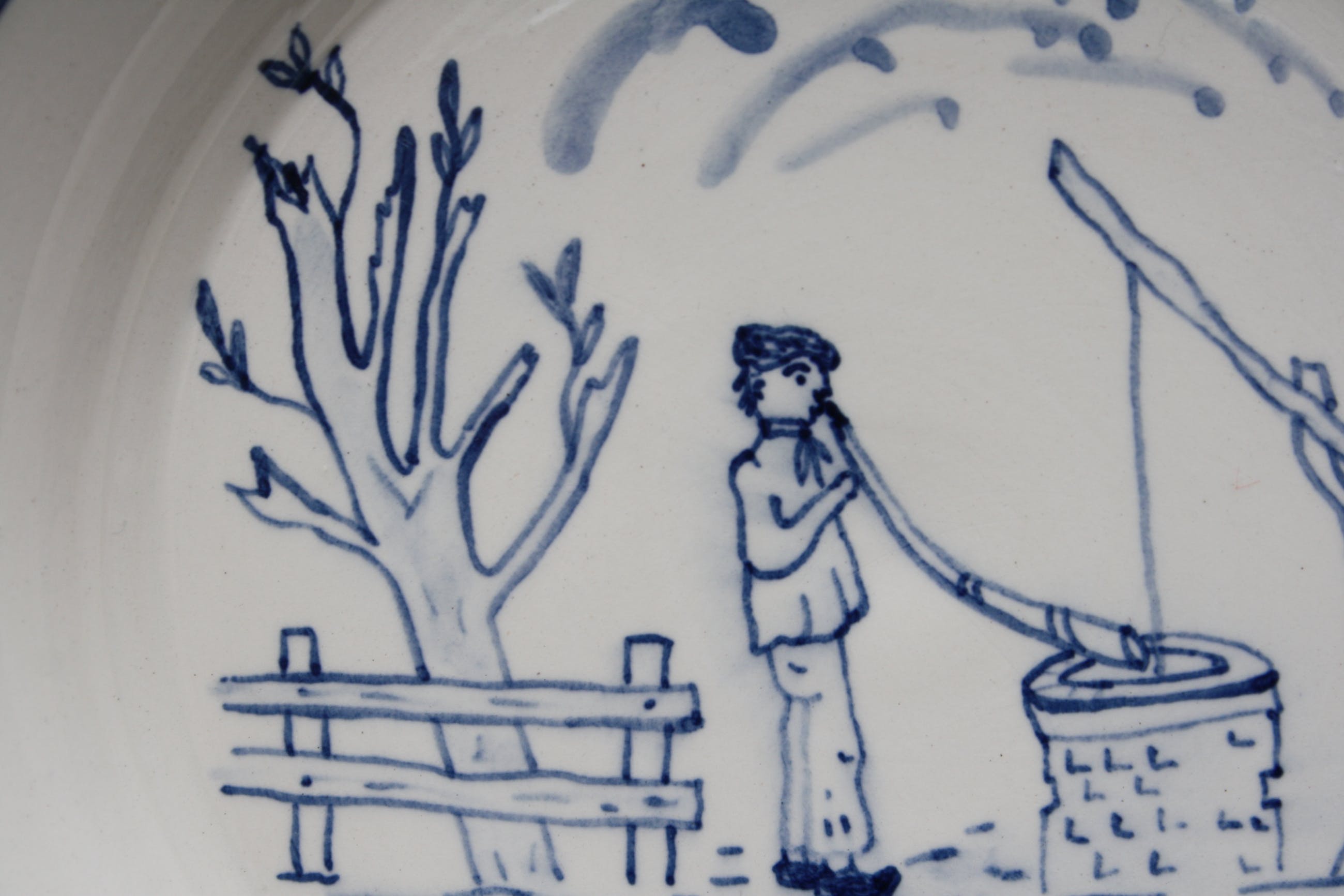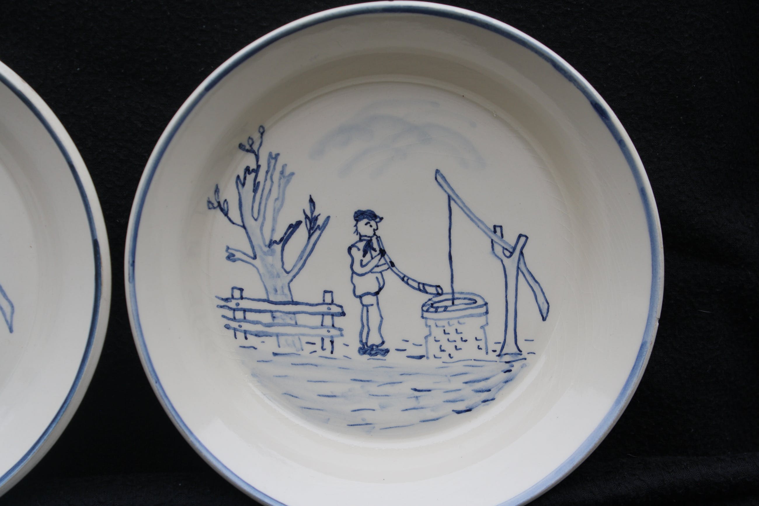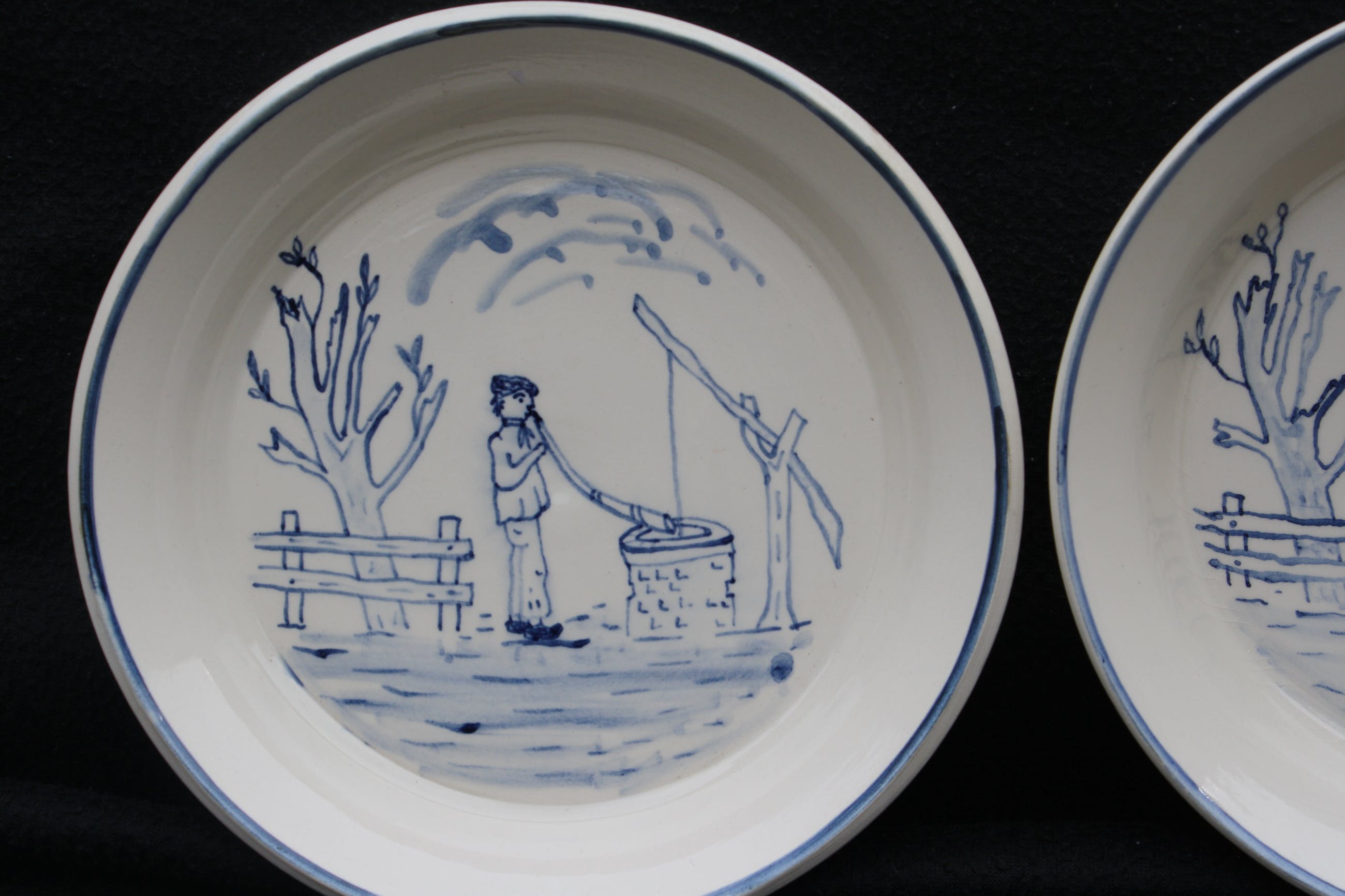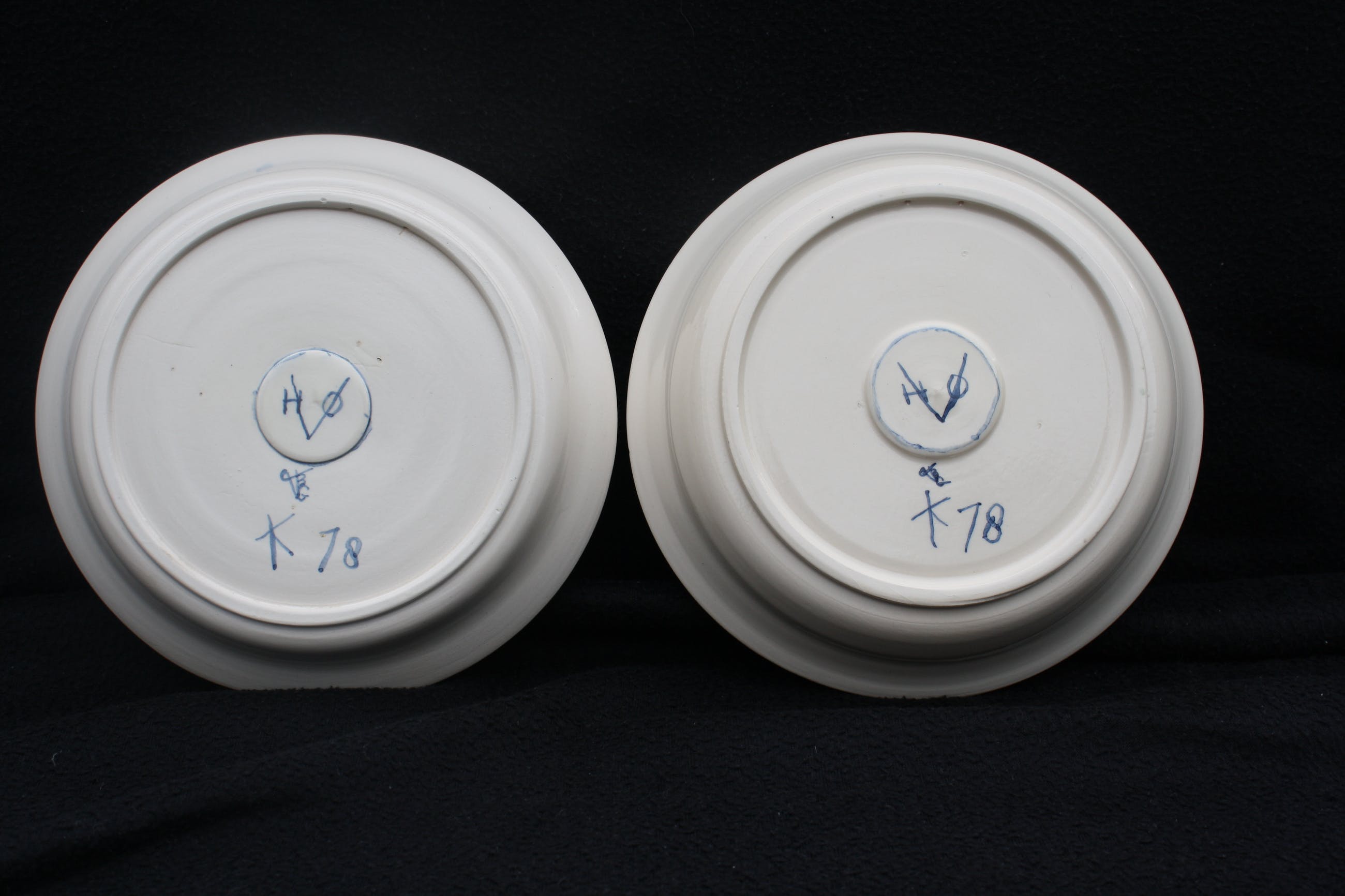Niet of onleesbaar gesigneerd - Twee Prachtige Oud Hollandse Ronde Pap Borden met opstaande rand in Witte en Bla kopen? Bied vanaf 1!