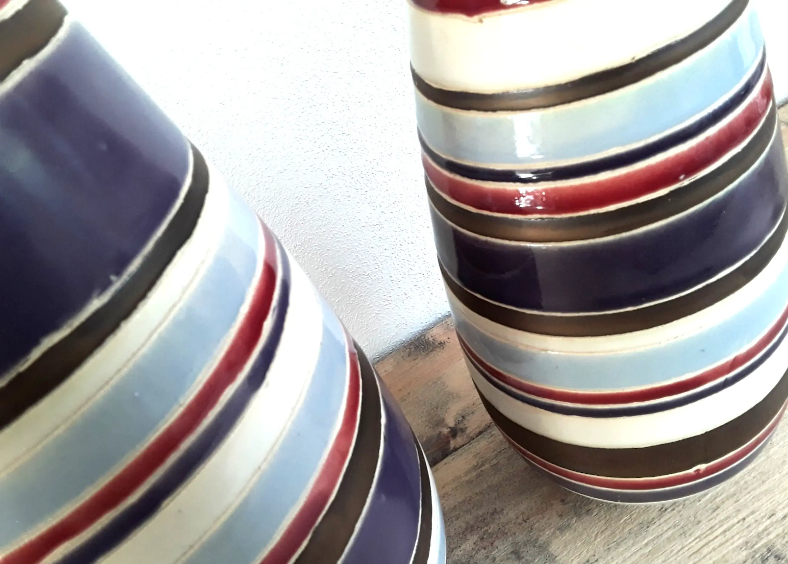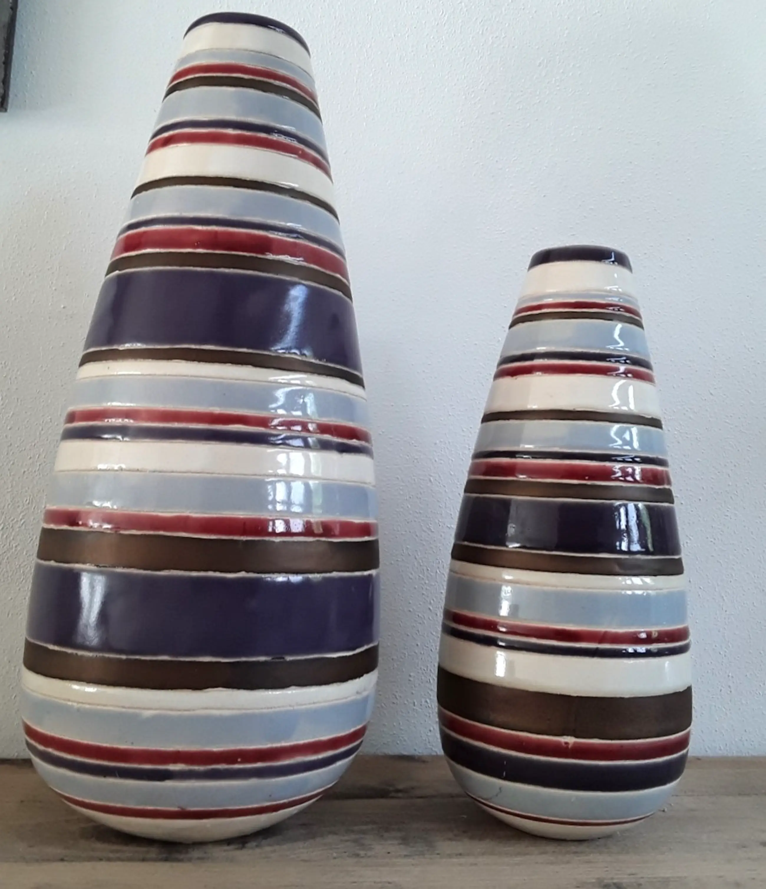Twee unieke vintage kleurrijke design vazen (handwerk).