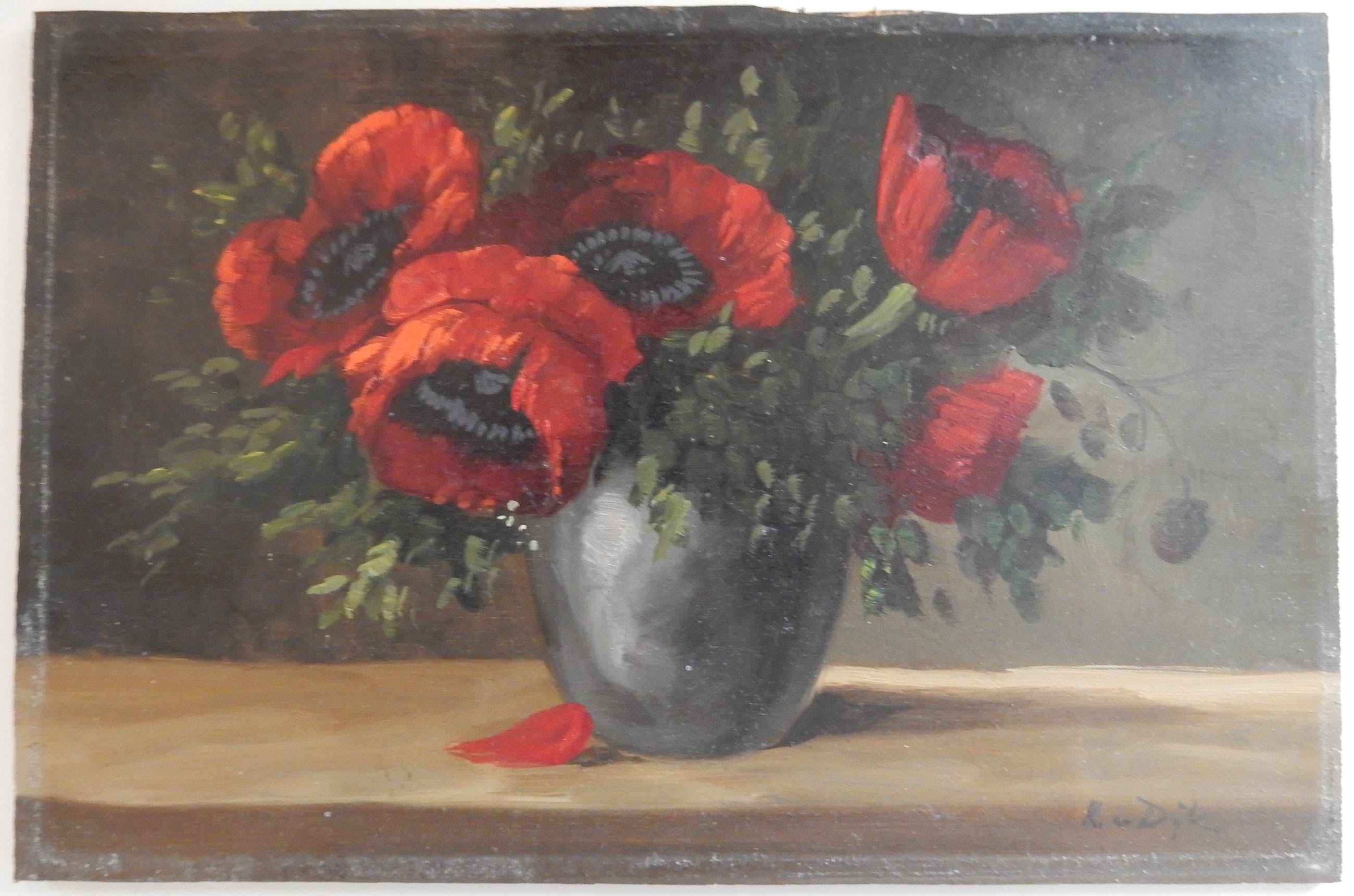 Twee sferische bloemstillevens Vlot geschilderd en beiden gesigneerd rechtsonder. Het ene werk is voor mij onleesbaar en bij het andere lees ik 'Van Dijk'.