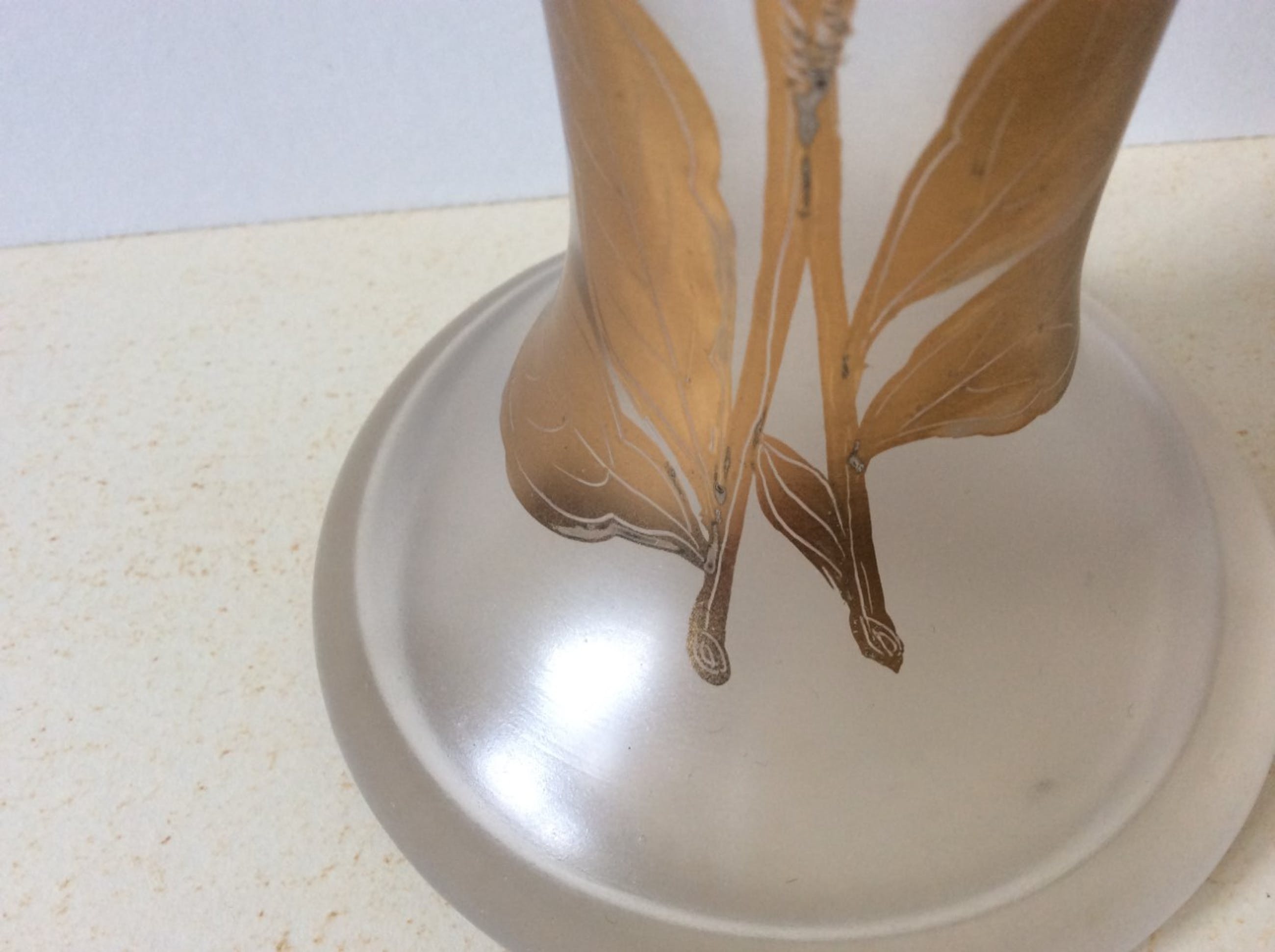Mat glazen vaas met verguld decor van bloemen.