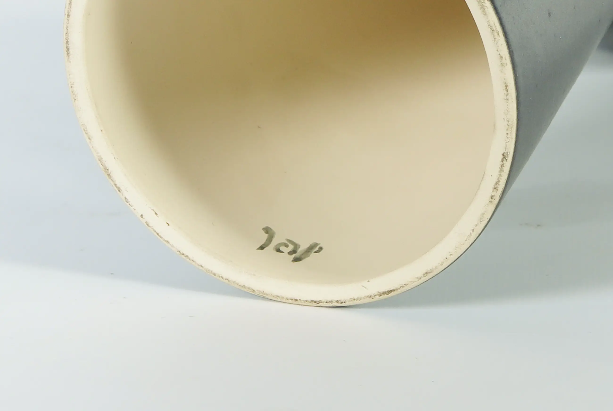 Keramieken vaas van onbekende maker. Vanbinnen gesigneerd met 'J.A.P.'
