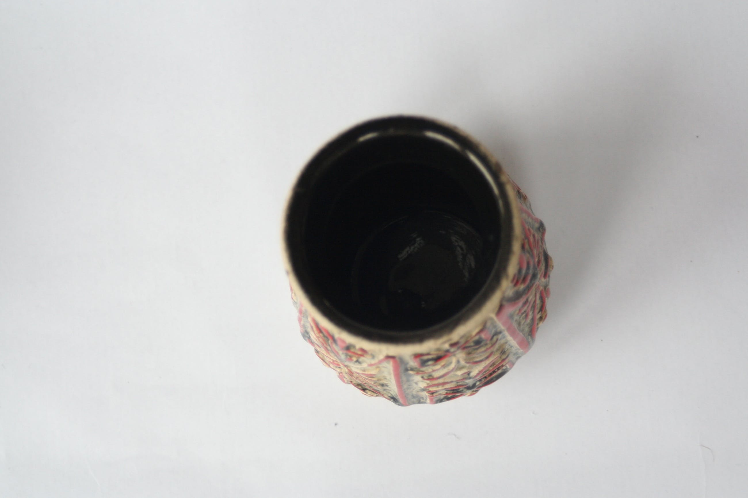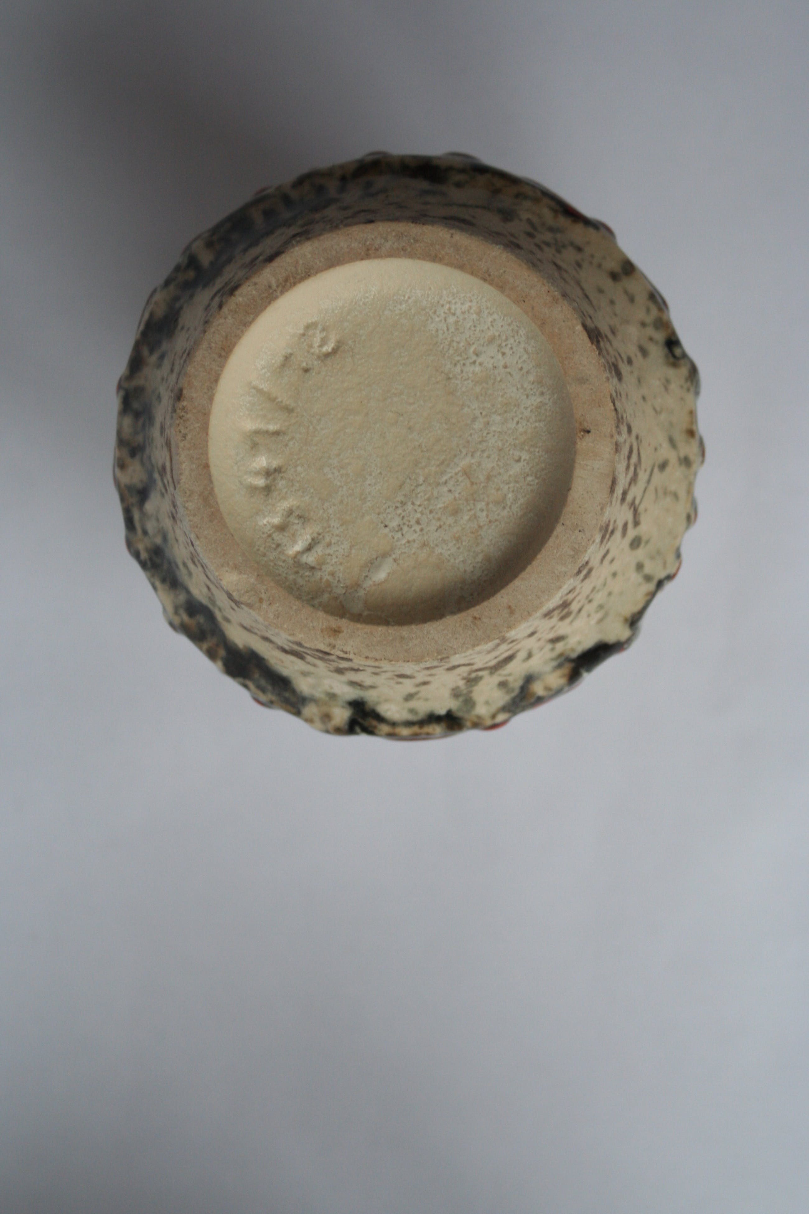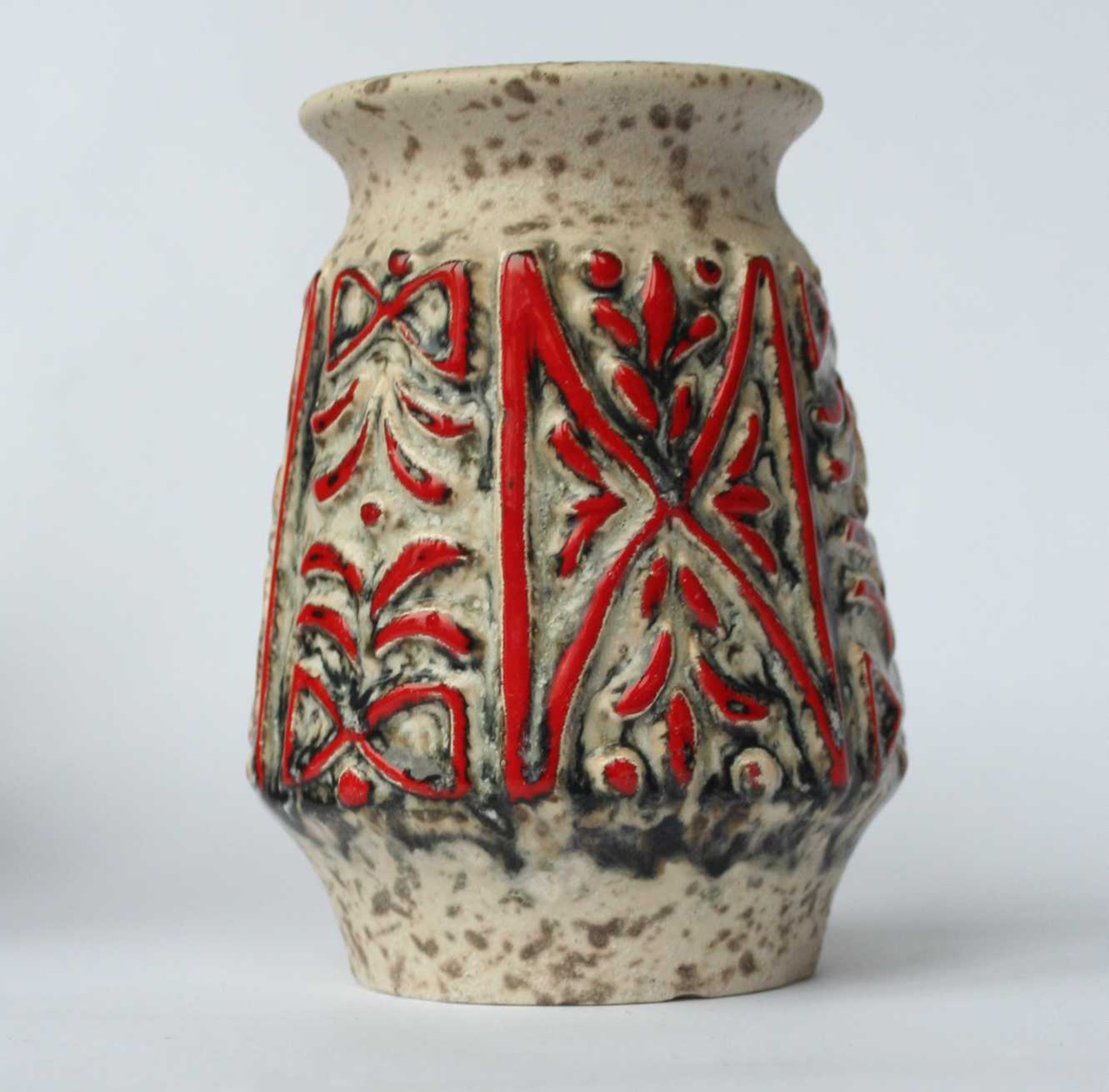Vaasje met reliëf en mooie rode kleur. Germany stijl, naoorlogs. Kan ook Nederlandse studio zijn geweest.