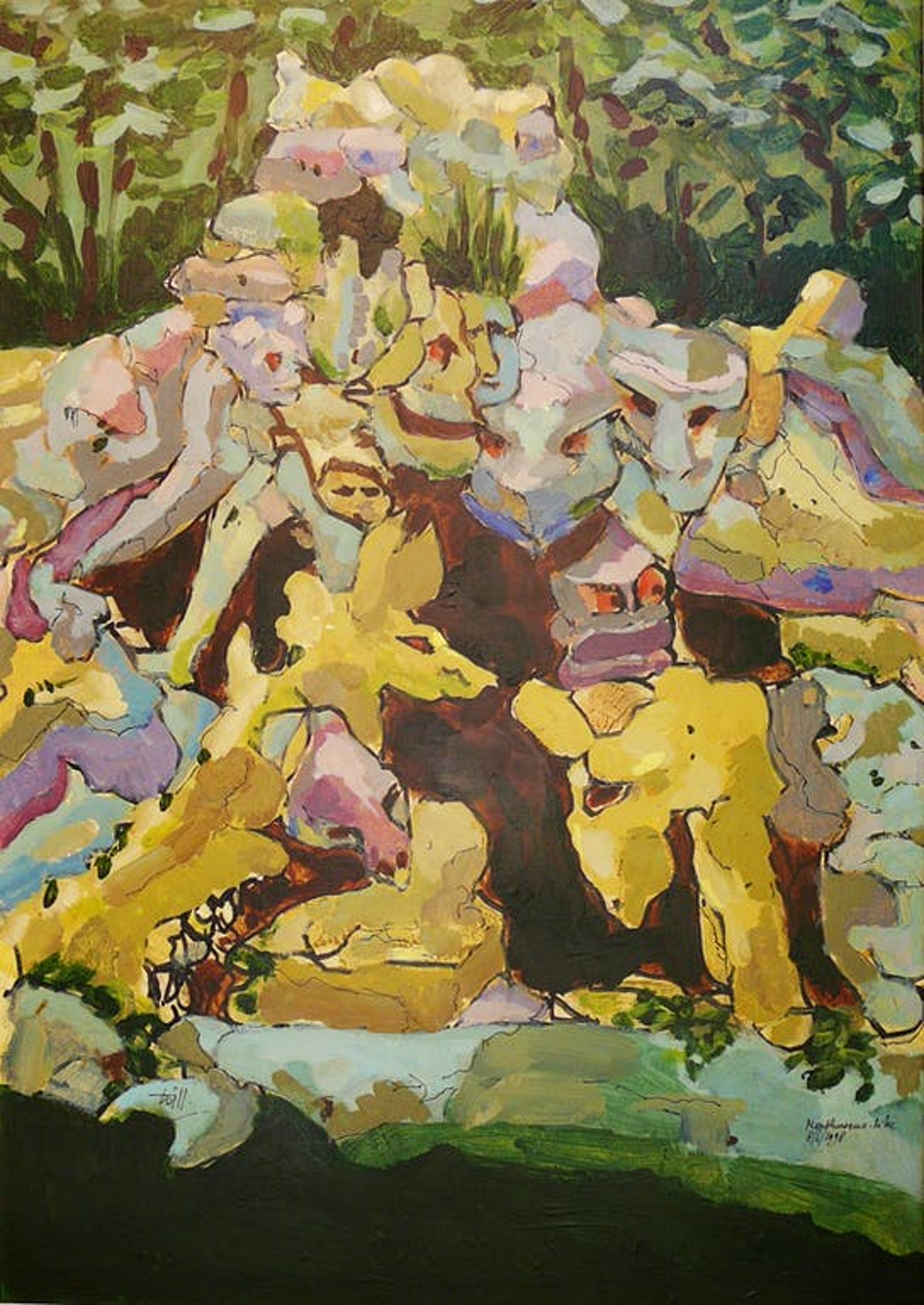 Bizar, groot en kleurrijk en acryl van een mij onbekende kunstenaar, links-onder gesigneerd met 'Will' en gedateerd 1998.