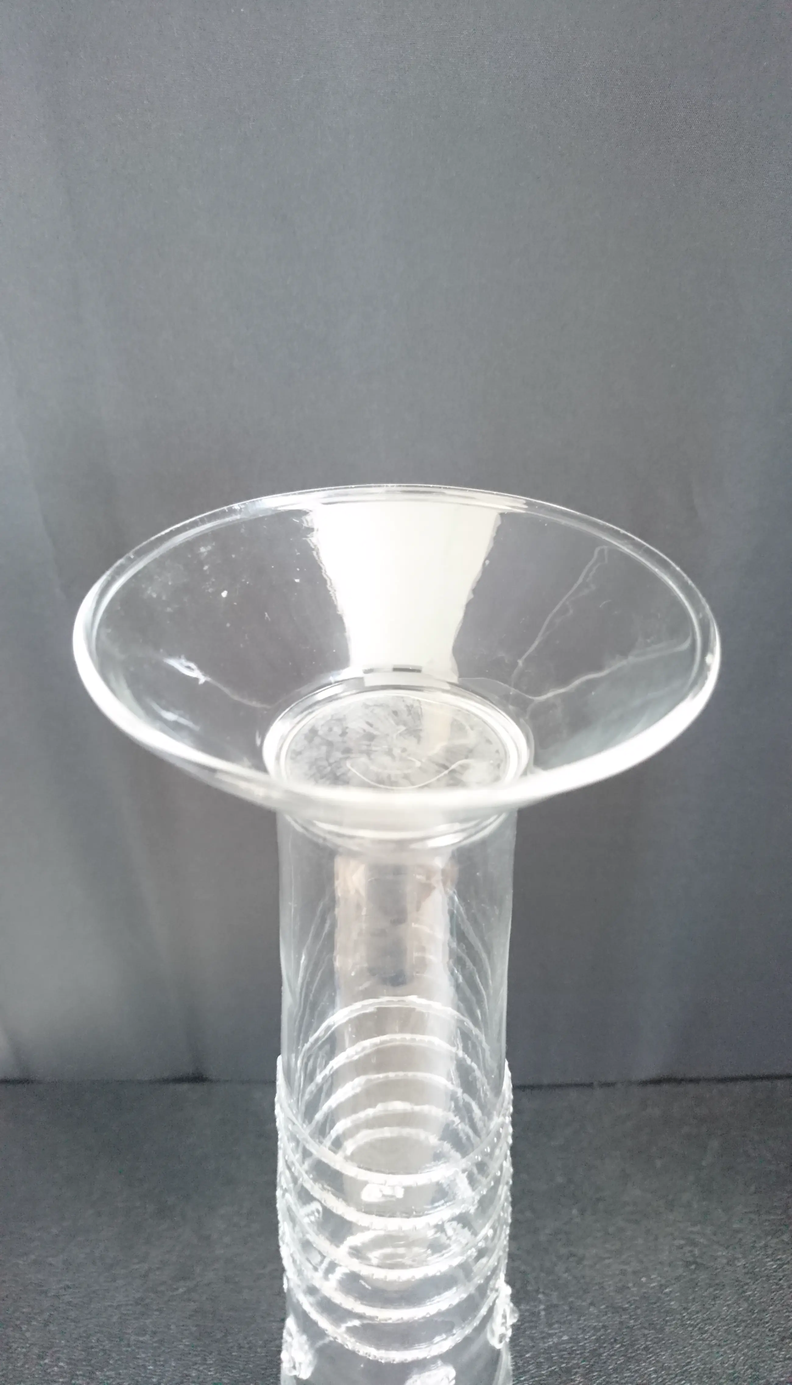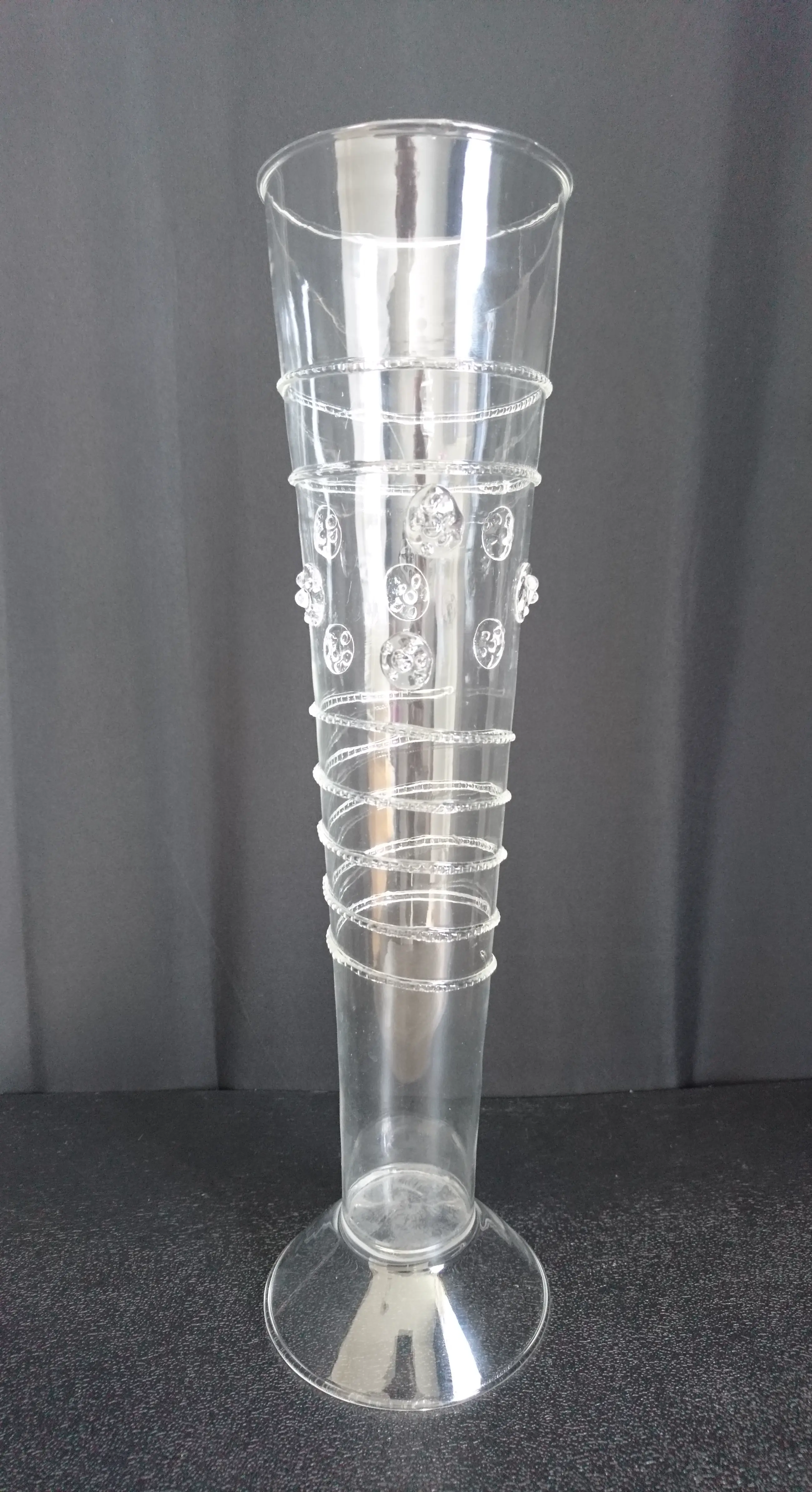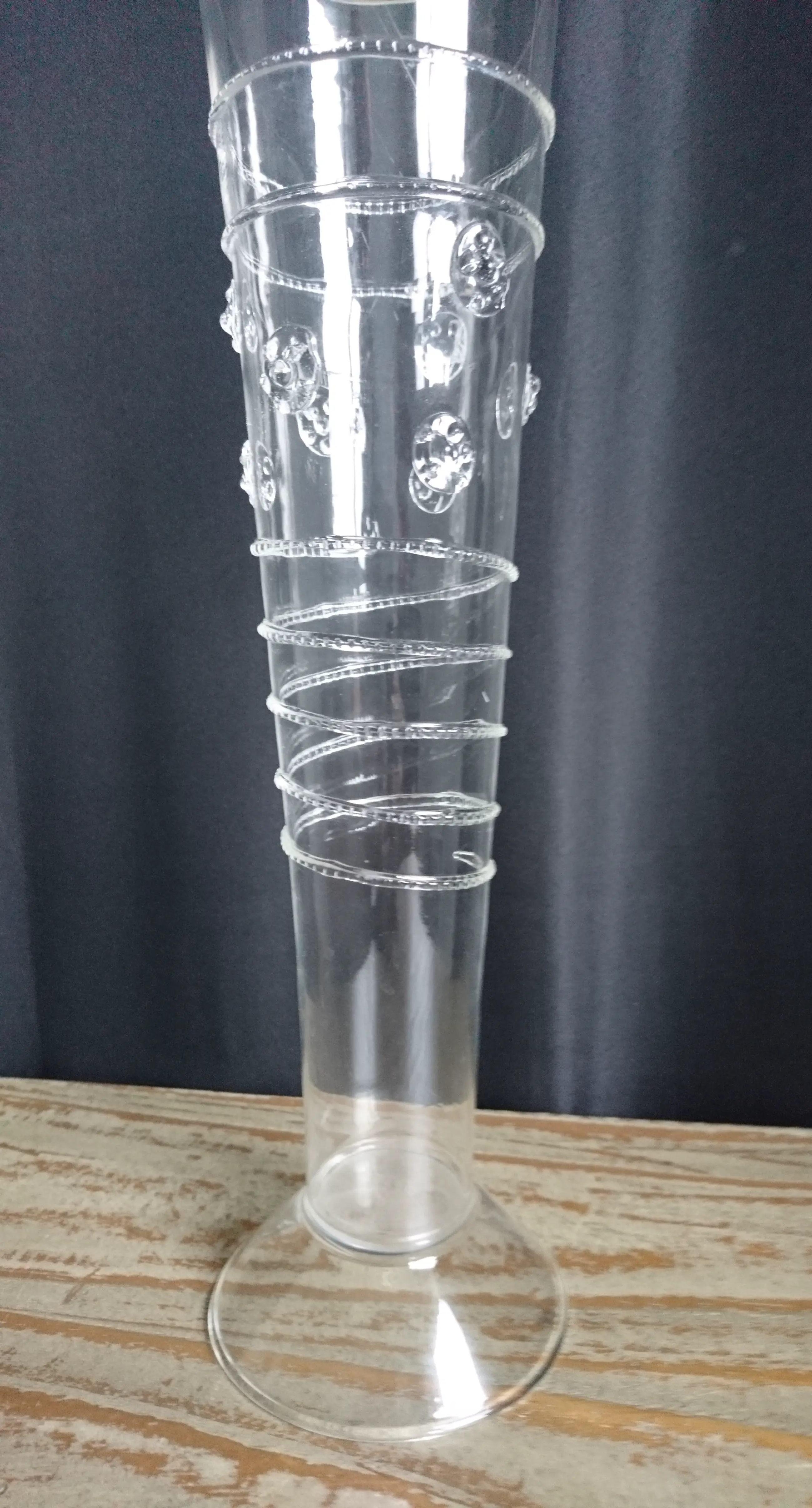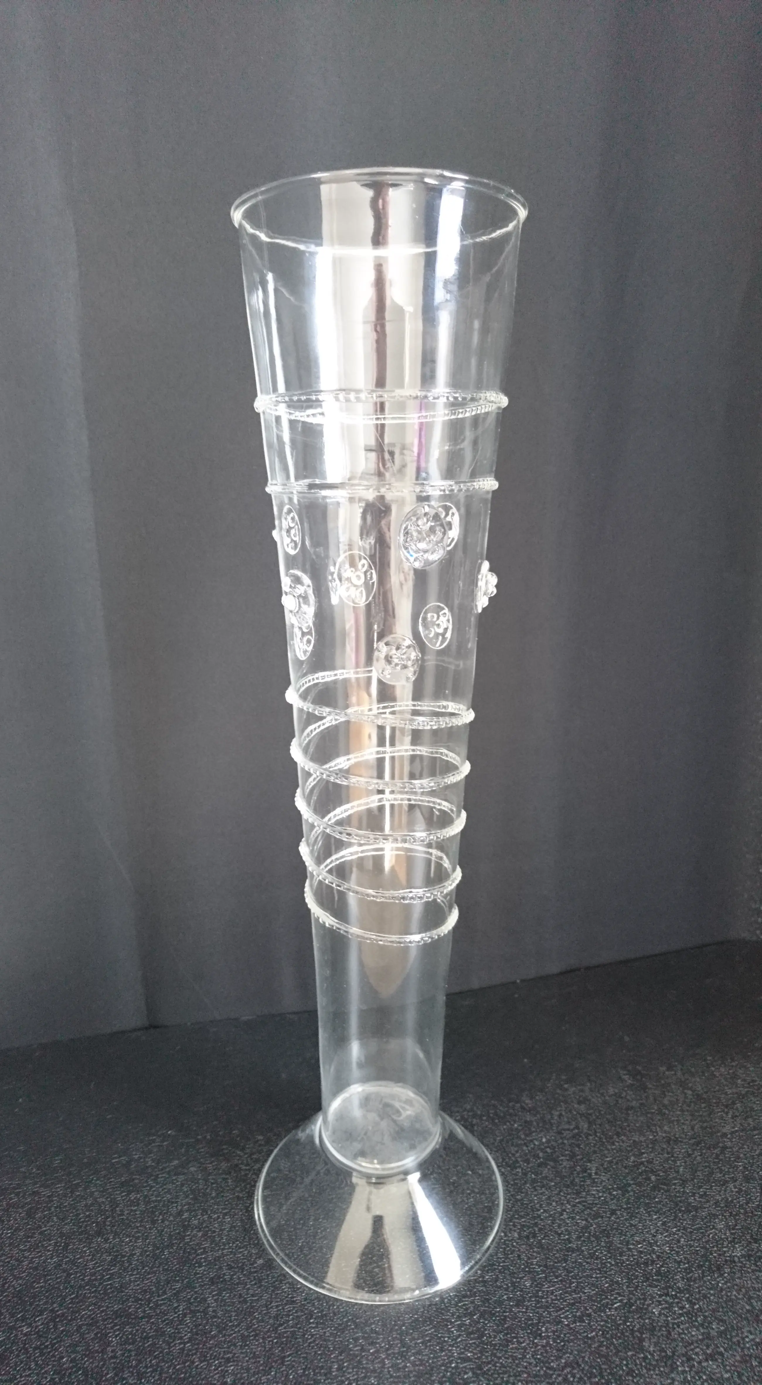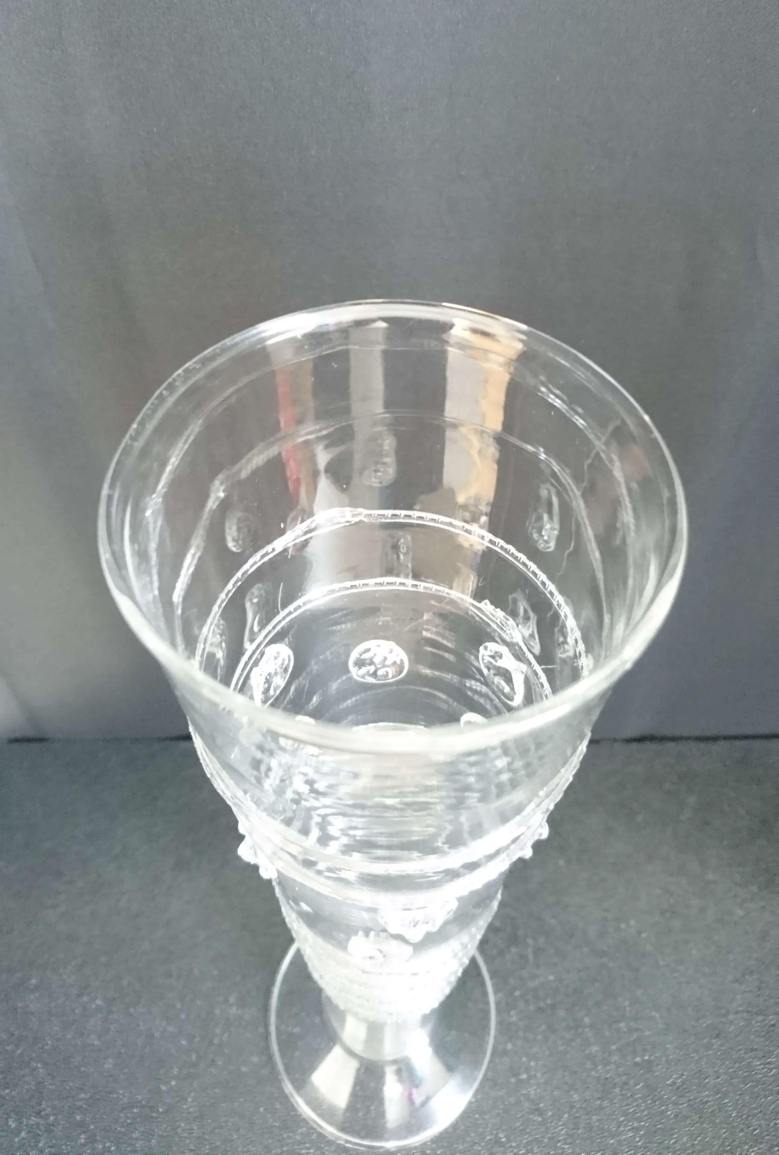 Venetiaans mondgeblazen glazen flute (replica). Het glas is versierd met linten en noppen. Het is zeer licht en dun glaswerk. In goede staat. Wordt beschermd verpakt en verzonden.