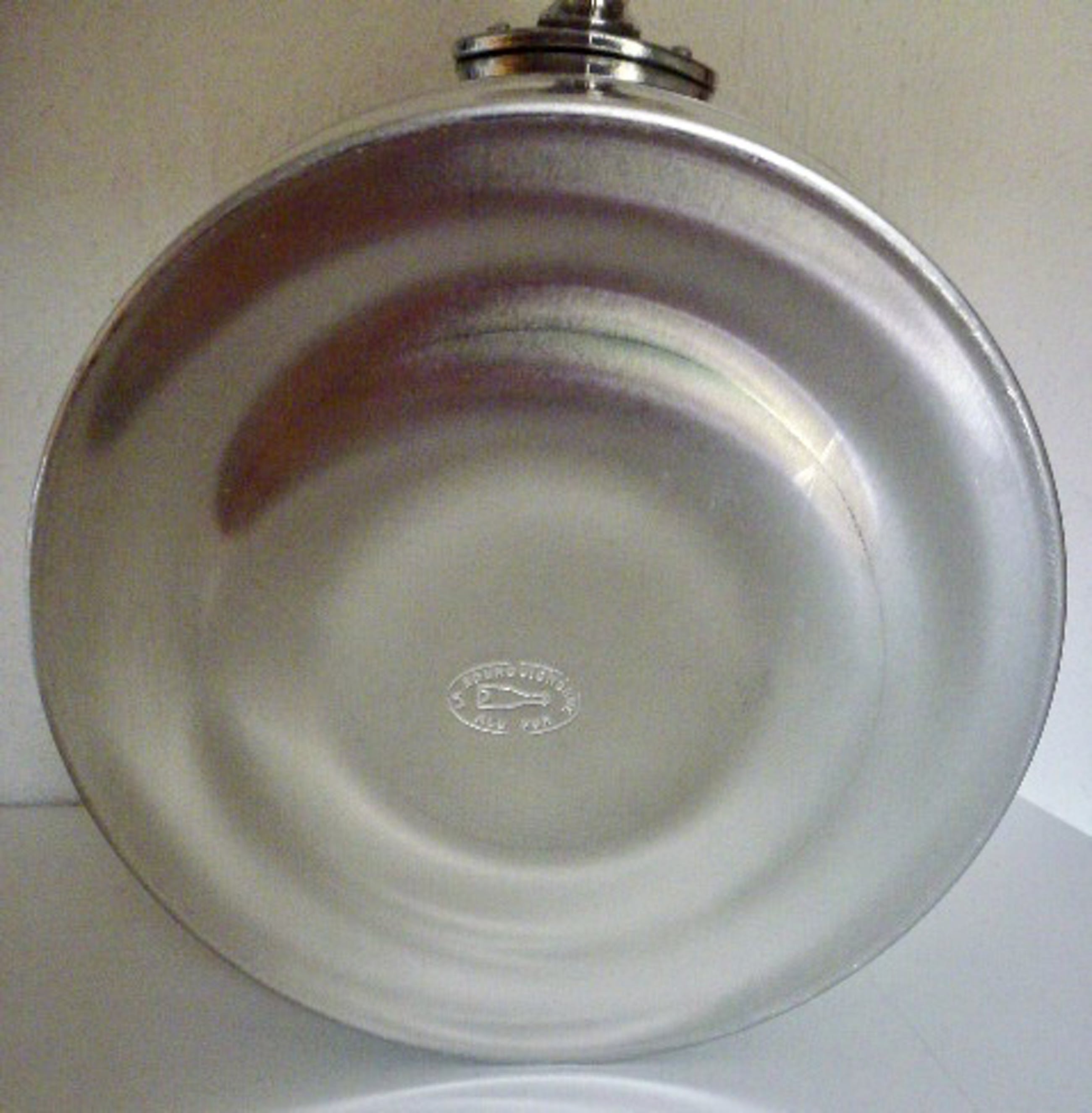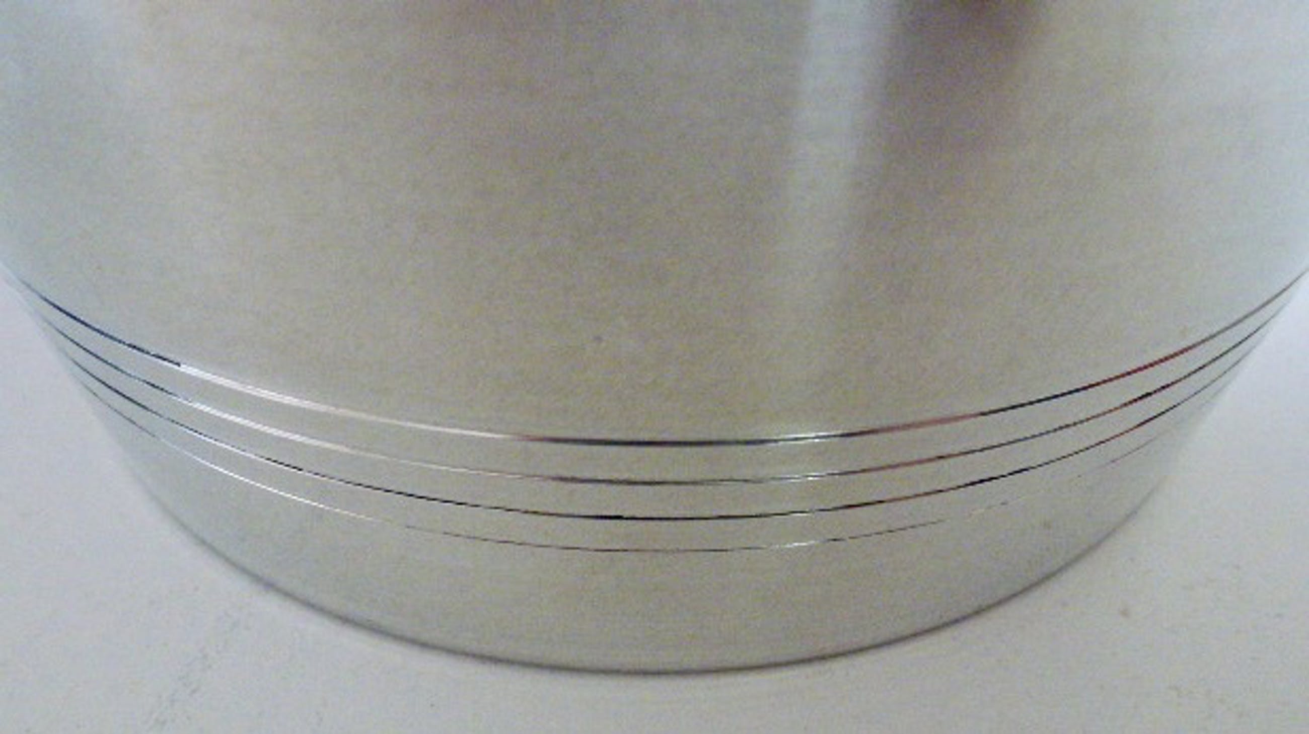 De emmer is in zilverkleurige aluminium-uitvoering, zie markering onderkant en heeft twee ringgrepen.