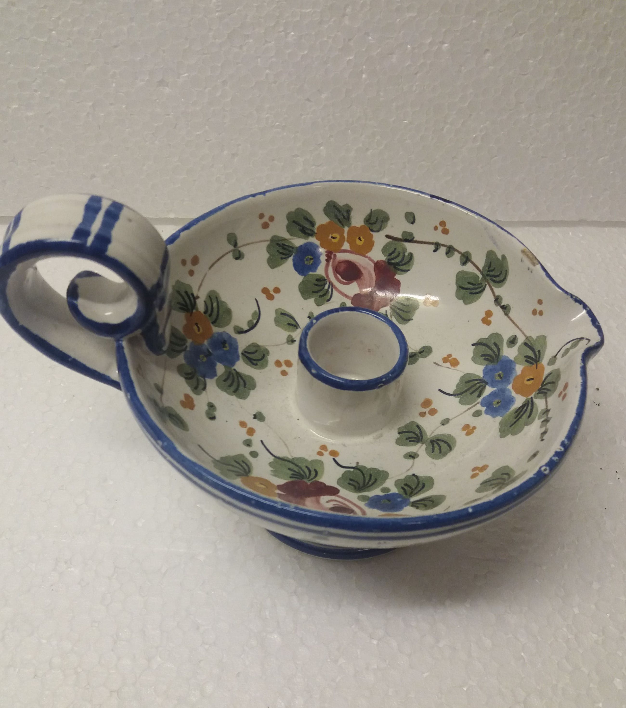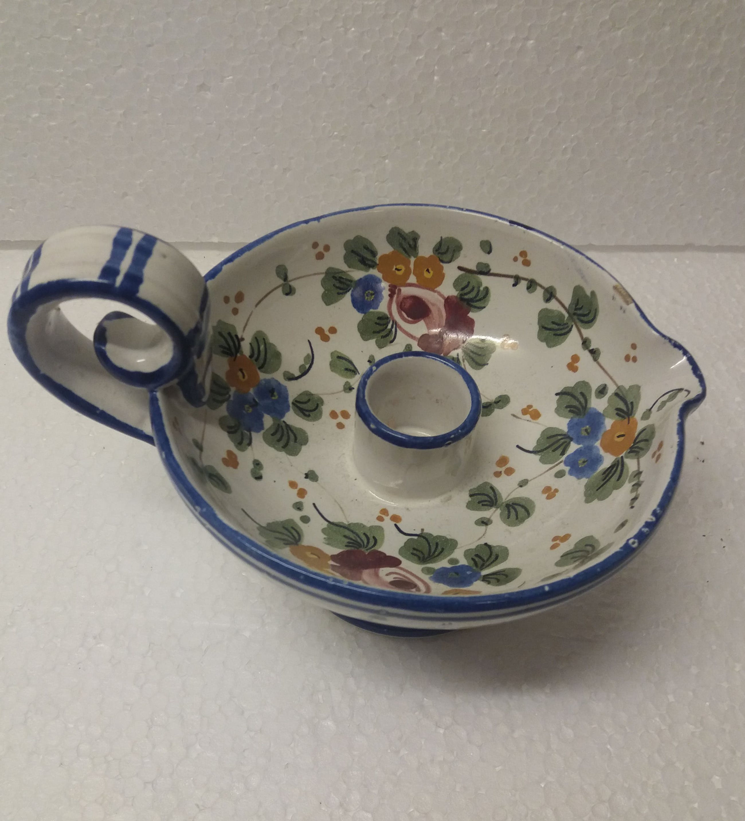 Vintage keramische kandelaar houder met bloemen motief aan de onderkant gesigneerd Castein 957word goed verpakt voor verzending
