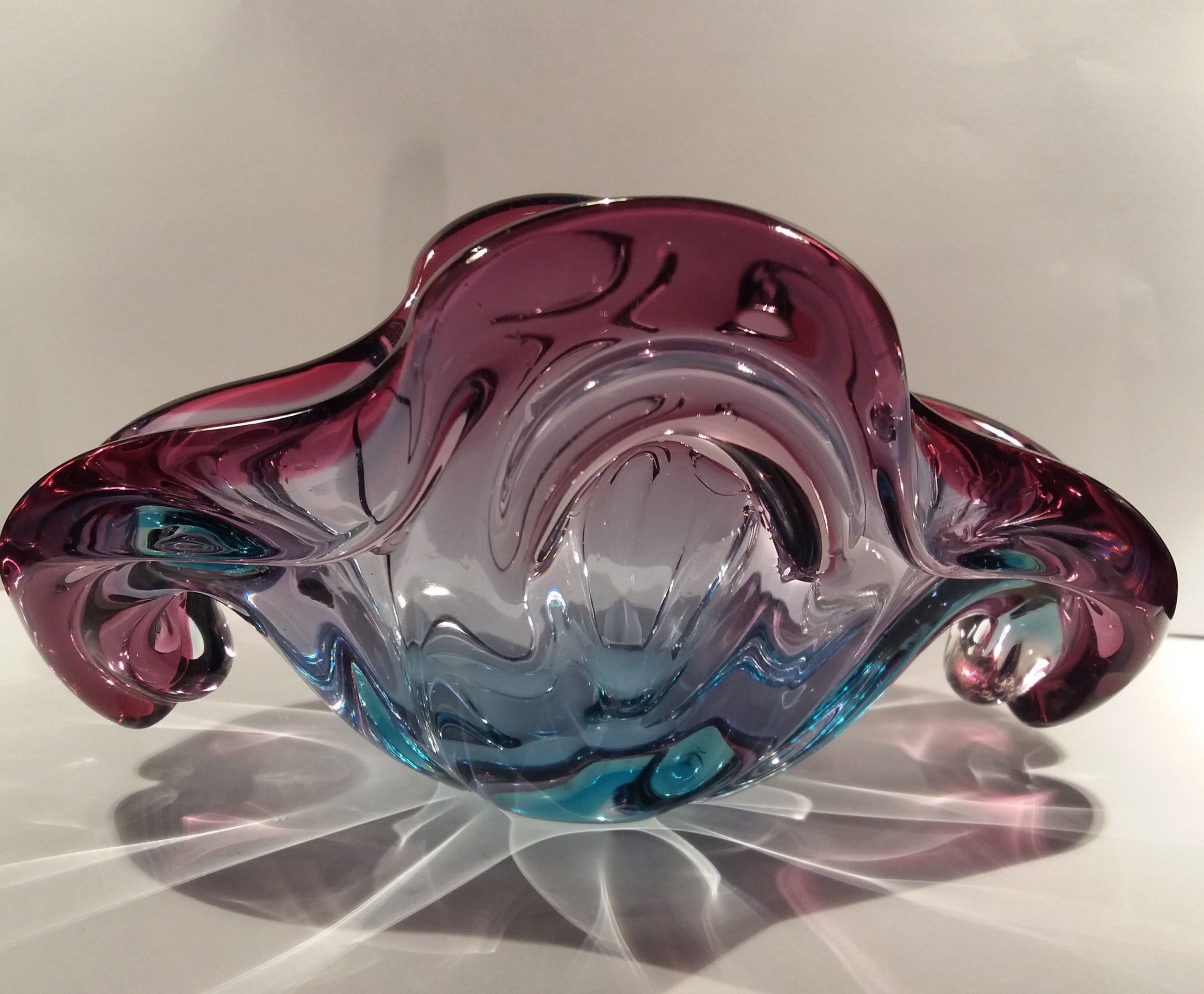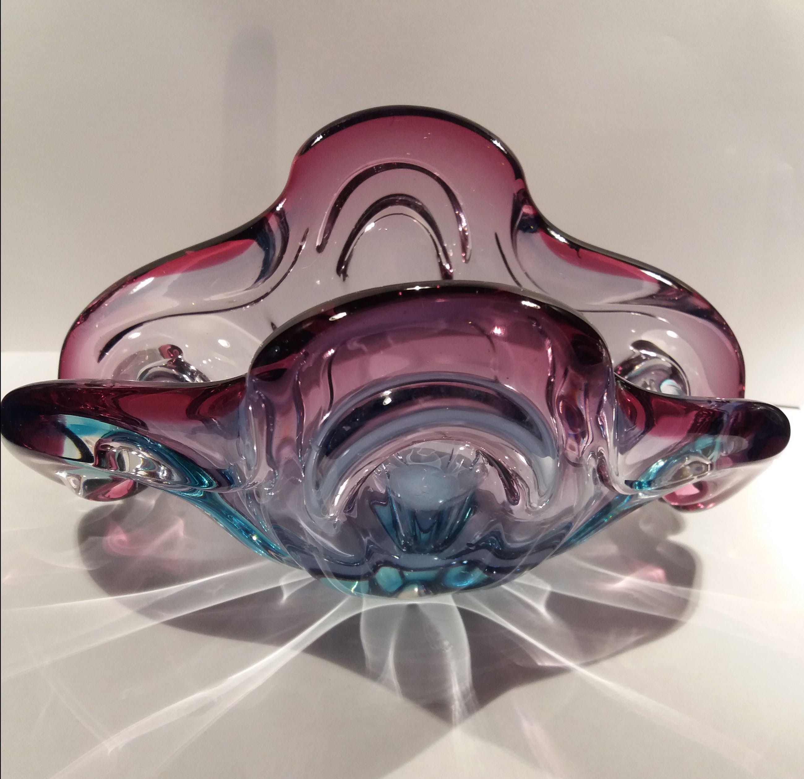 Vintage Murano schaal in de kleuren paars blauw Zie foto,word verzonden met track en trace