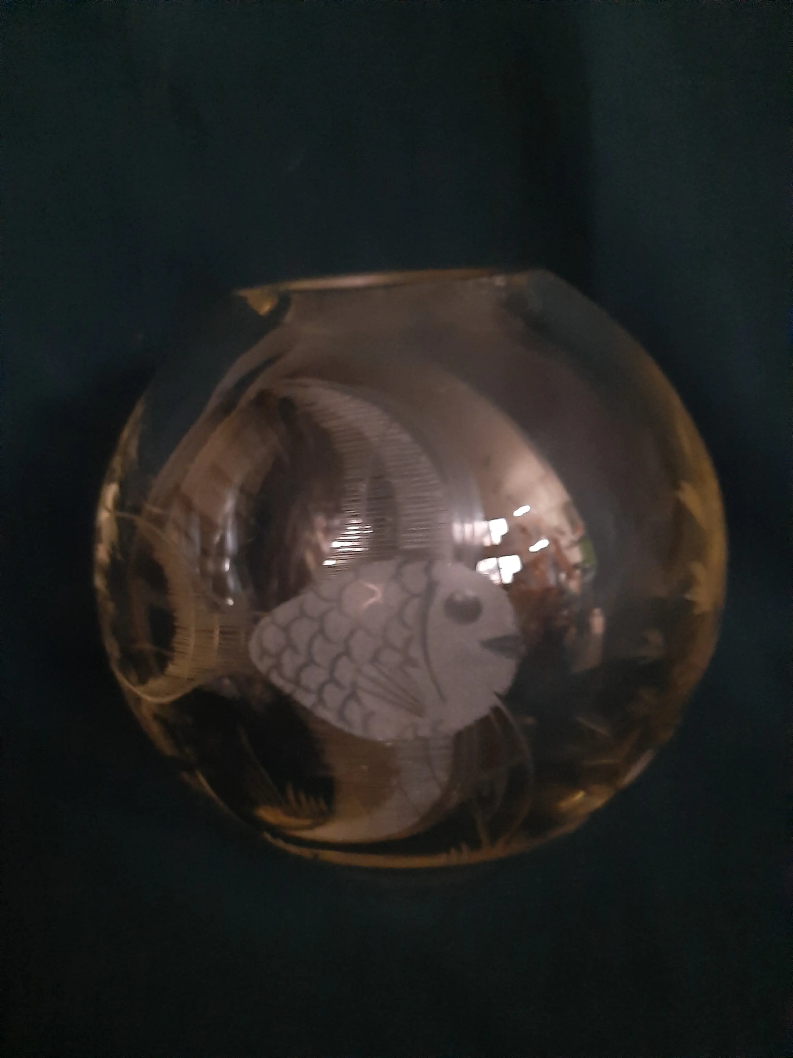 Een oude unieke rijke decoratieve met maanvissen vaas. Dike glas 1,5 cm. Jaren 70.