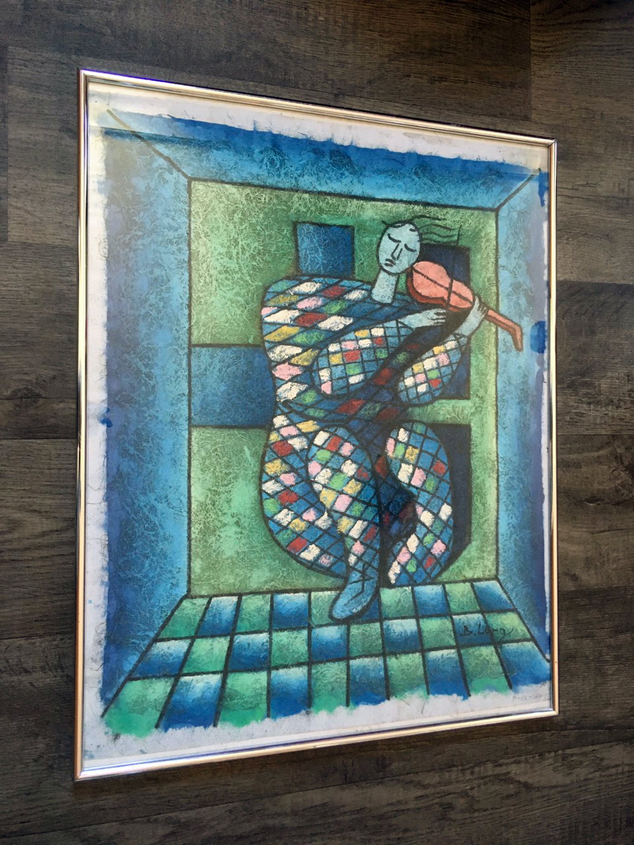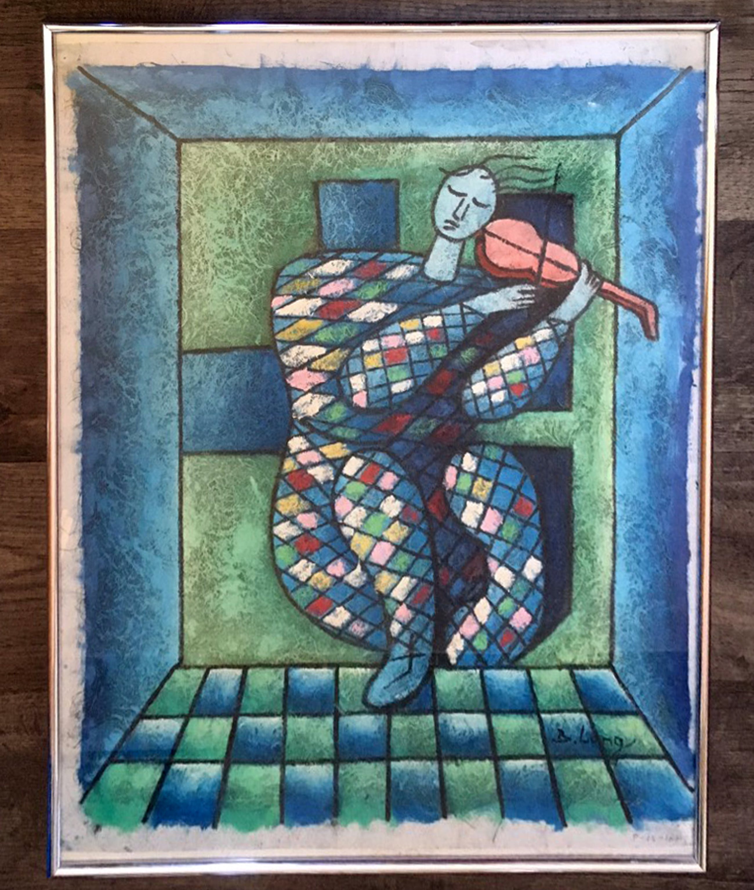 Onbekend - Vioolspelende clown - acryl op geprepareerd linnen, ingelijst - Verkocht