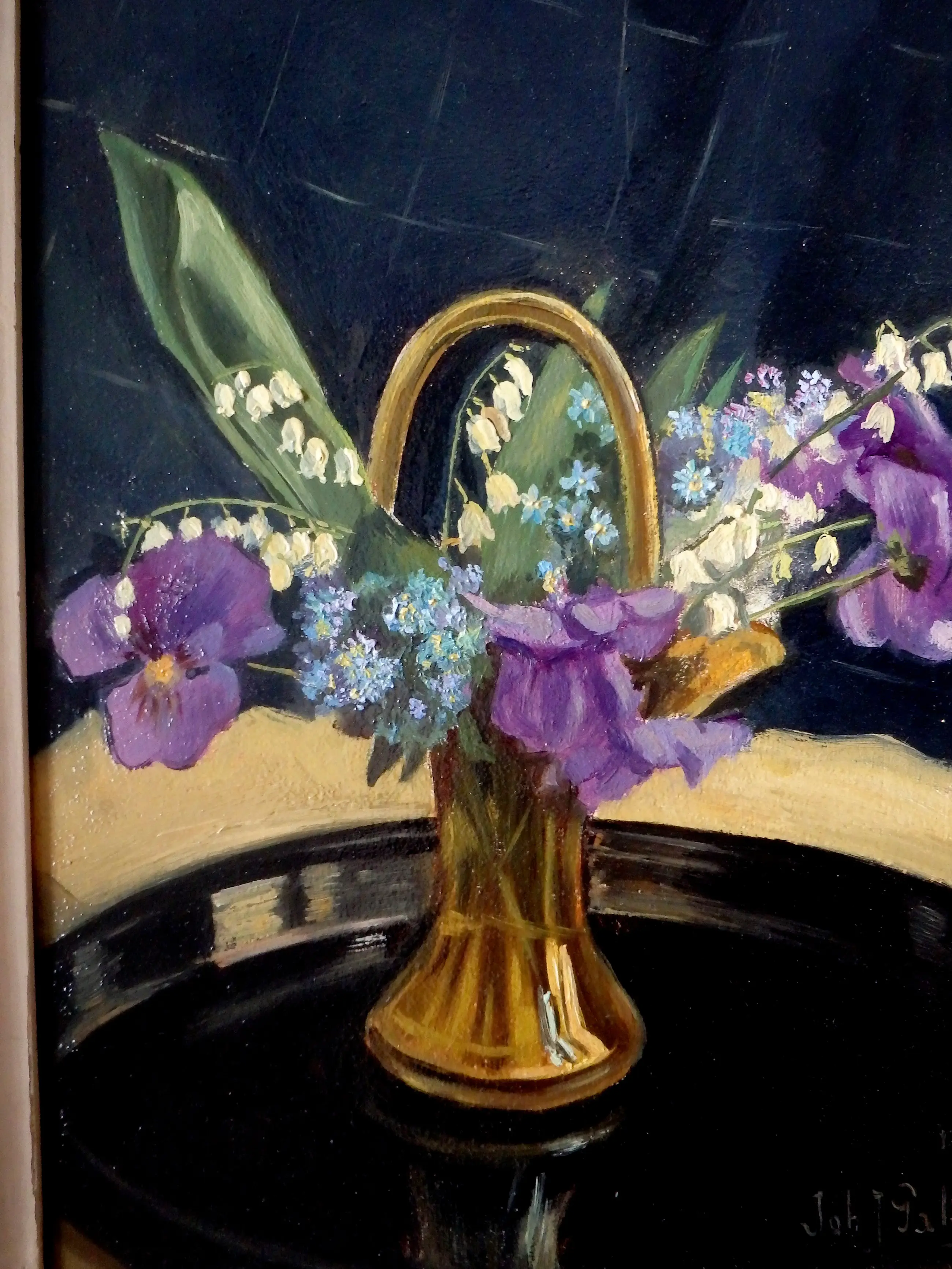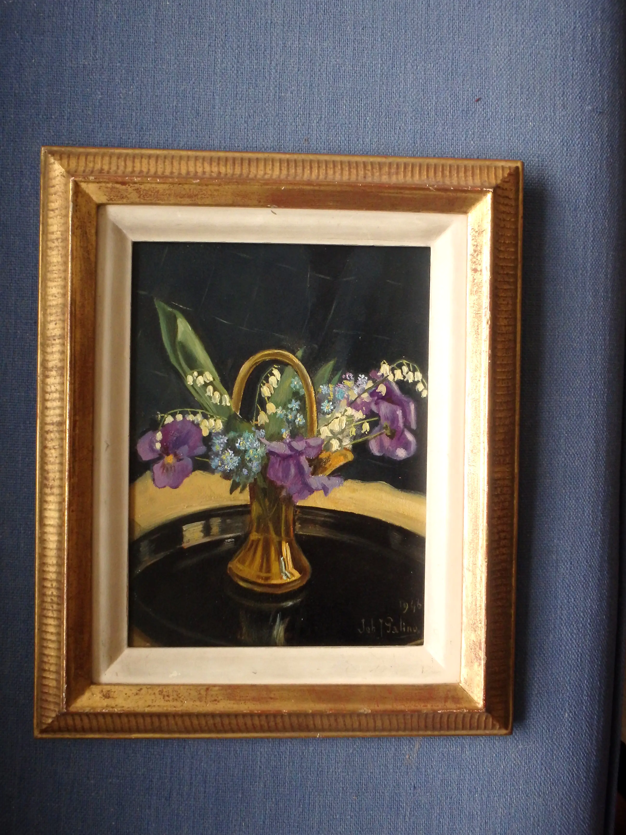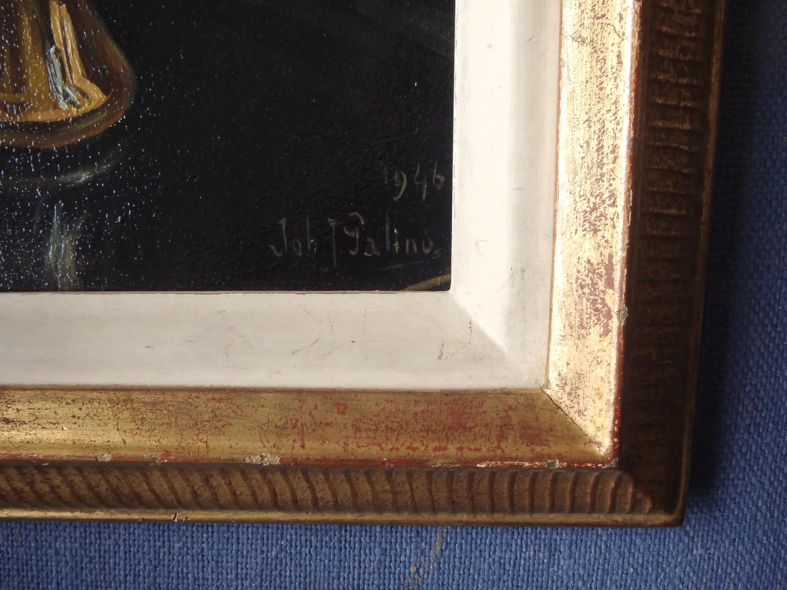 Olieverf op afgeschuind paneel 24x18, rechtsonder gesigneerd Joh.J. Galino en gedateerd 1946, in mooi galerielijstje.