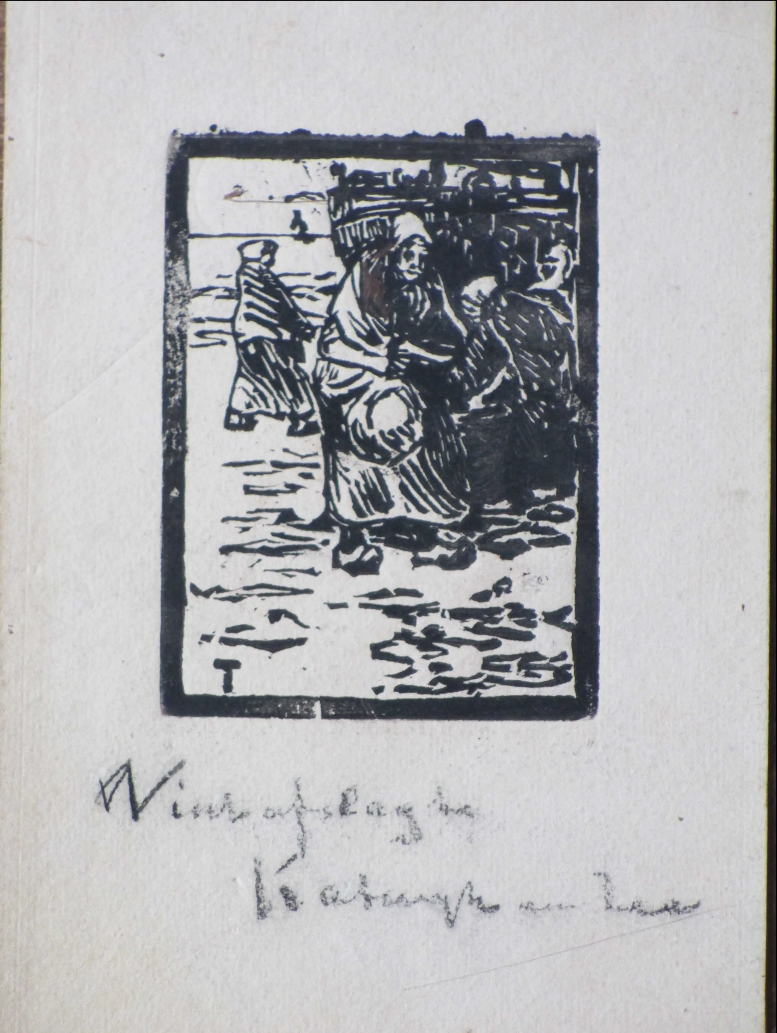 Niet of onleesbaar gesigneerd - Vischafslag te Katwijk aan Zee - Houtsnede kopen? Bied vanaf 1!