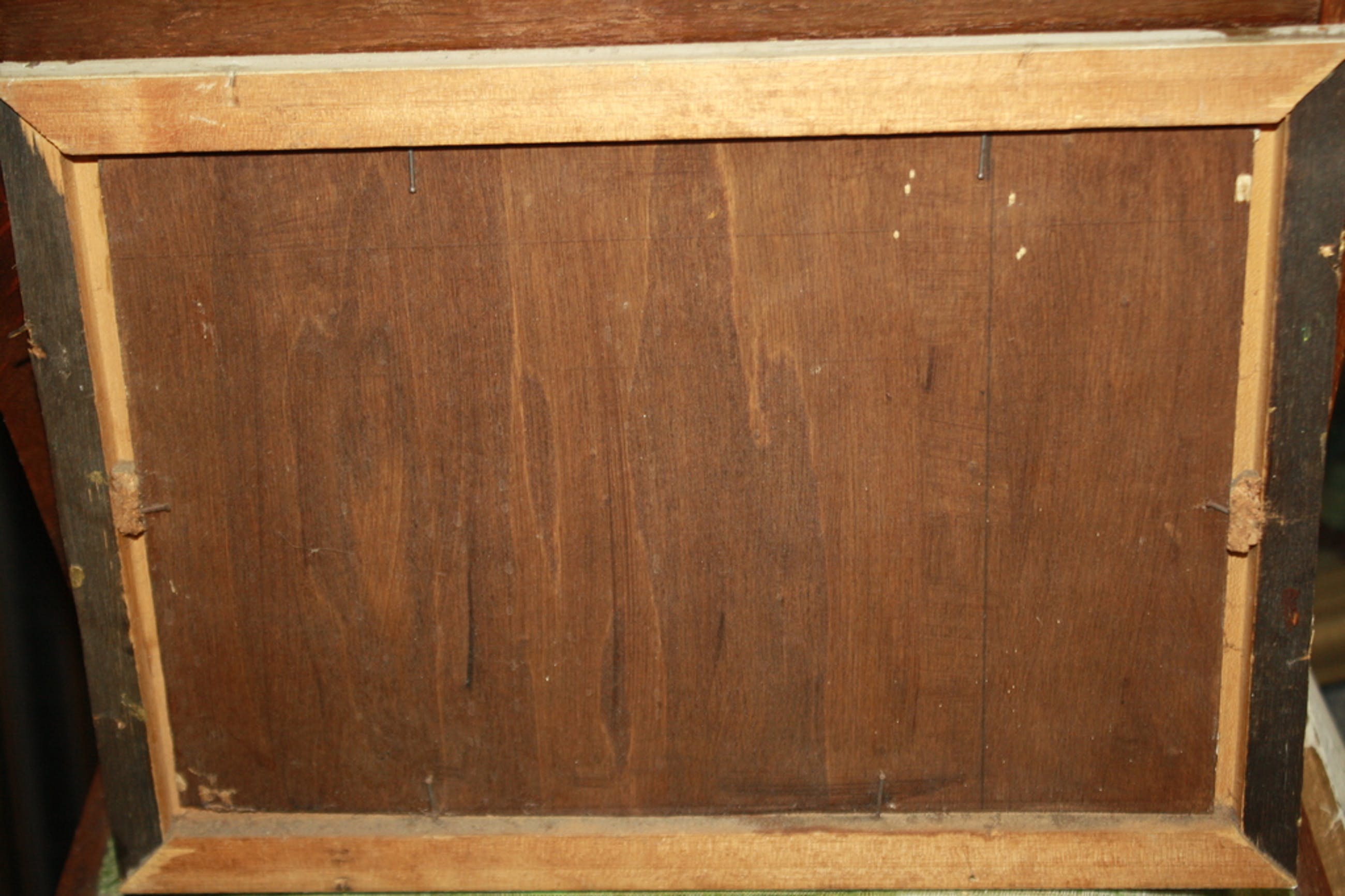 OLIEVERF OP HOUTEN PANEEL IN DE MAAT 19 X 28 CM