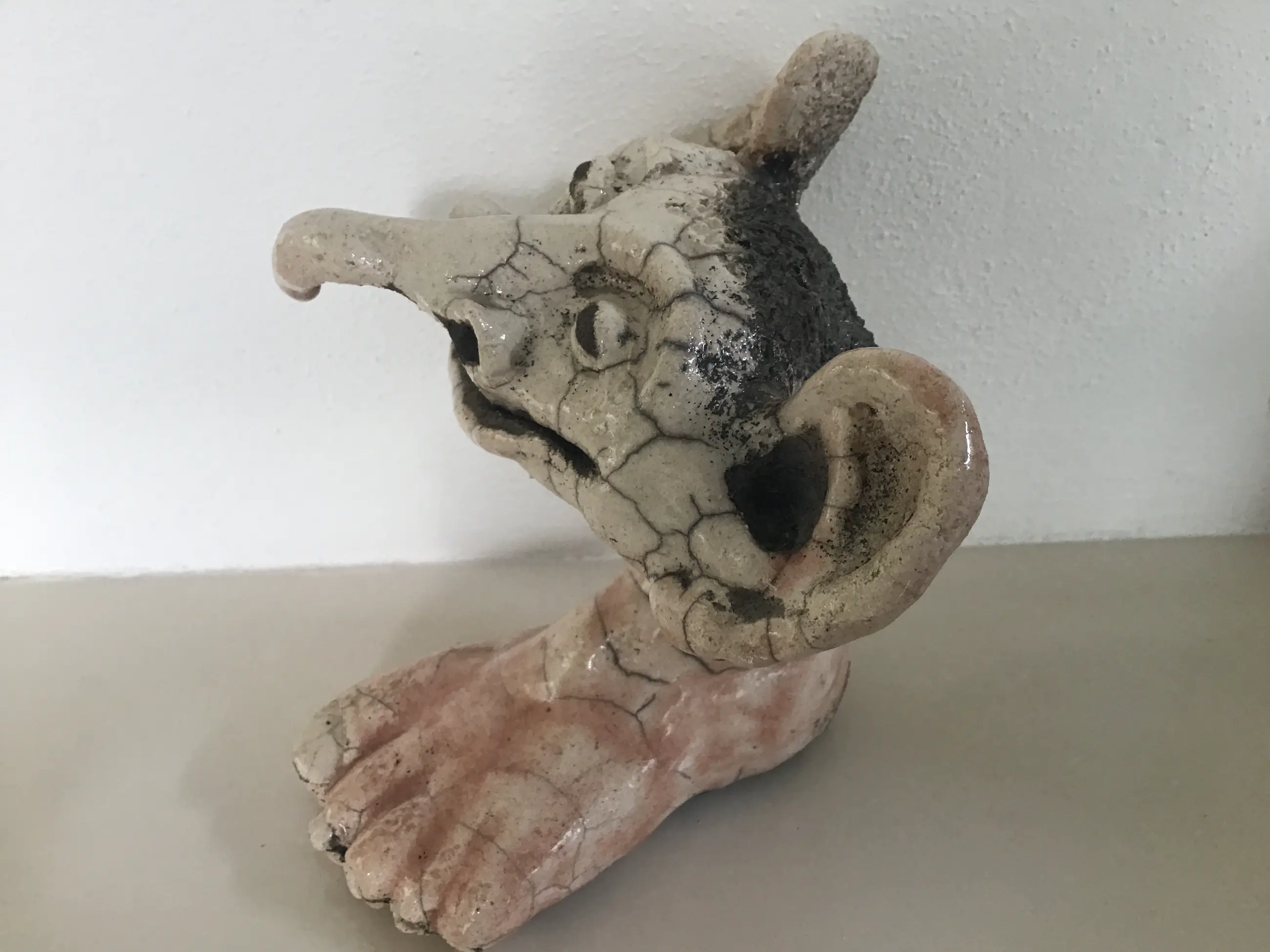 Rakugestookt surrealistisch beeldje. Puntgaaf.