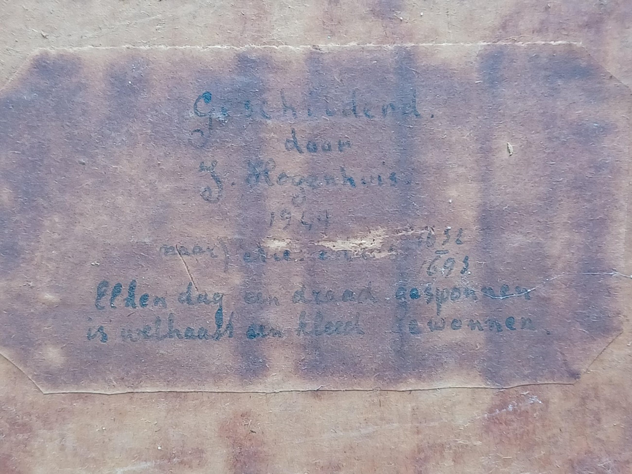 Klassiek werkje vrouw aan spinnewiel uit 1949.
