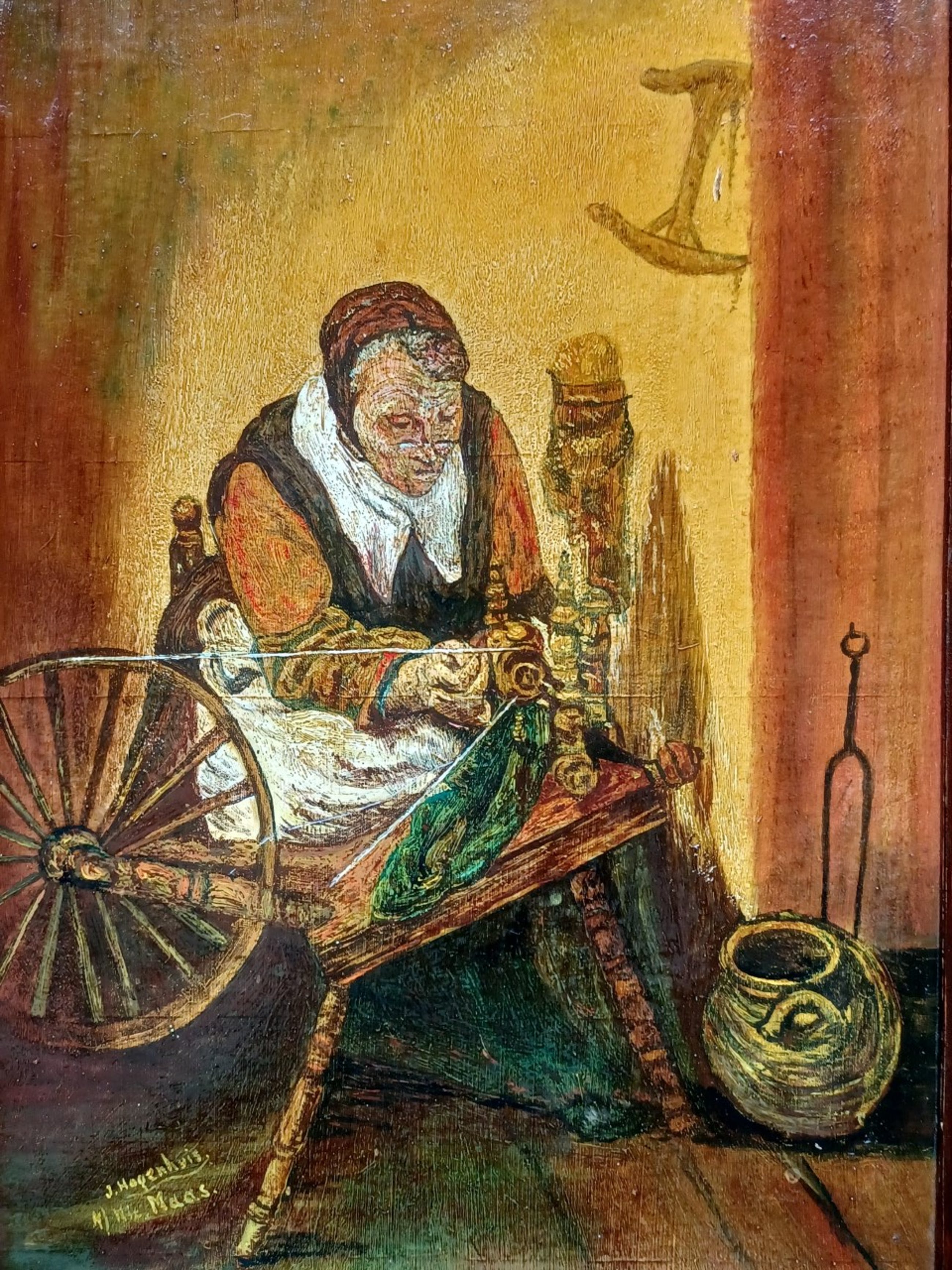 Onbekend - Vrouw aan spinnewiel. - Verkocht
