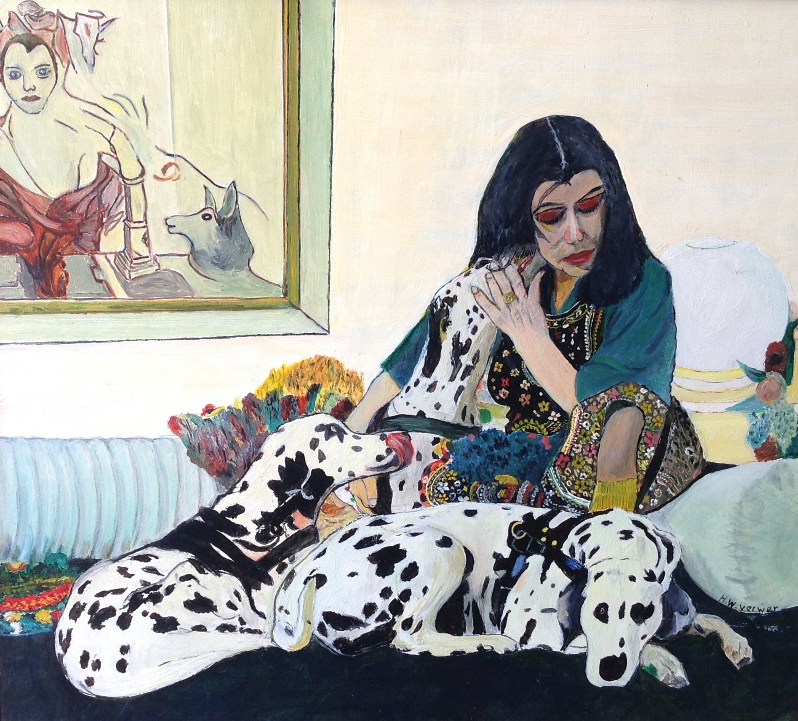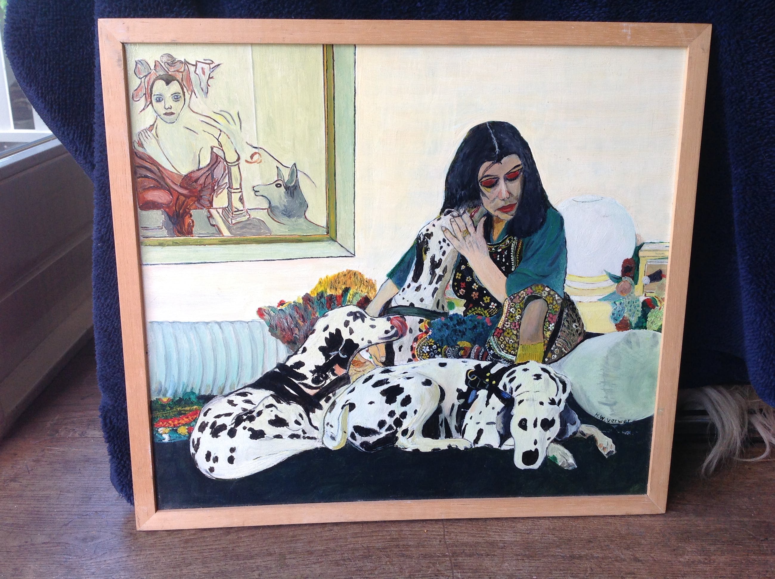 B2493 Onduidelijk gesigneerd Voorstelling: Vrouw met dalmatiers Schilderij is inclusief lijst (zie foto) Voorkeur ophalen bij ons in Nieuwersluis Voor meer informatie over de conditie van dit werk, kunt u contact met ons opnemen.