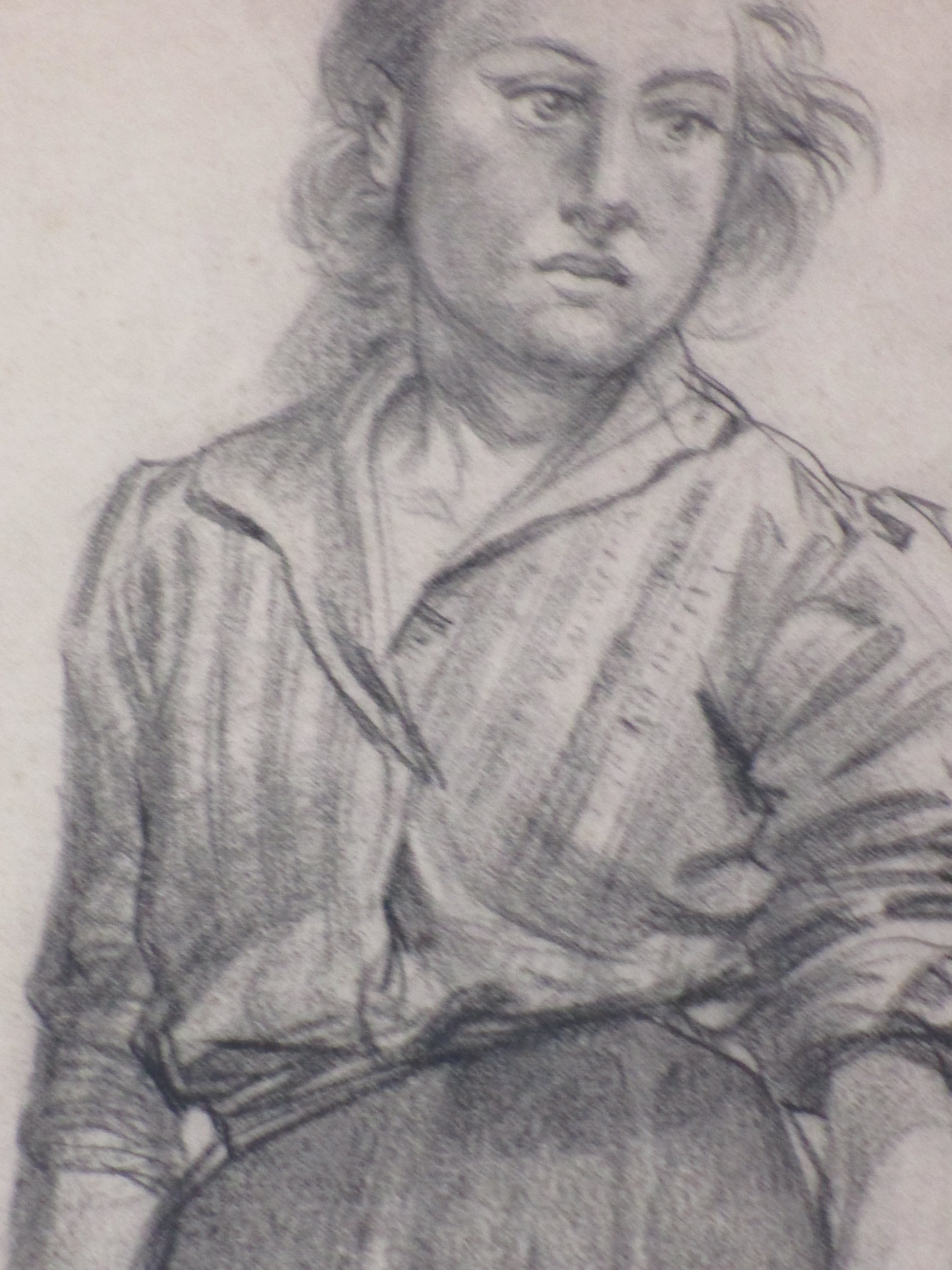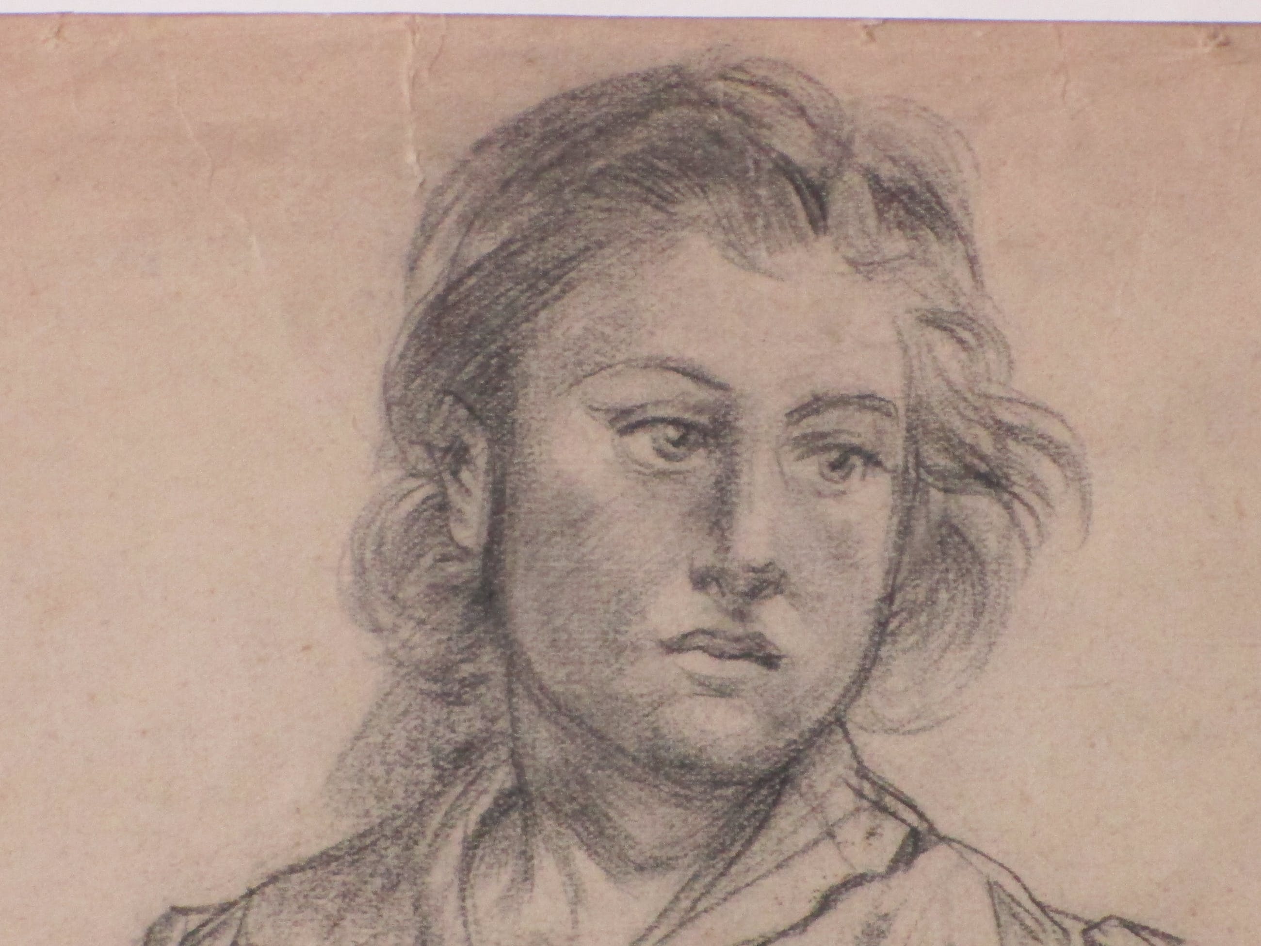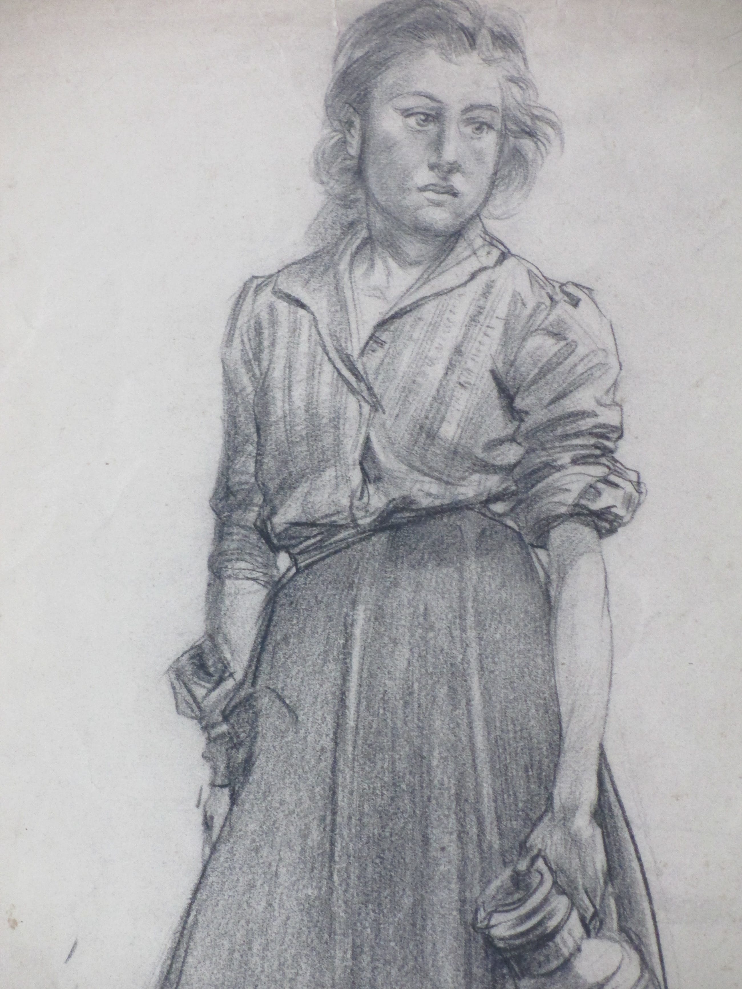 Tekening, toegeschreven aan Willem F.A.I. Vaarzon Morel Voorstelling van een vrouw met een drankkruik in de hand Losbladig onder passepartout, beeldmaat 46x24, p.p.maat 57x39 Niet gesigneerd Herkomst: Veilinggebouw De Zwaan Amsterdam 2021