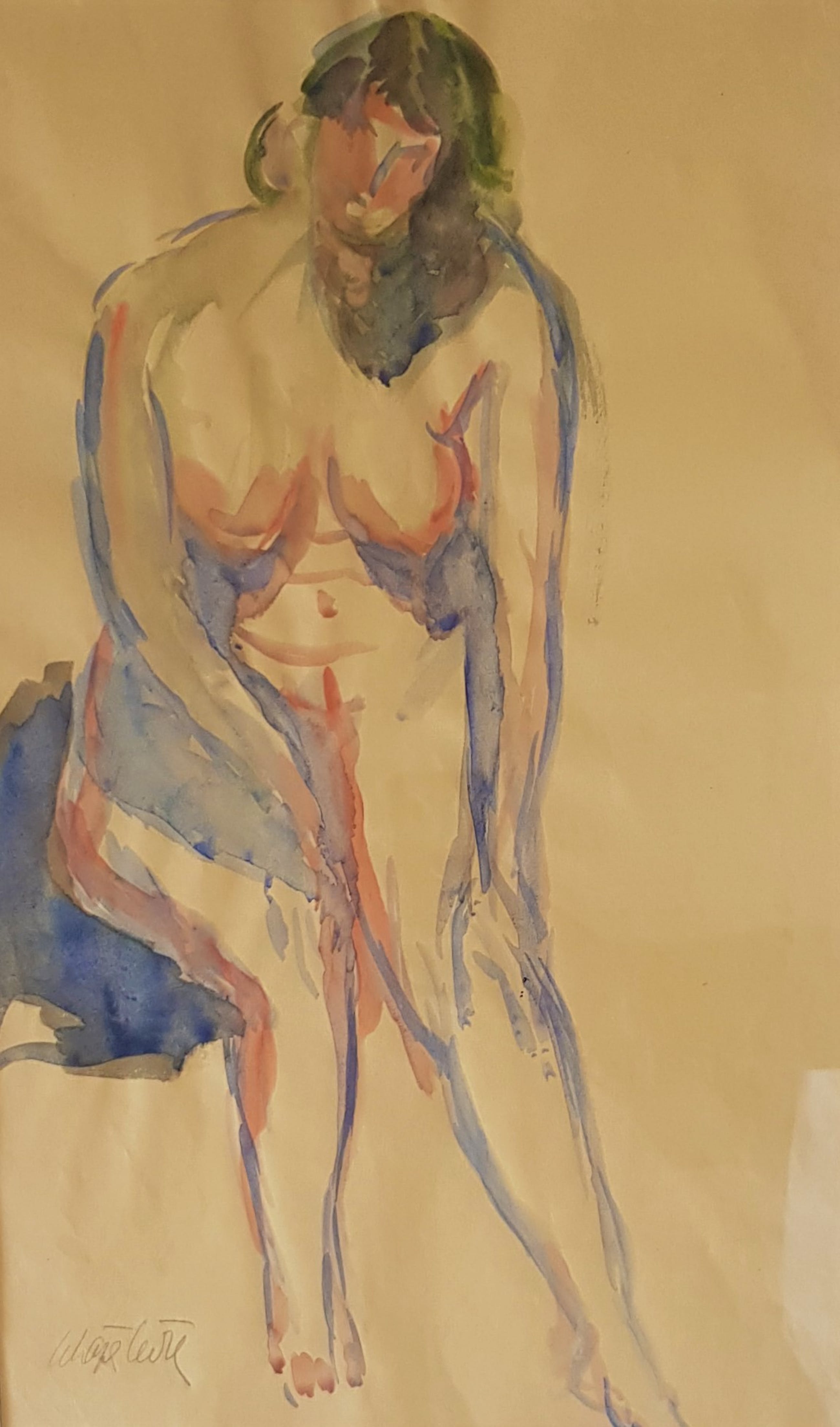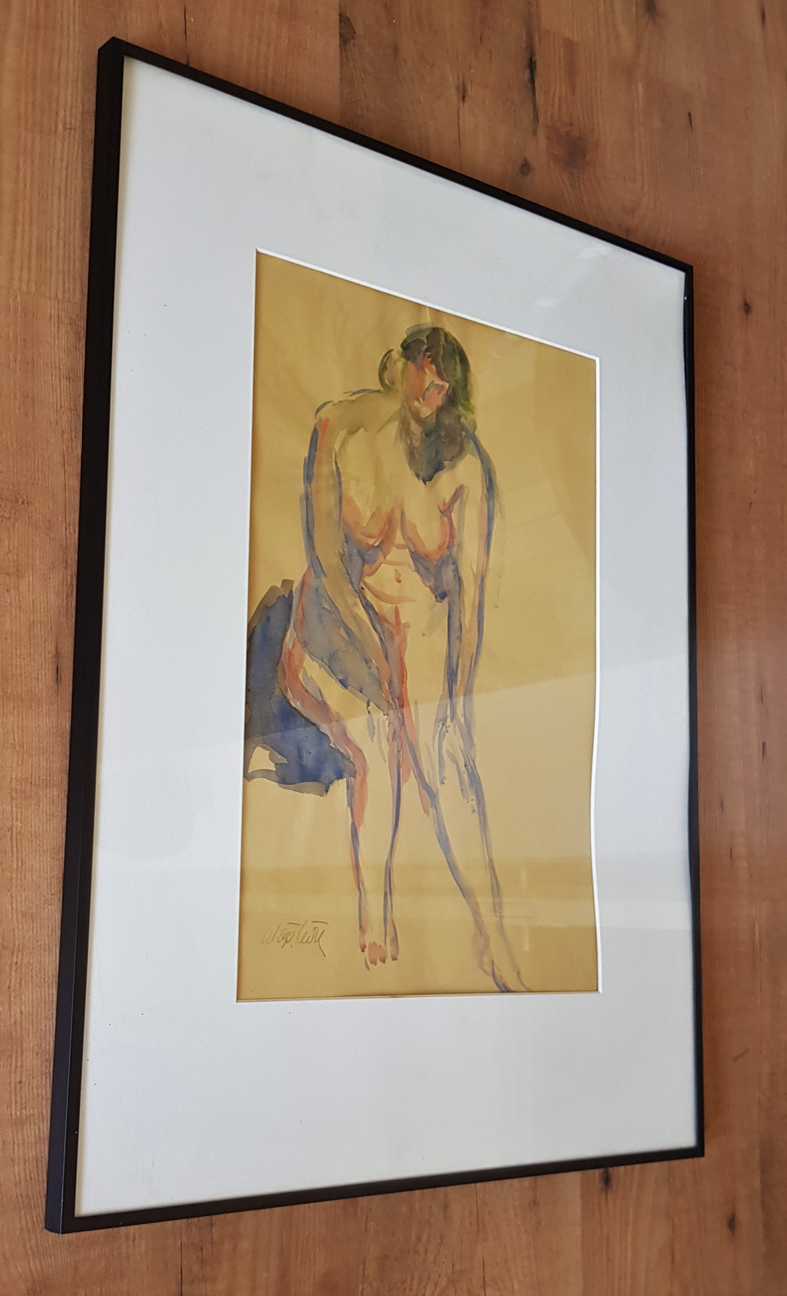 Prachtig vrouw naakt aquarel Afmeting: 48 x 30 cm met lijst 71 x 51 cm gesigneerde In goede staat - zie foto's