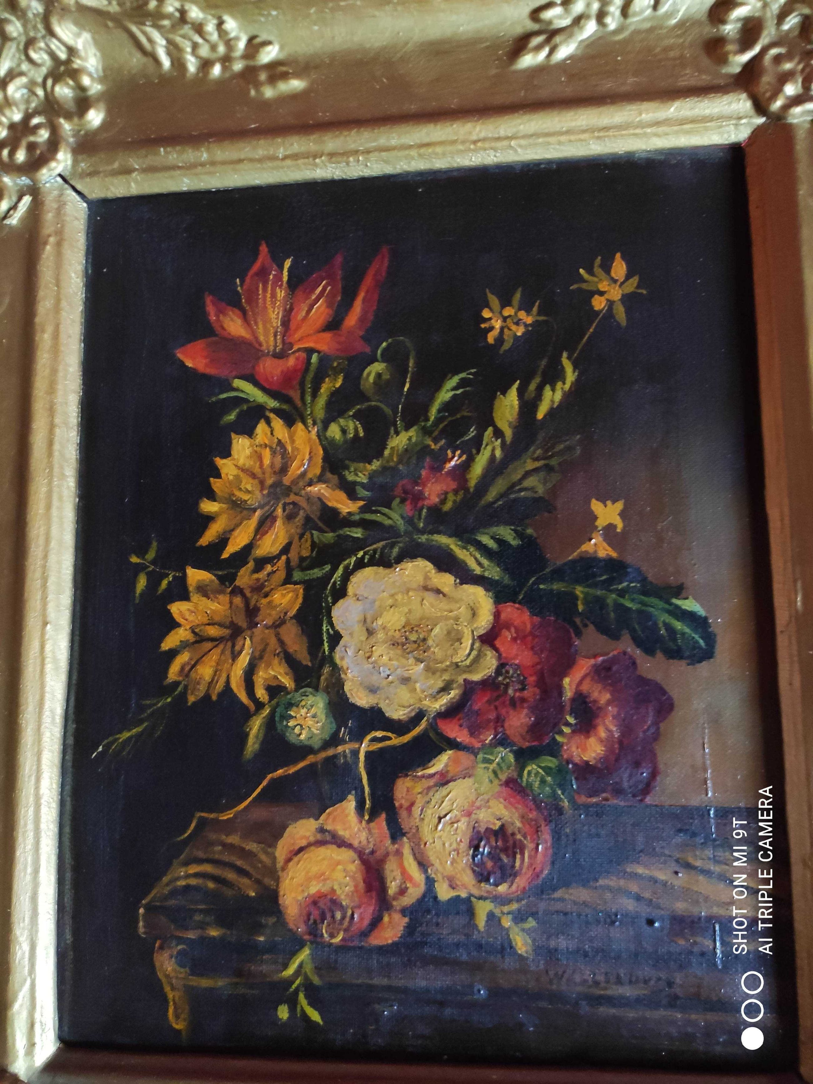 Bloemstilleven, boeket, olie op doek, +/- 100 jaar oud, gesigneerd "Wallenburg"(?)